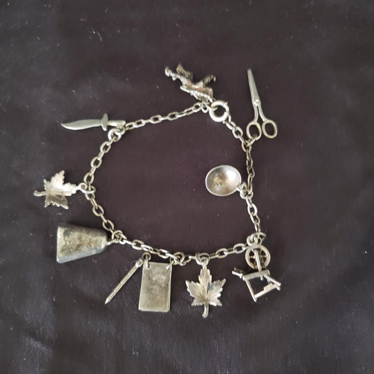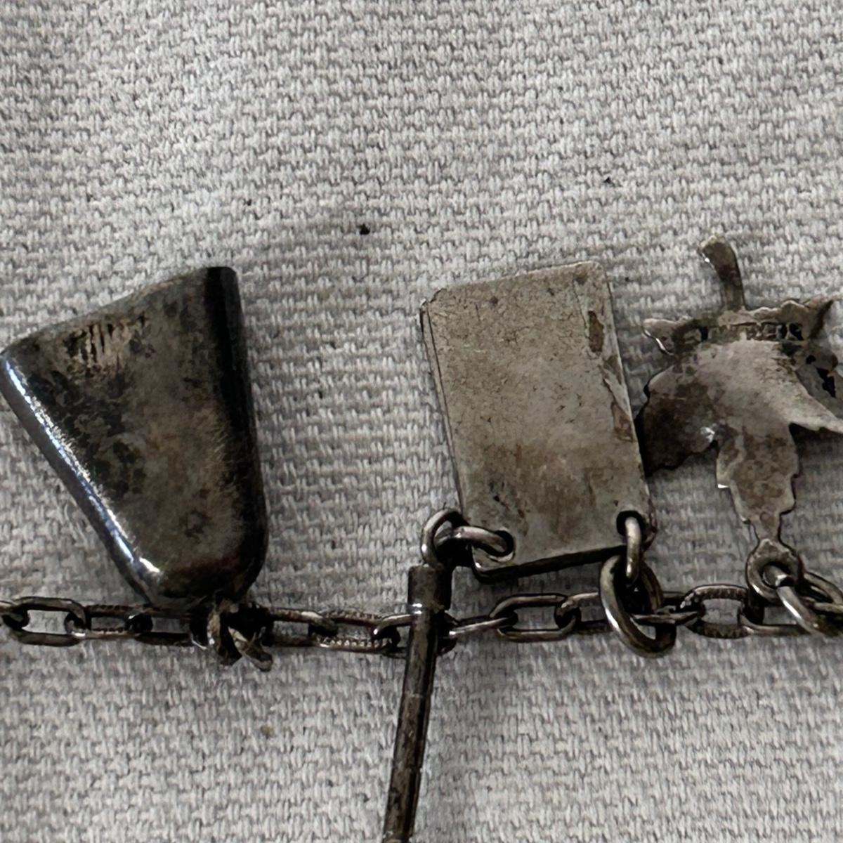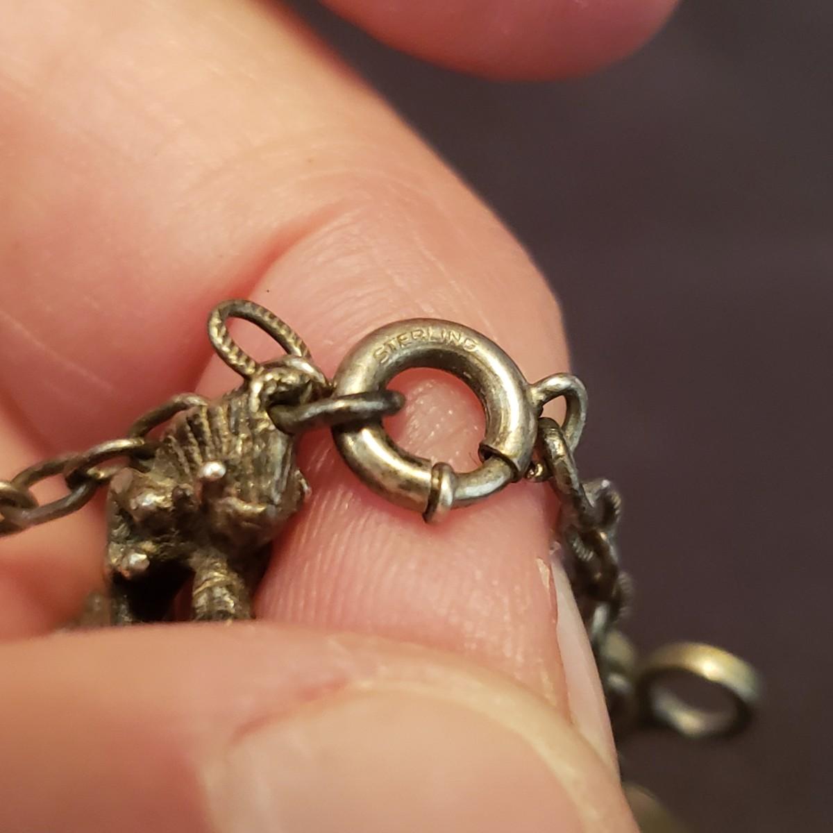 Due to its size, it appears to be a children's sized sterling silver charm bracelet. The chain bracelet measures approximately 6". The hook does not appear to open.