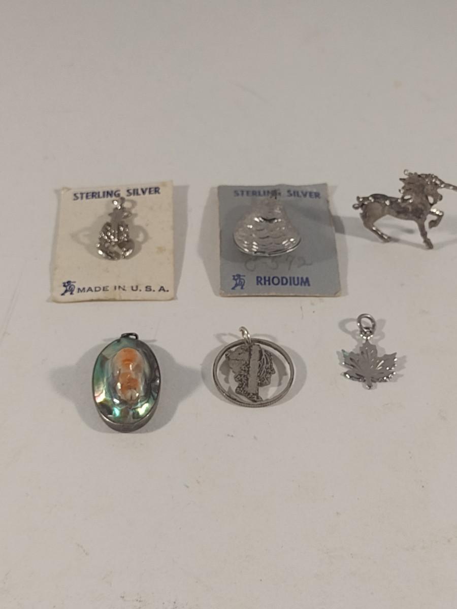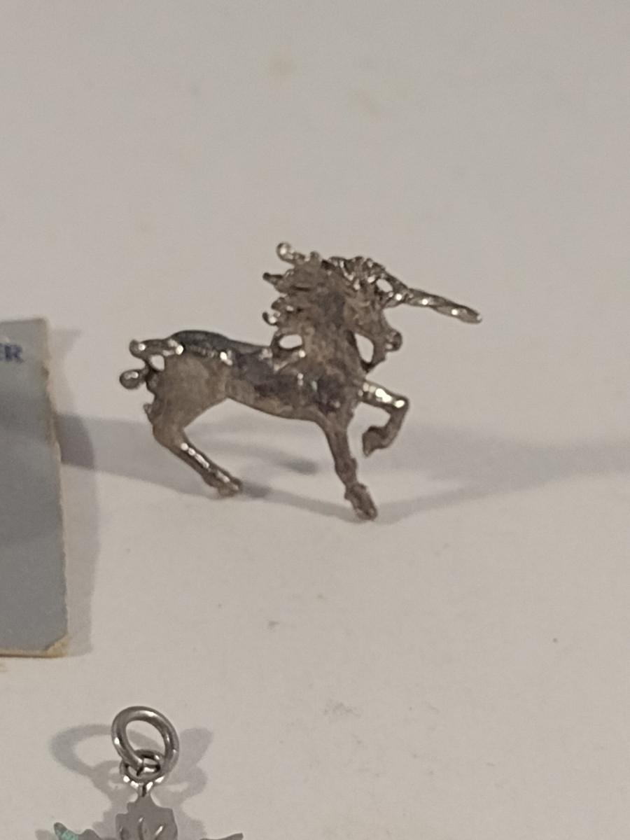 Sterling Silver Charms/Pendants and Diminutive Unicorn Figurine (#54)