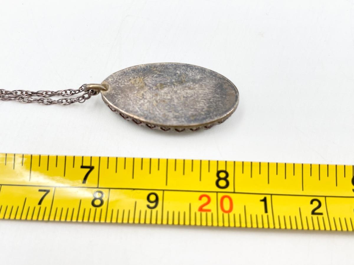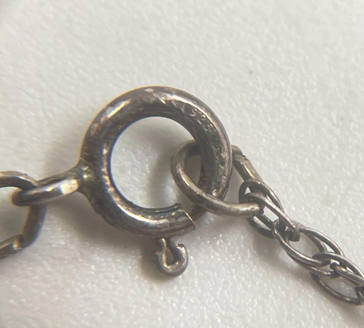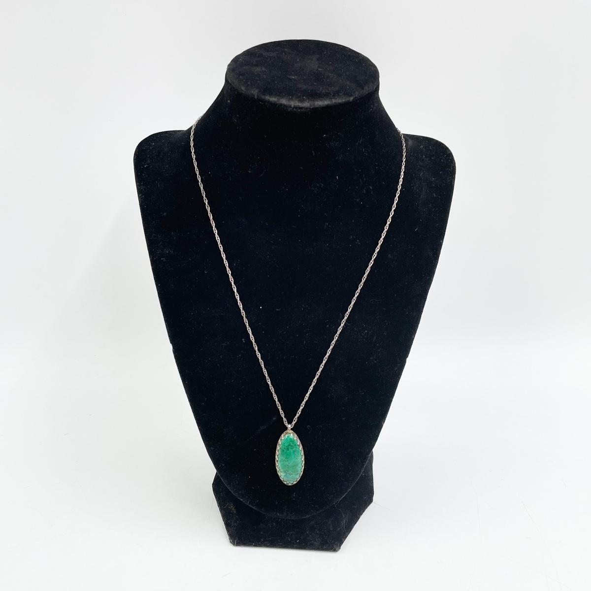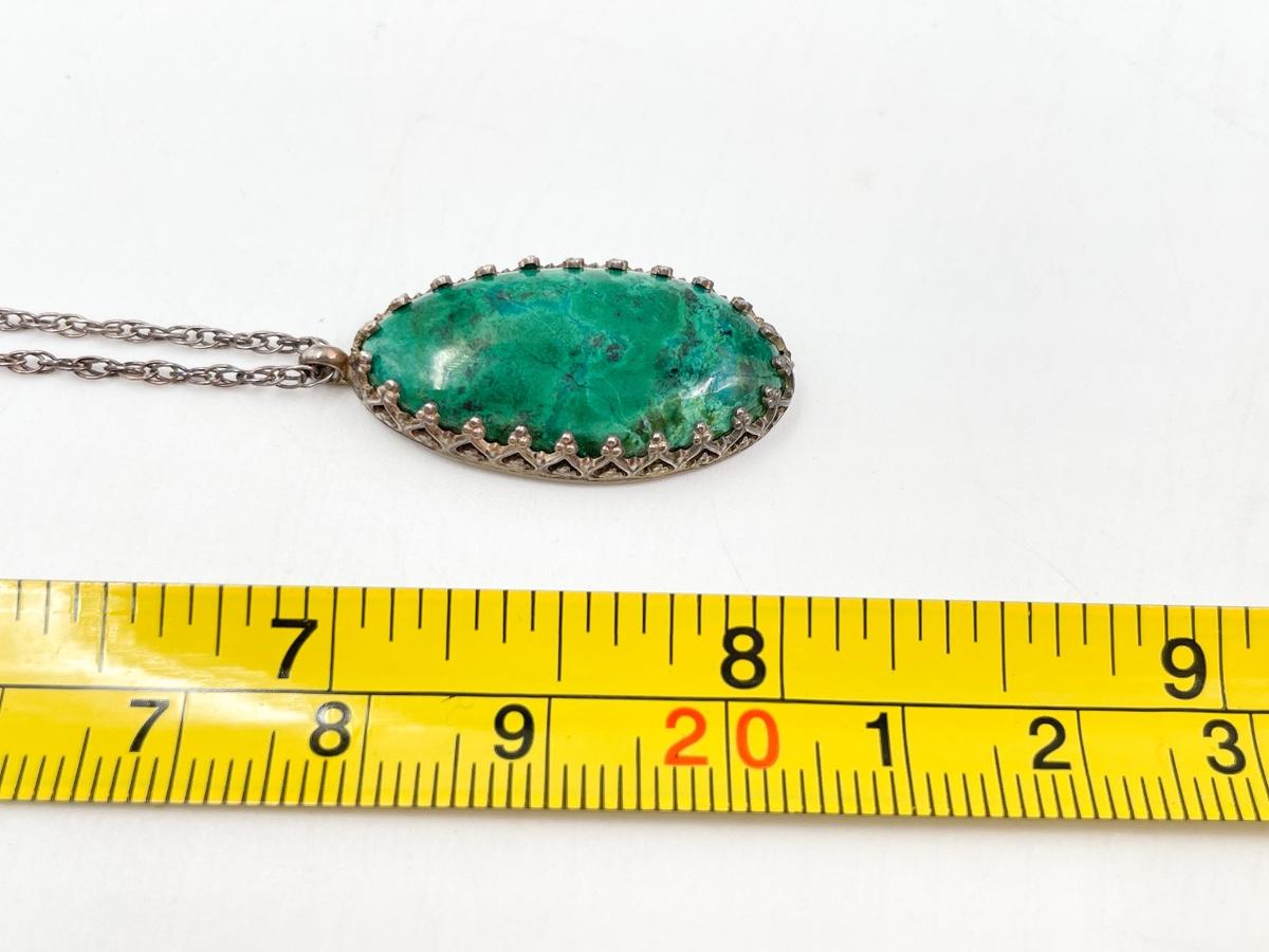 In good condition. Stone appears but not confirmed to be Chrysocolla. Chain clasp is marked 925 (please see photos).
