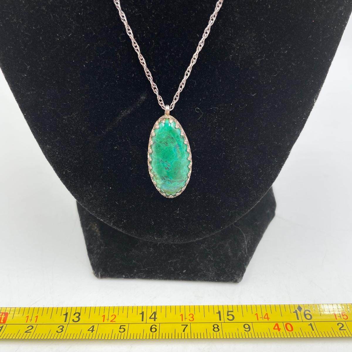 STERLING SILVER & CHRYSOCOLLA STONE PENDANT NECKLACE