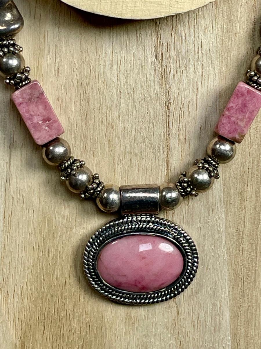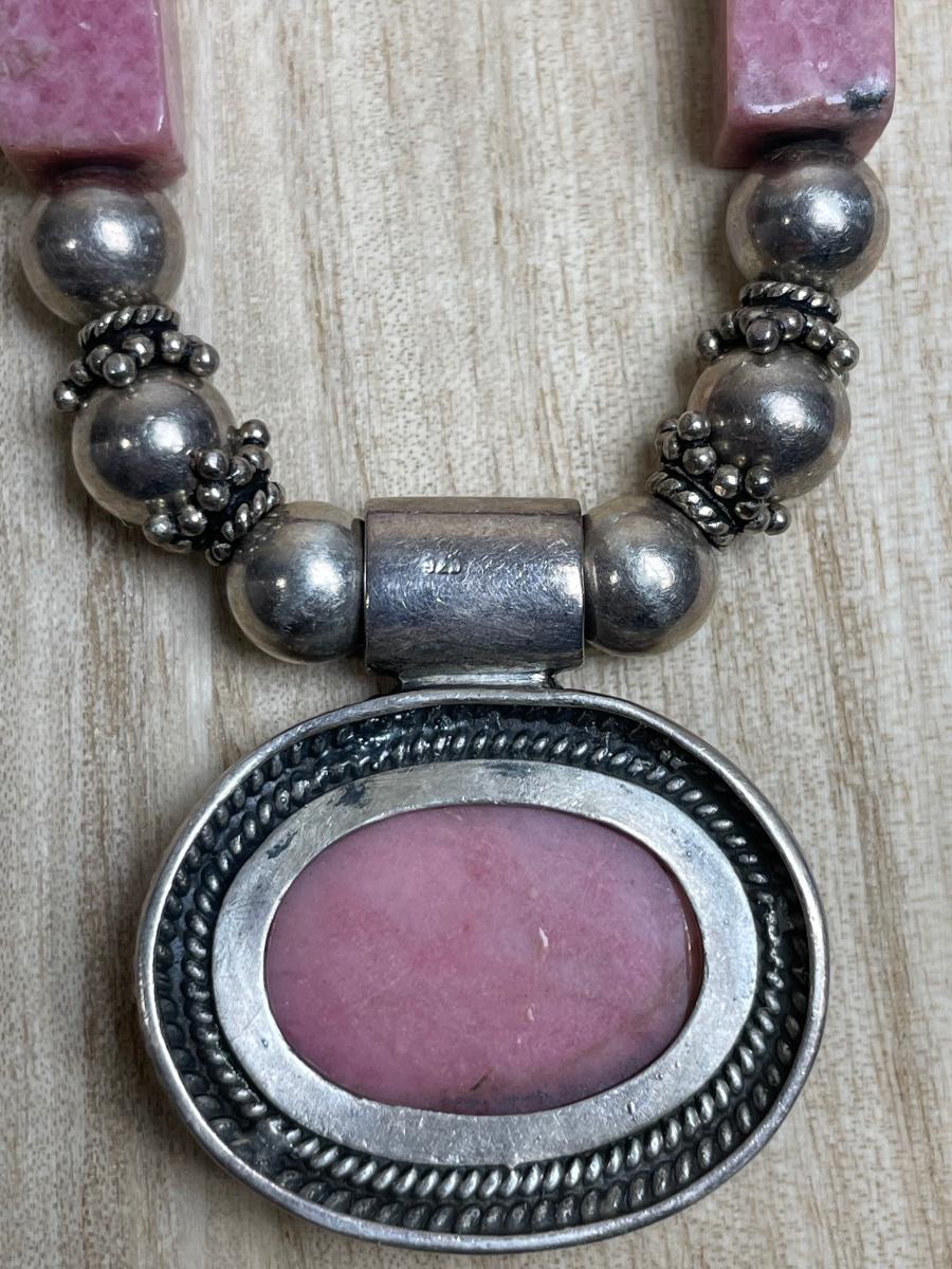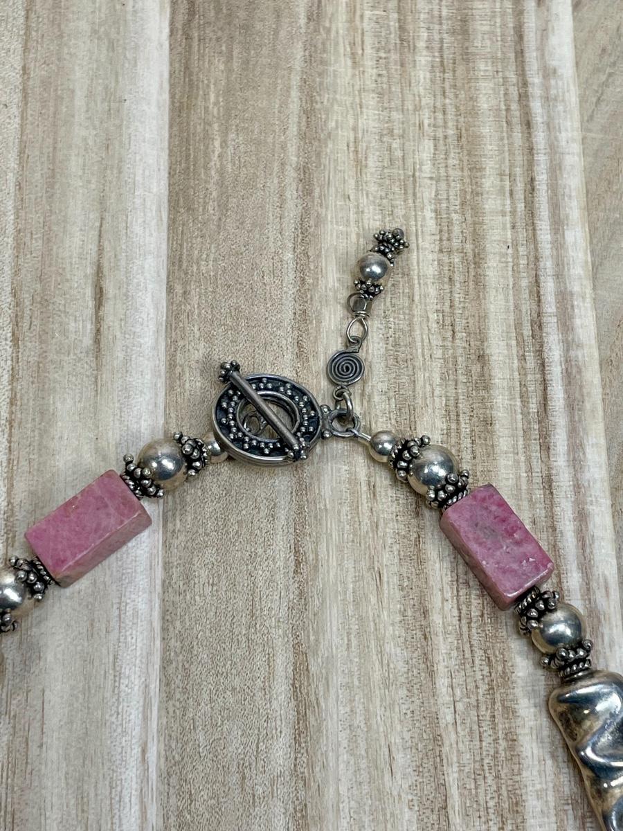 Sterling Silver Chunky Rhodonite Pendant Necklace