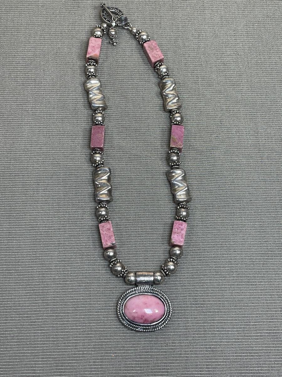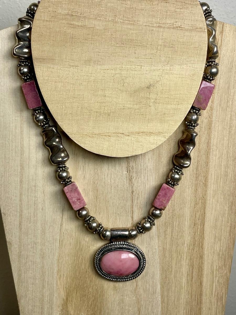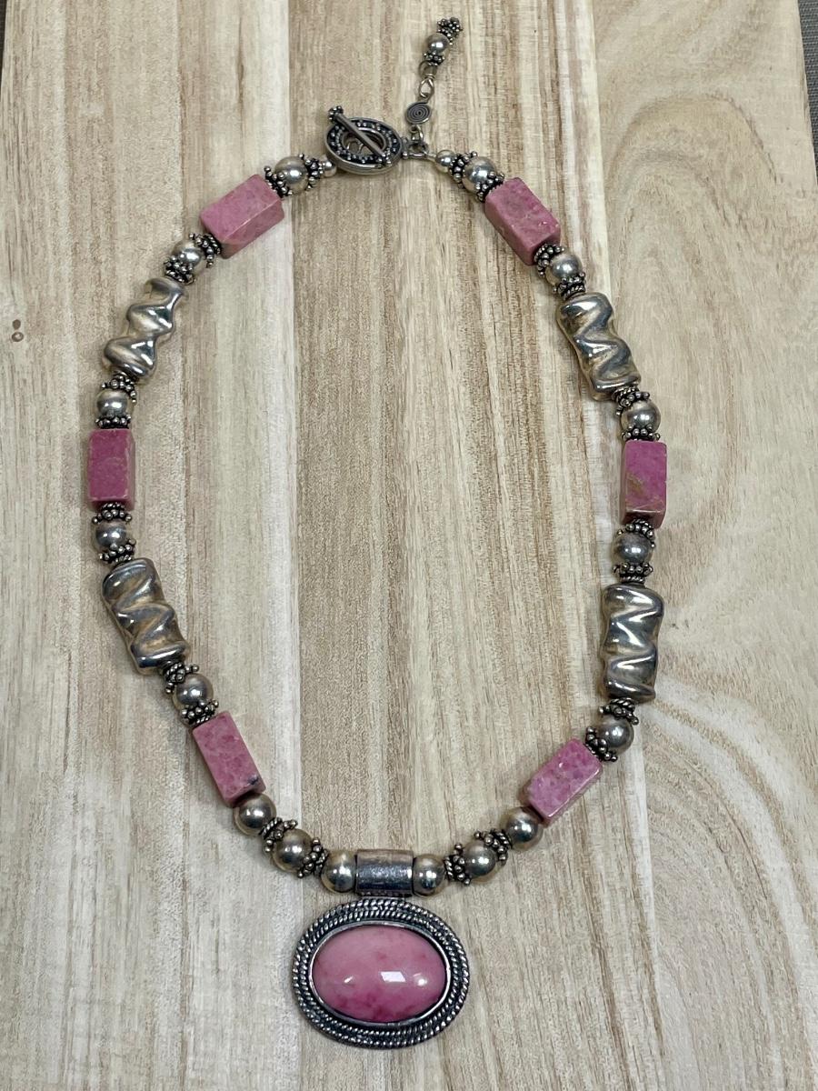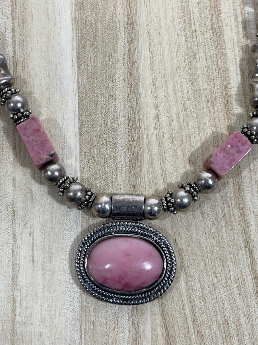 Sterling Silver Chunky Rhodonite Pendant Necklace