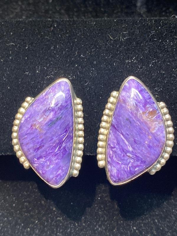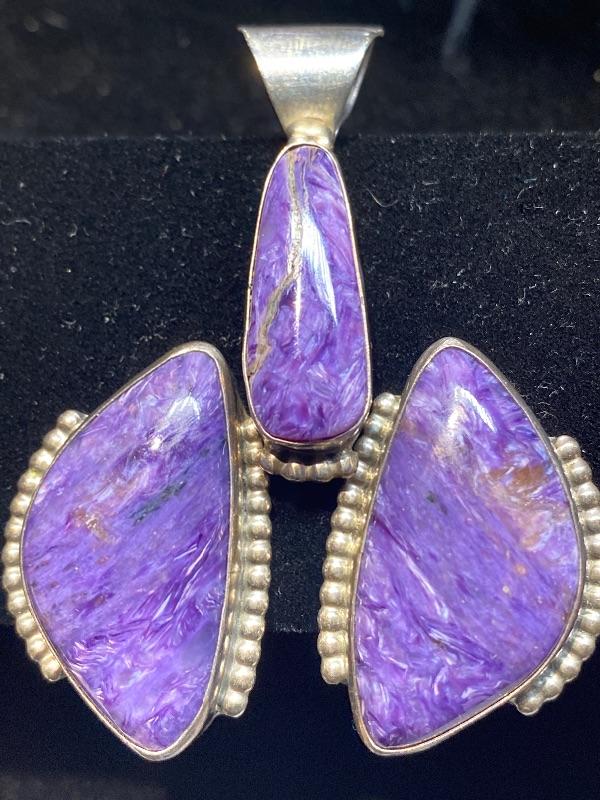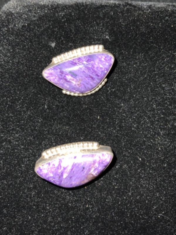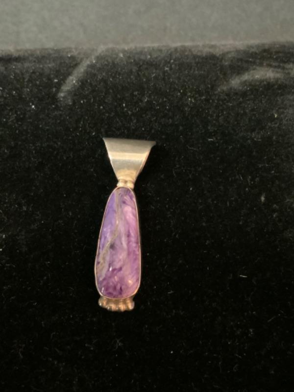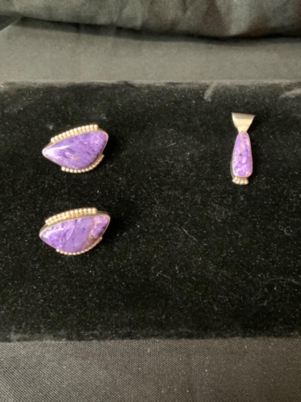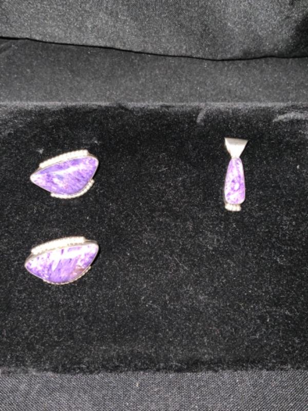 Sterling silver clip on earrings and pendant with purple stone lot 2827