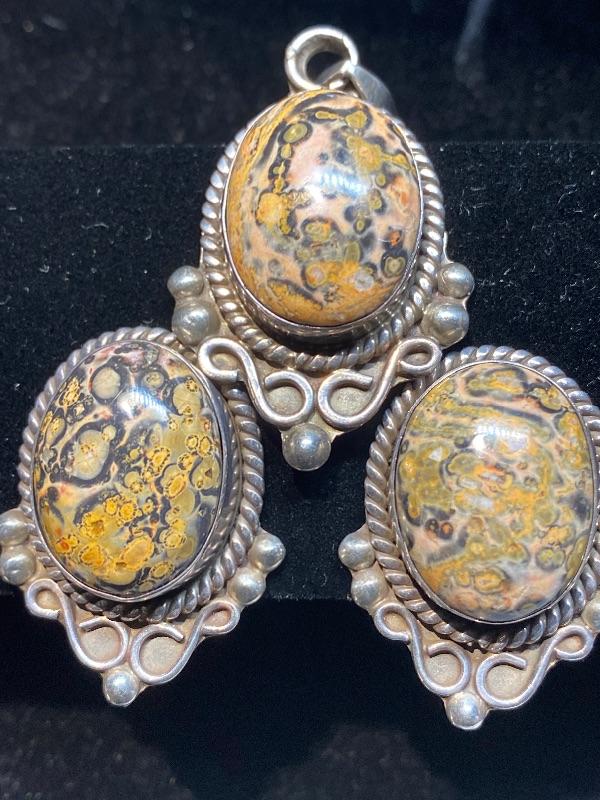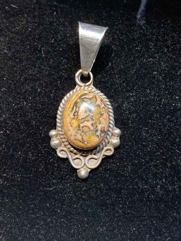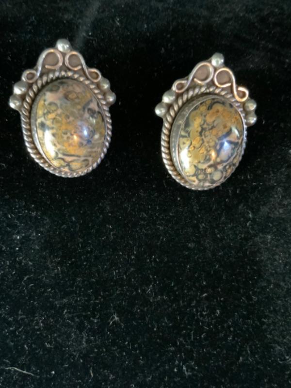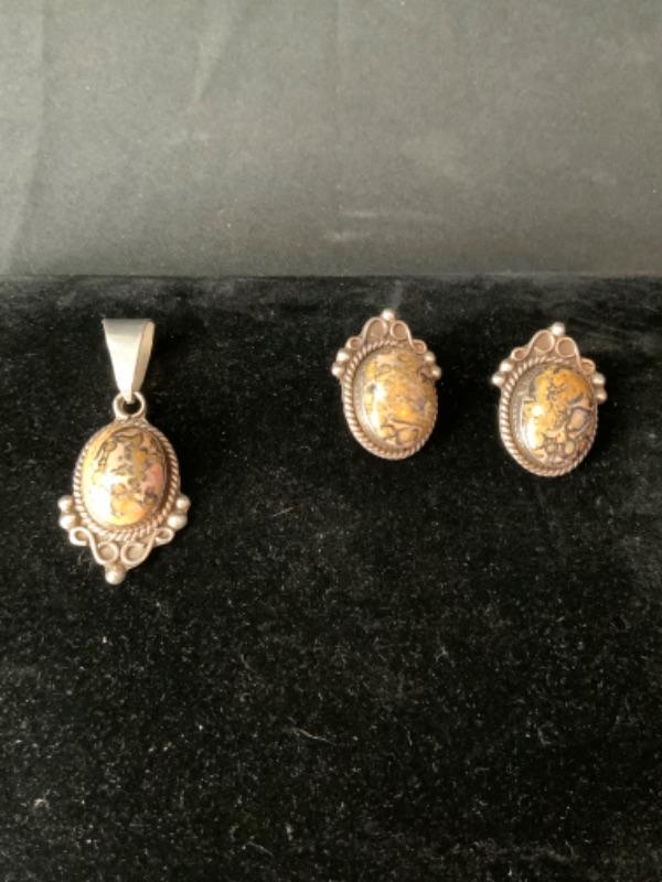 Sterling silver clip on earrings and pendant with stone Lot 2816