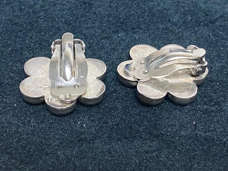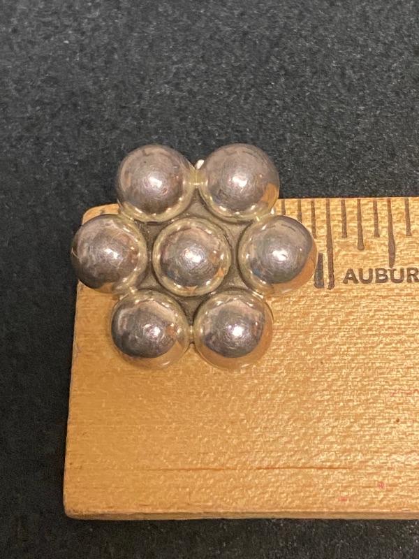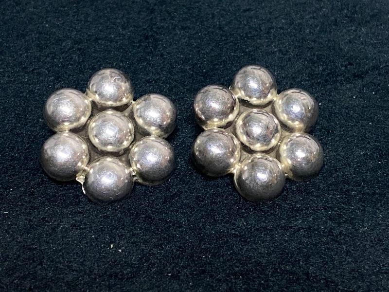 Sterling silver cluster earrings. Have a flower look about them. Clip style. About 7/8" wide. One is stamped on the back. Made in Mexico.