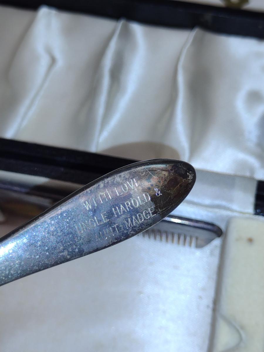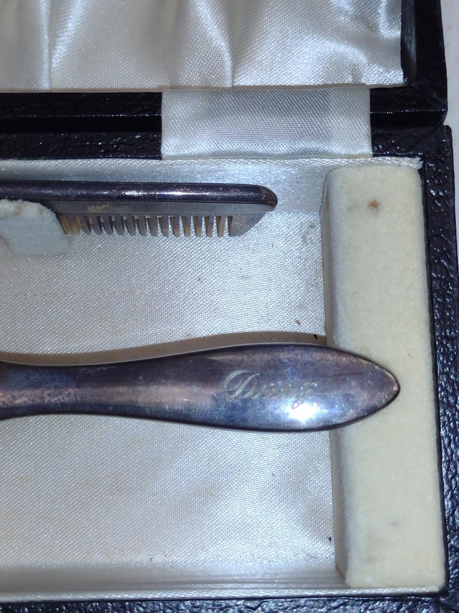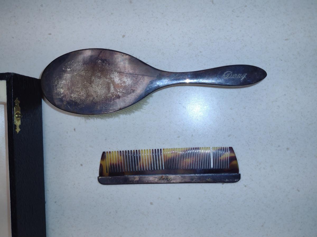 Sterling Silver Comb and Brush Set with Storage Box. Item has been monogrammed.