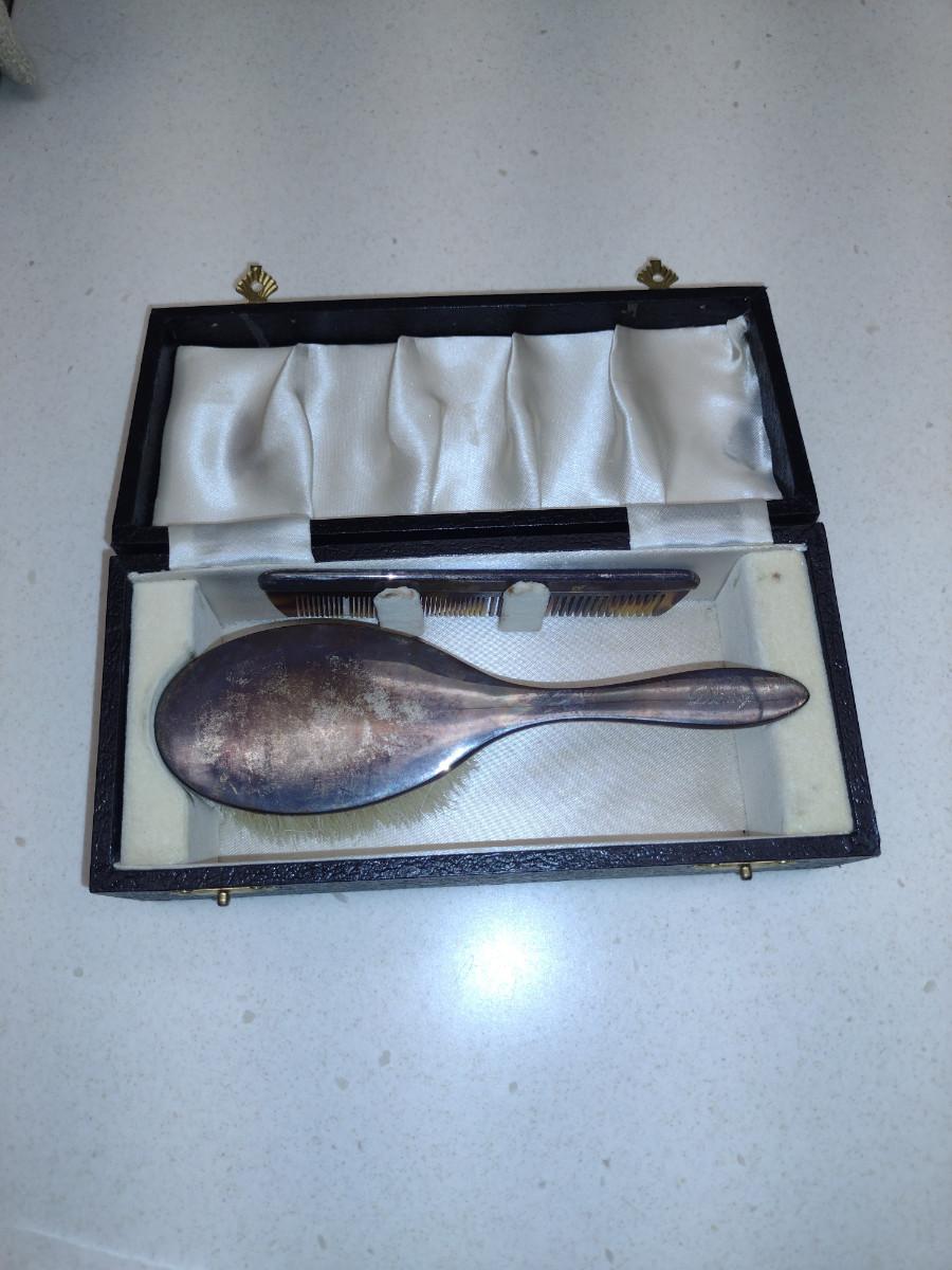 Sterling Silver Comb and Brush Set with Storage Box
