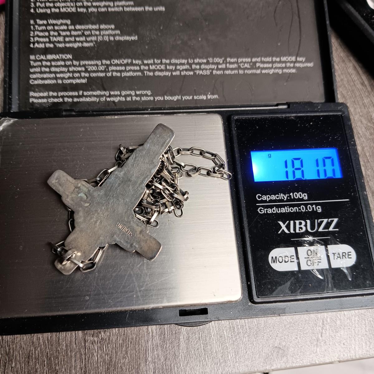STERLING SILVER CROSS AND STERLING CHAIN 18.10g