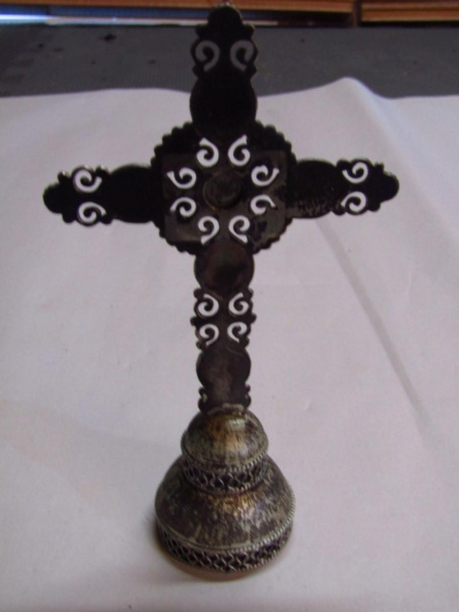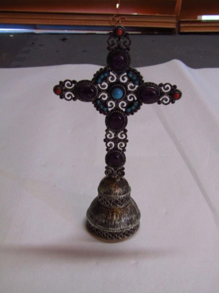 Sterling Silver Cross Figurine with Stone Accents (G). Measures approx 6" tall.