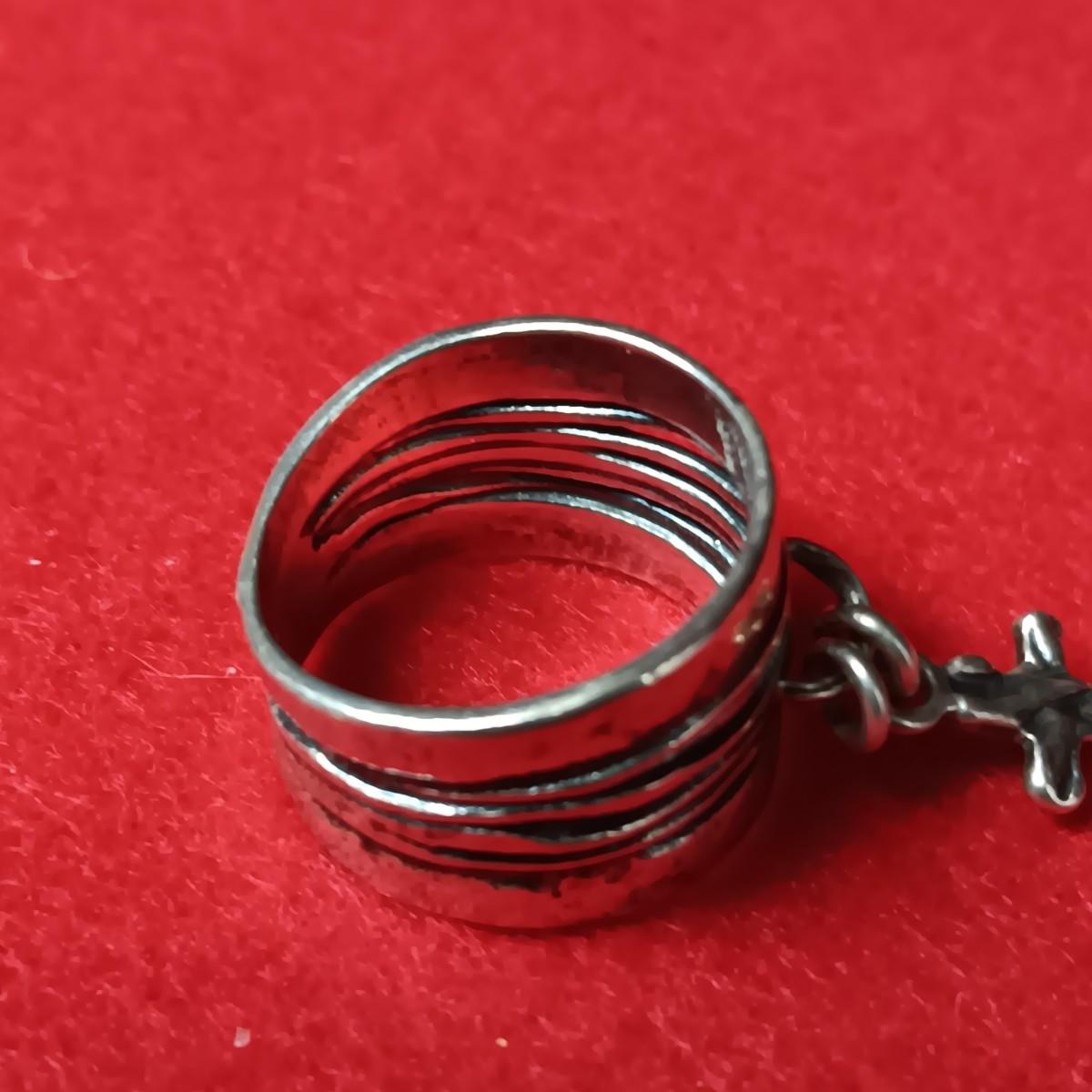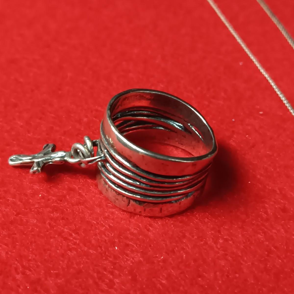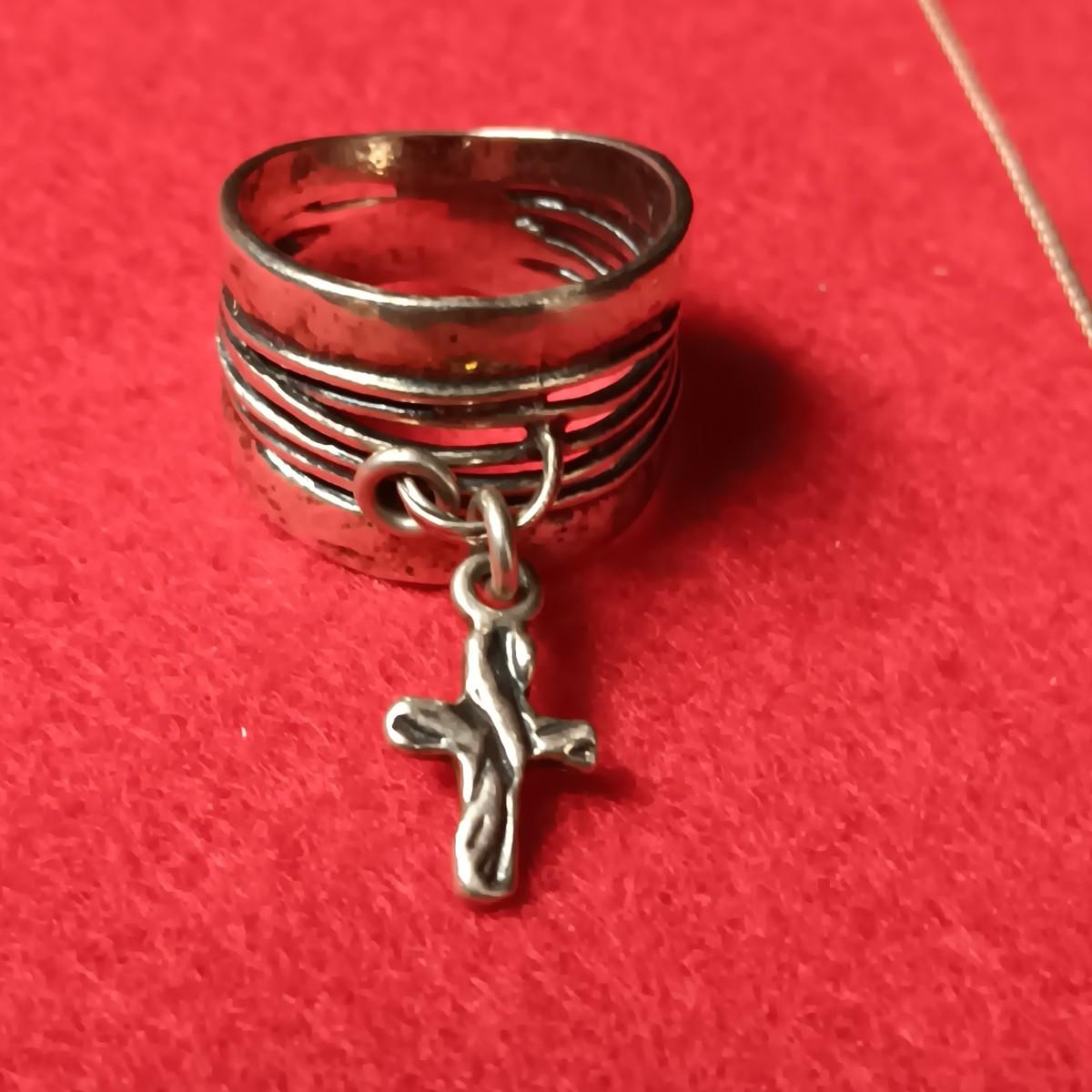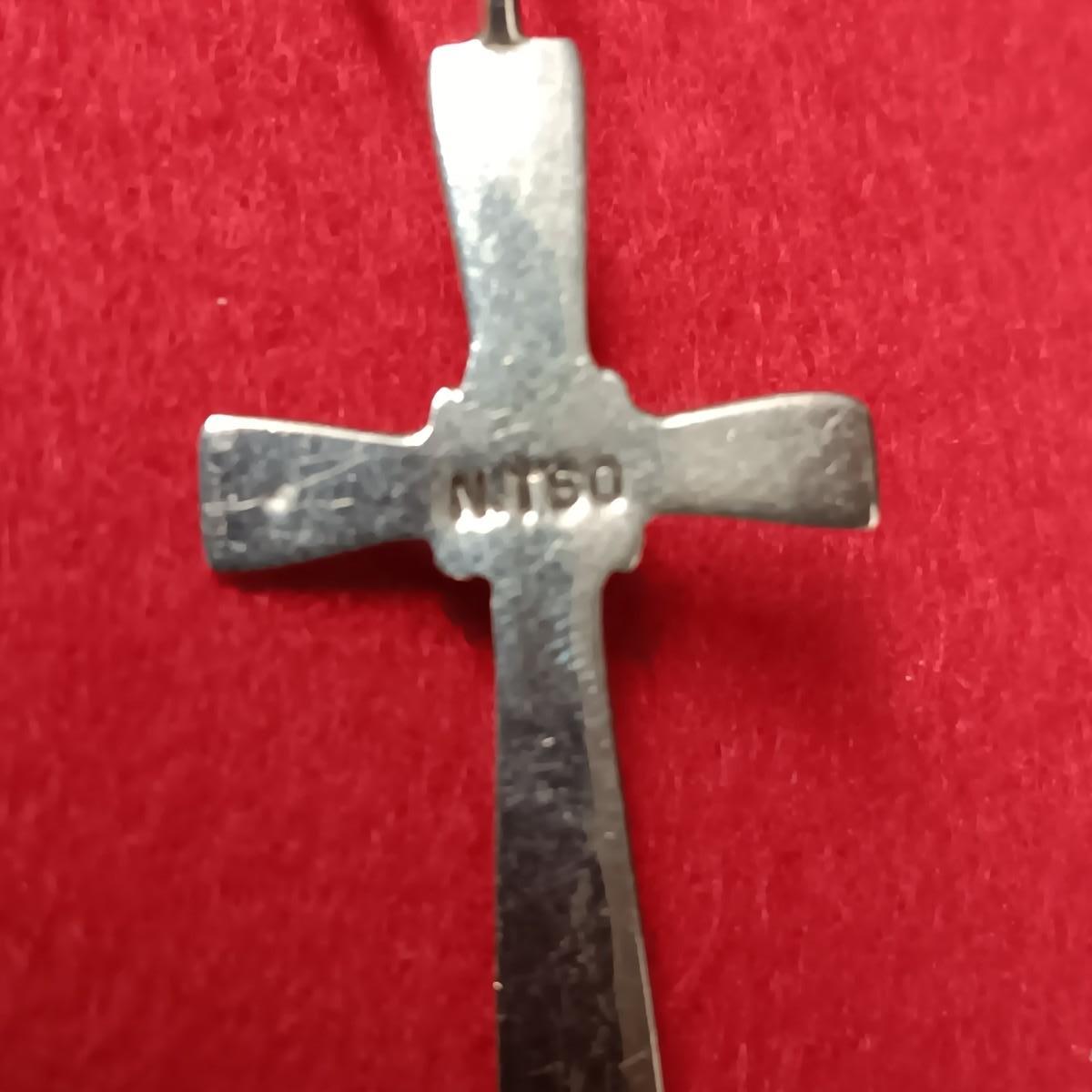 STERLING SILVER CROSS W/ TURQUOISE STONE ON A STERLING CHAIN PLUS A .925 RING WITH DANGLING CROSS MARKED "ISRAEL" SIZE SIX 13.14g