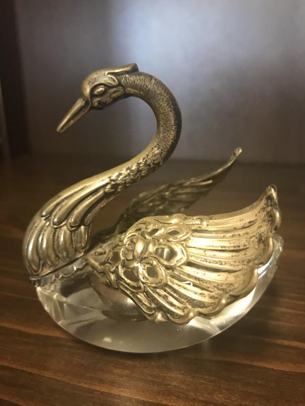 Sterling Silver Crystal Swan Divided Salt Cellar (Item #301)