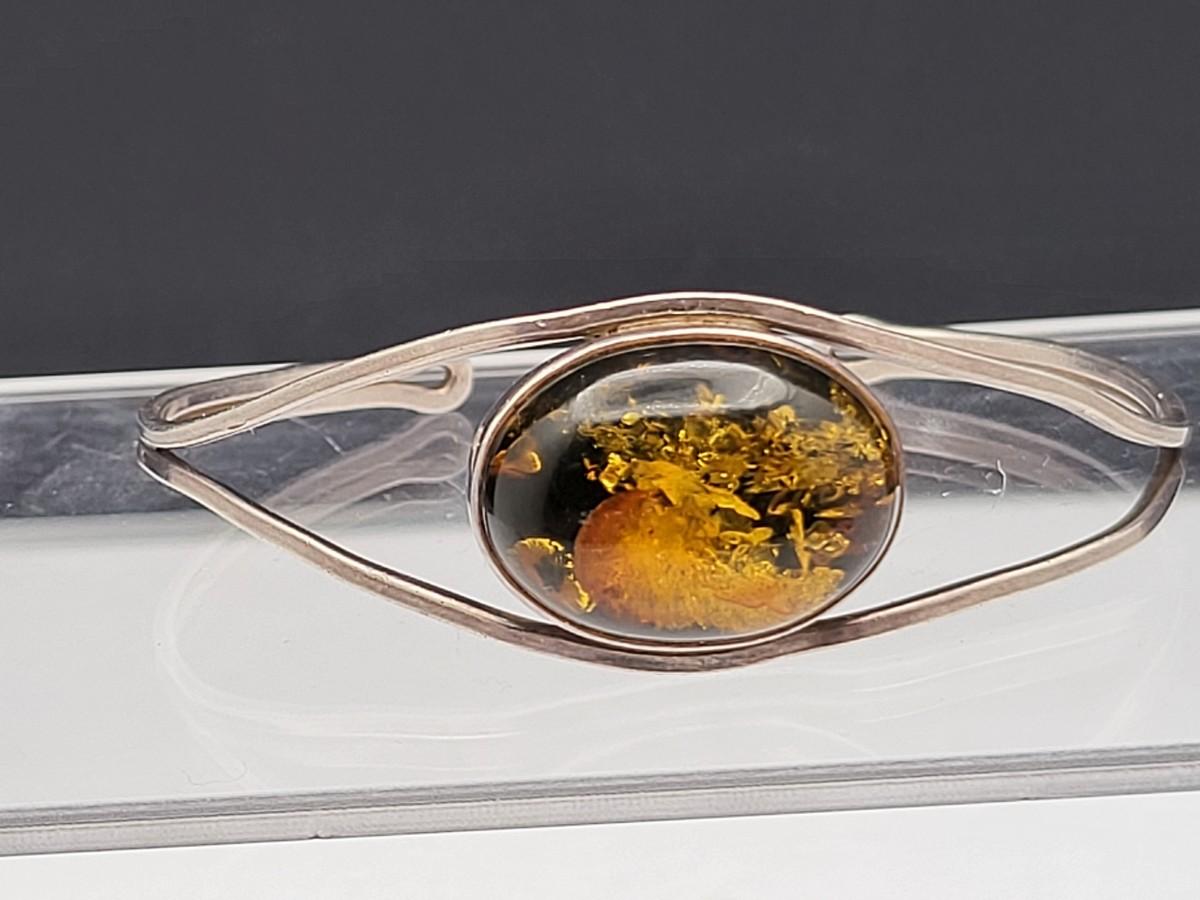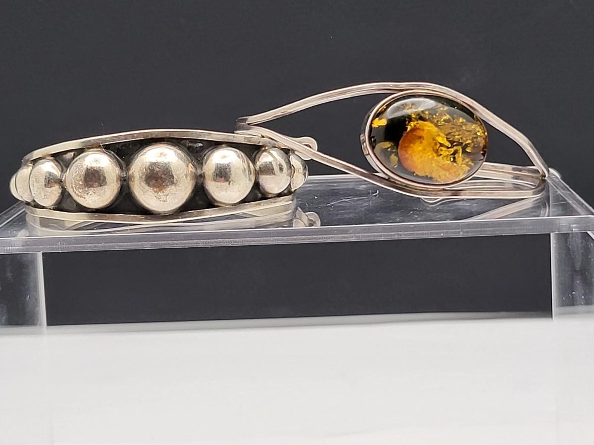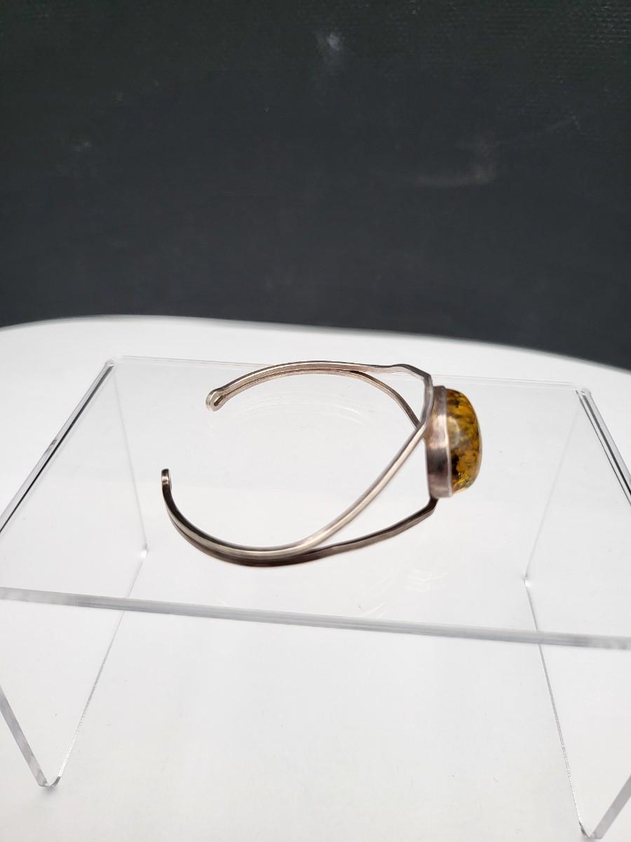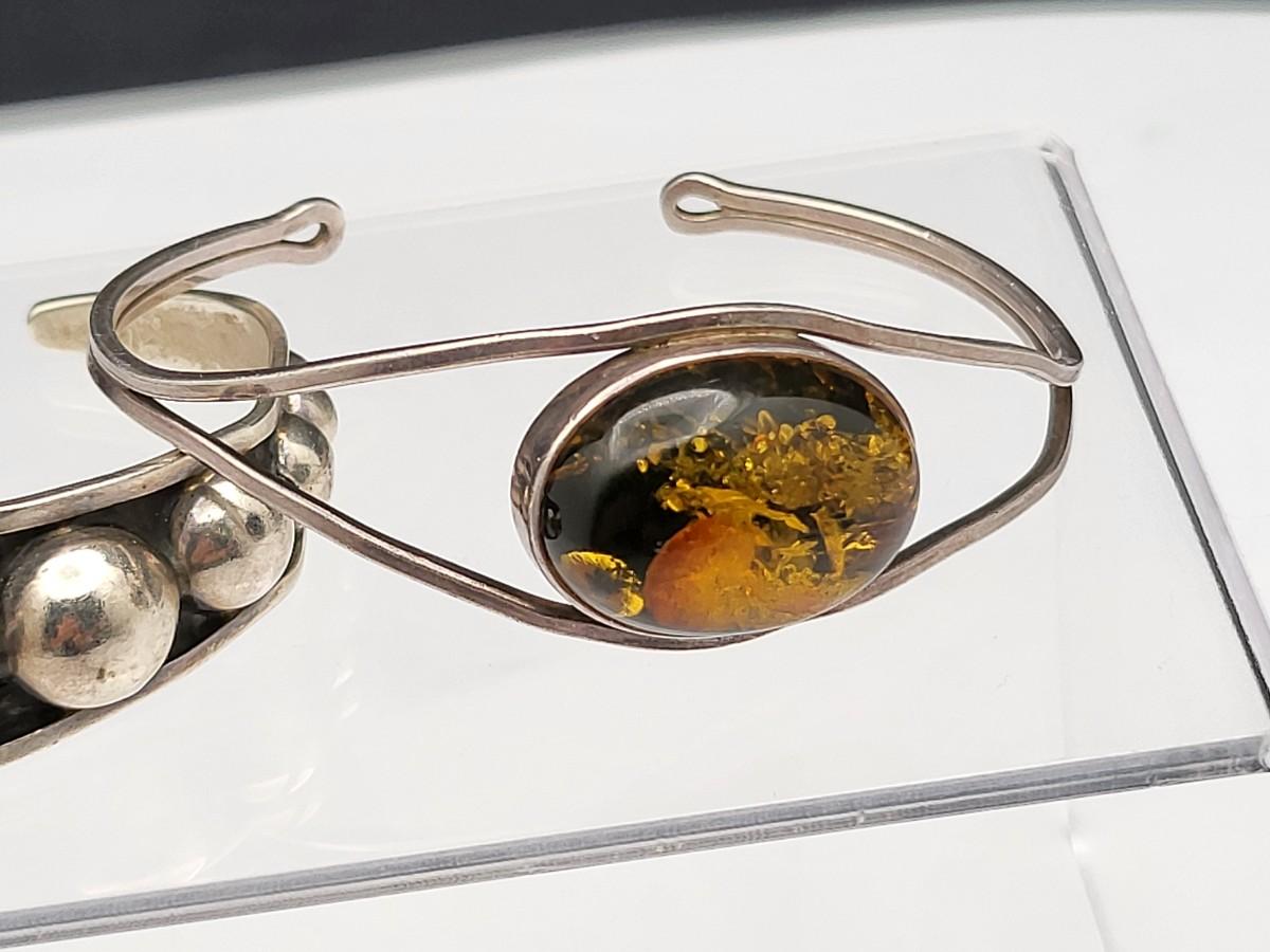 Oval Amber open cuff, unmarked silver. Total weight 37.5 grams.