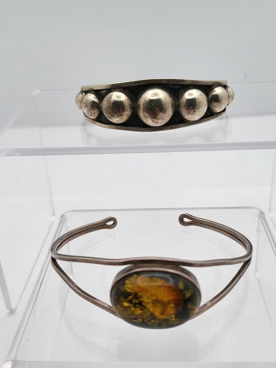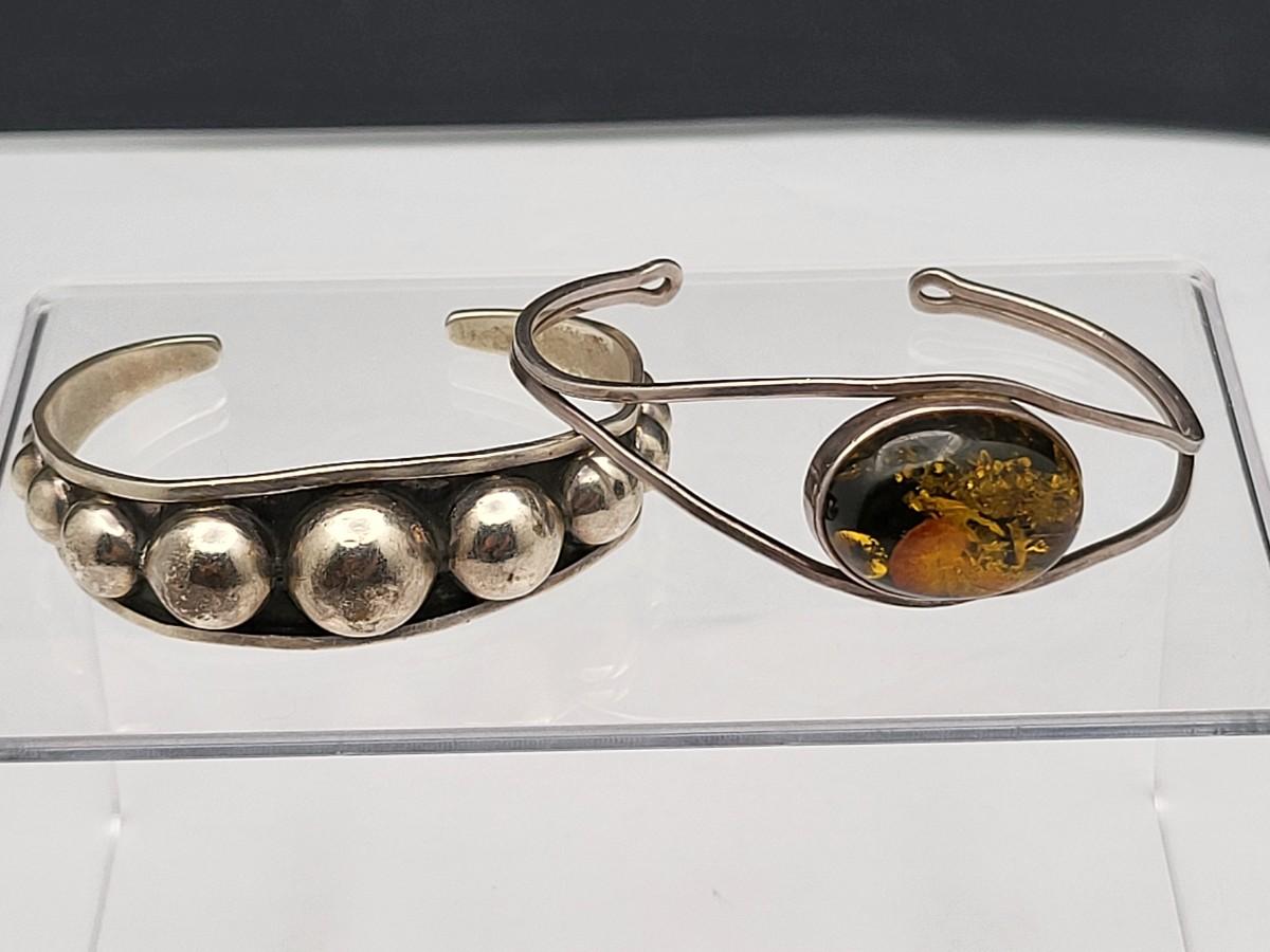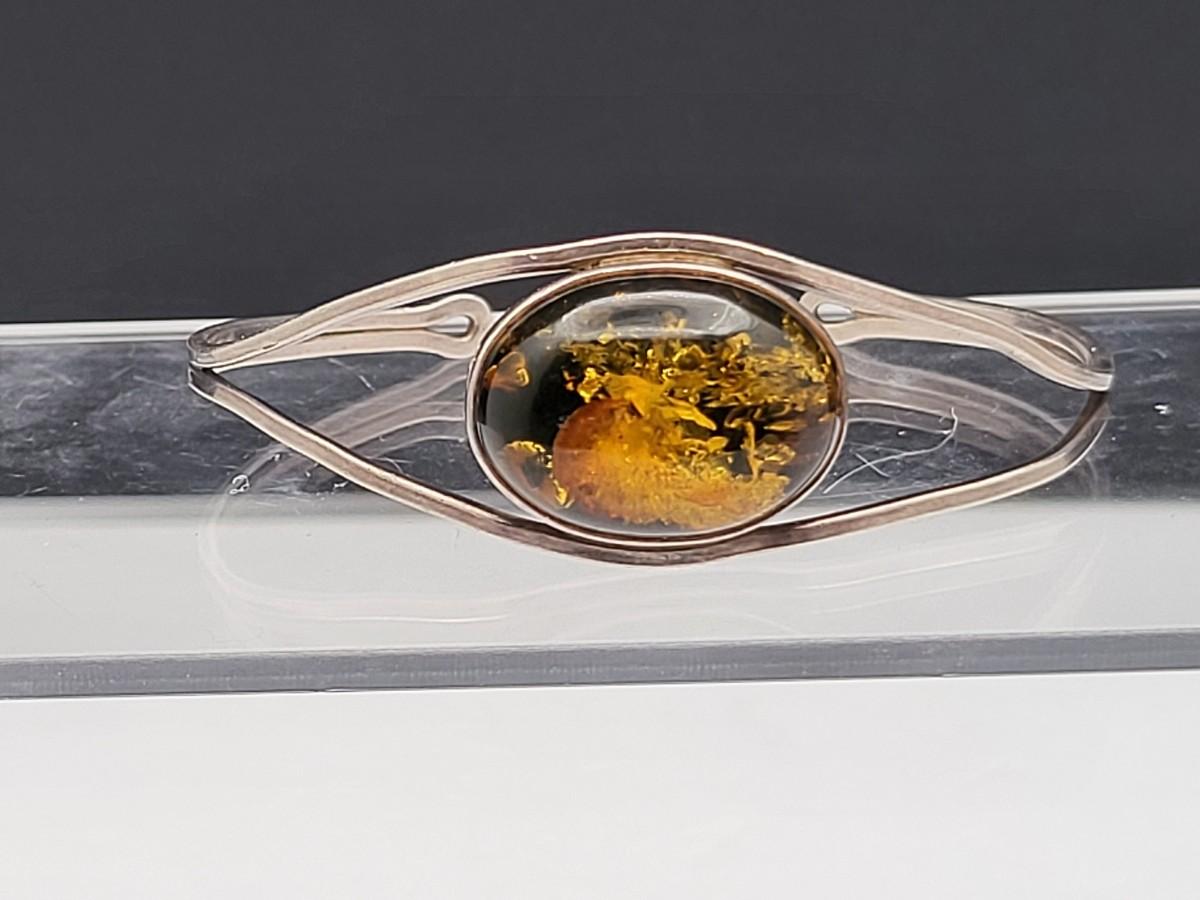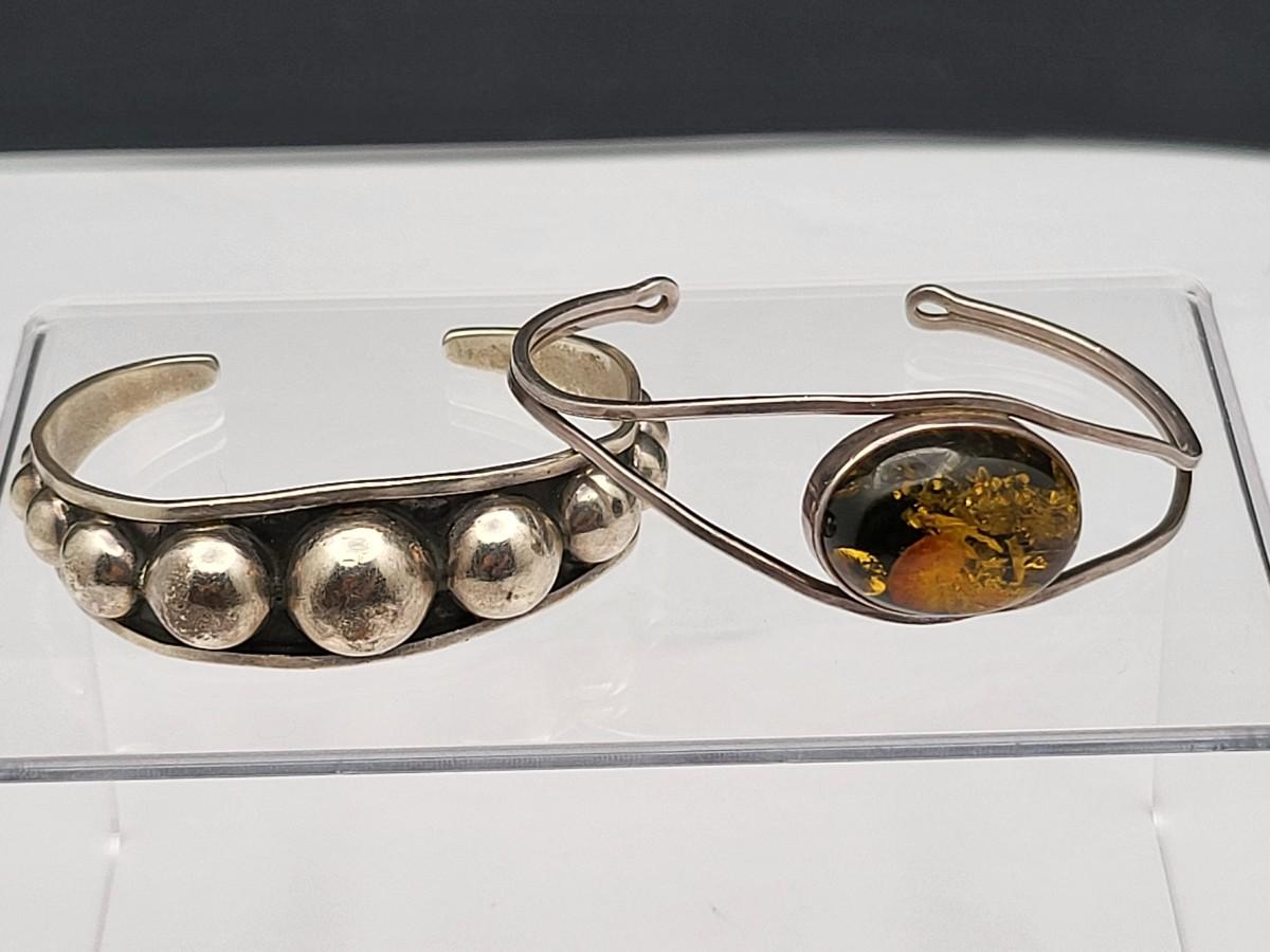 Oval Amber open cuff, unmarked silver. Total weight 37.5 grams.