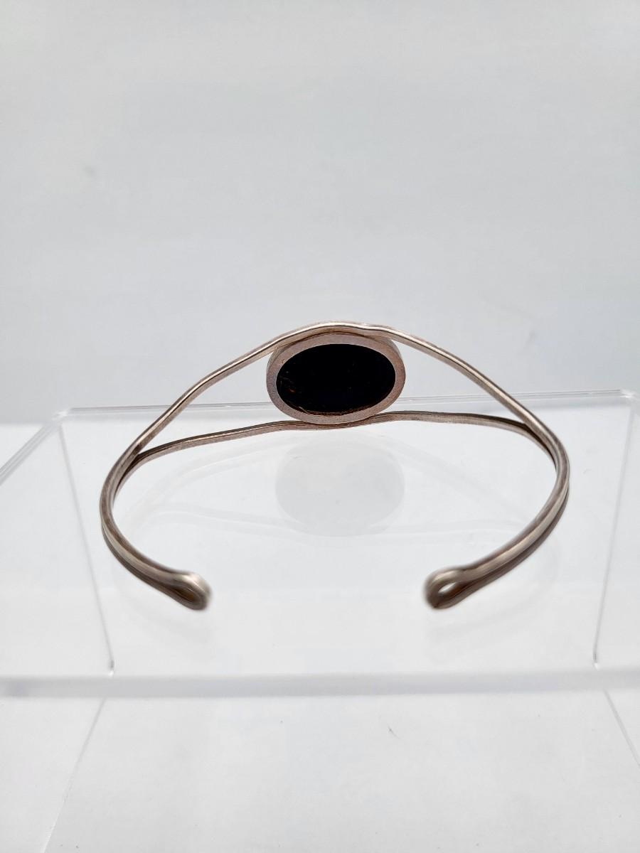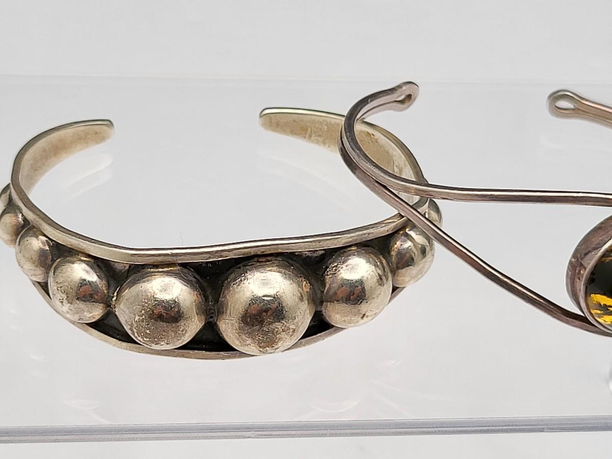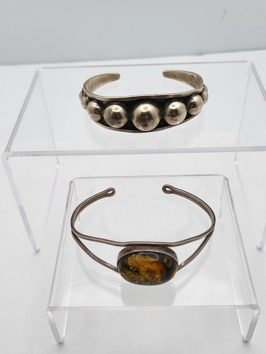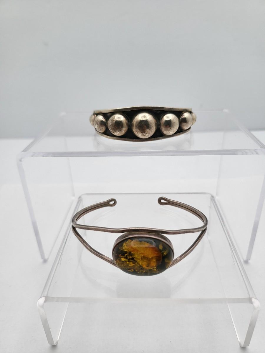 Oval Amber open cuff, unmarked silver. Total weight 37.5 grams.