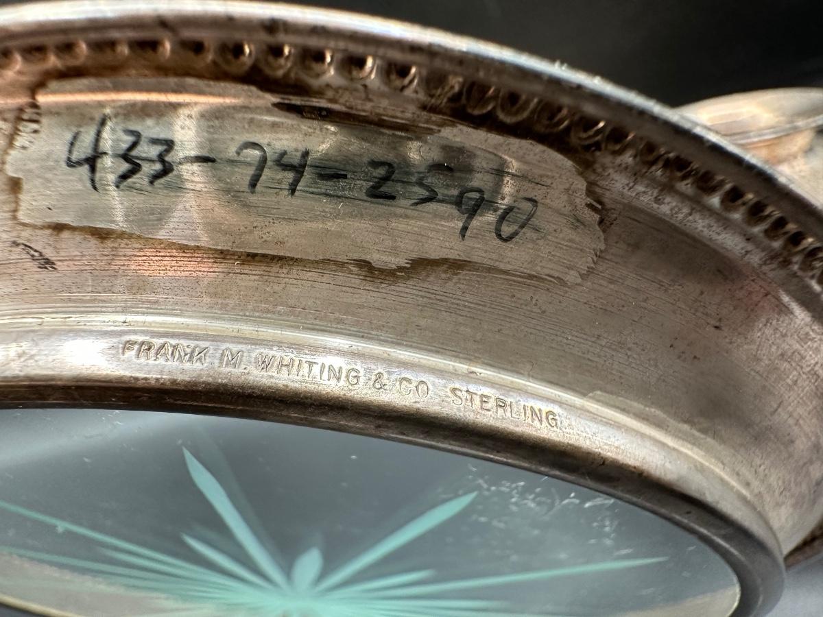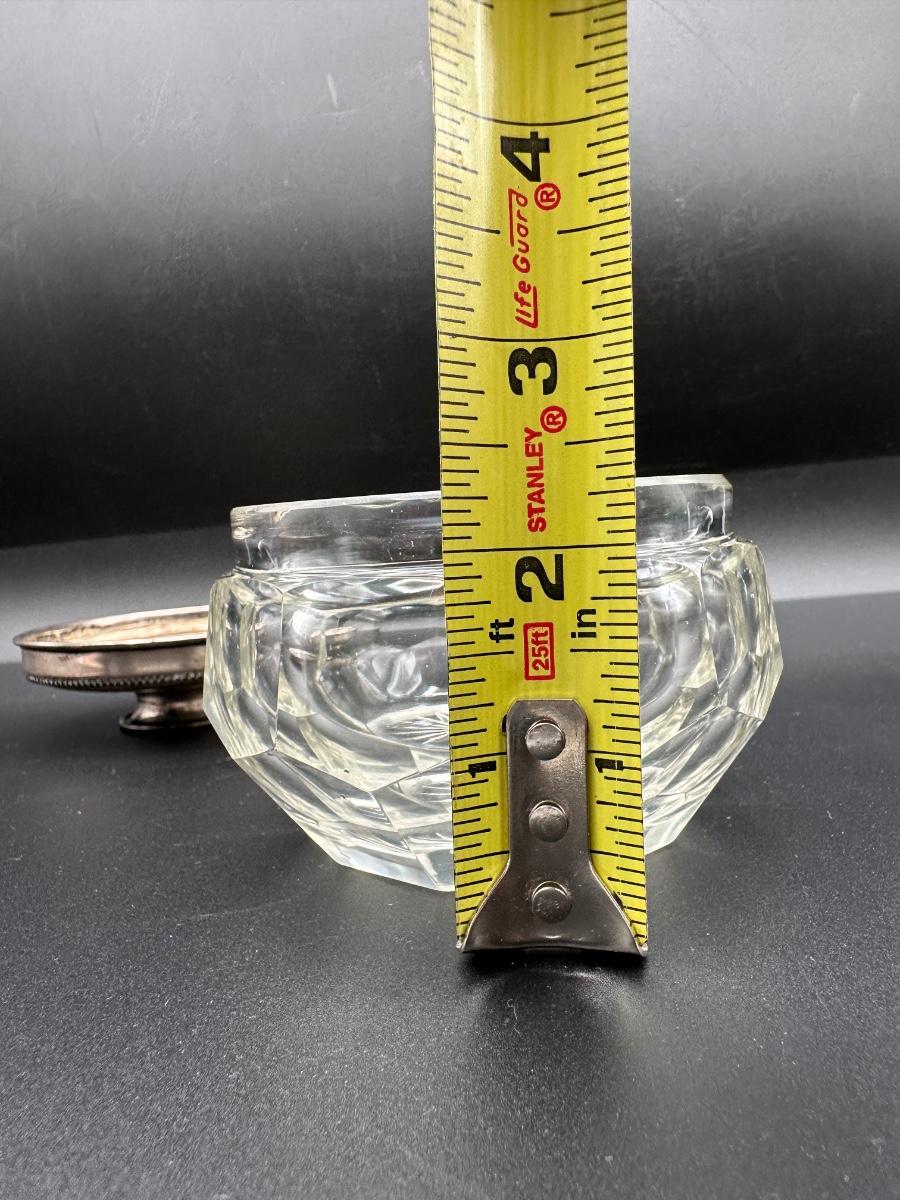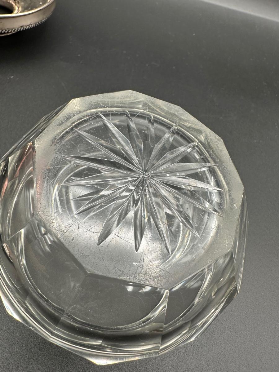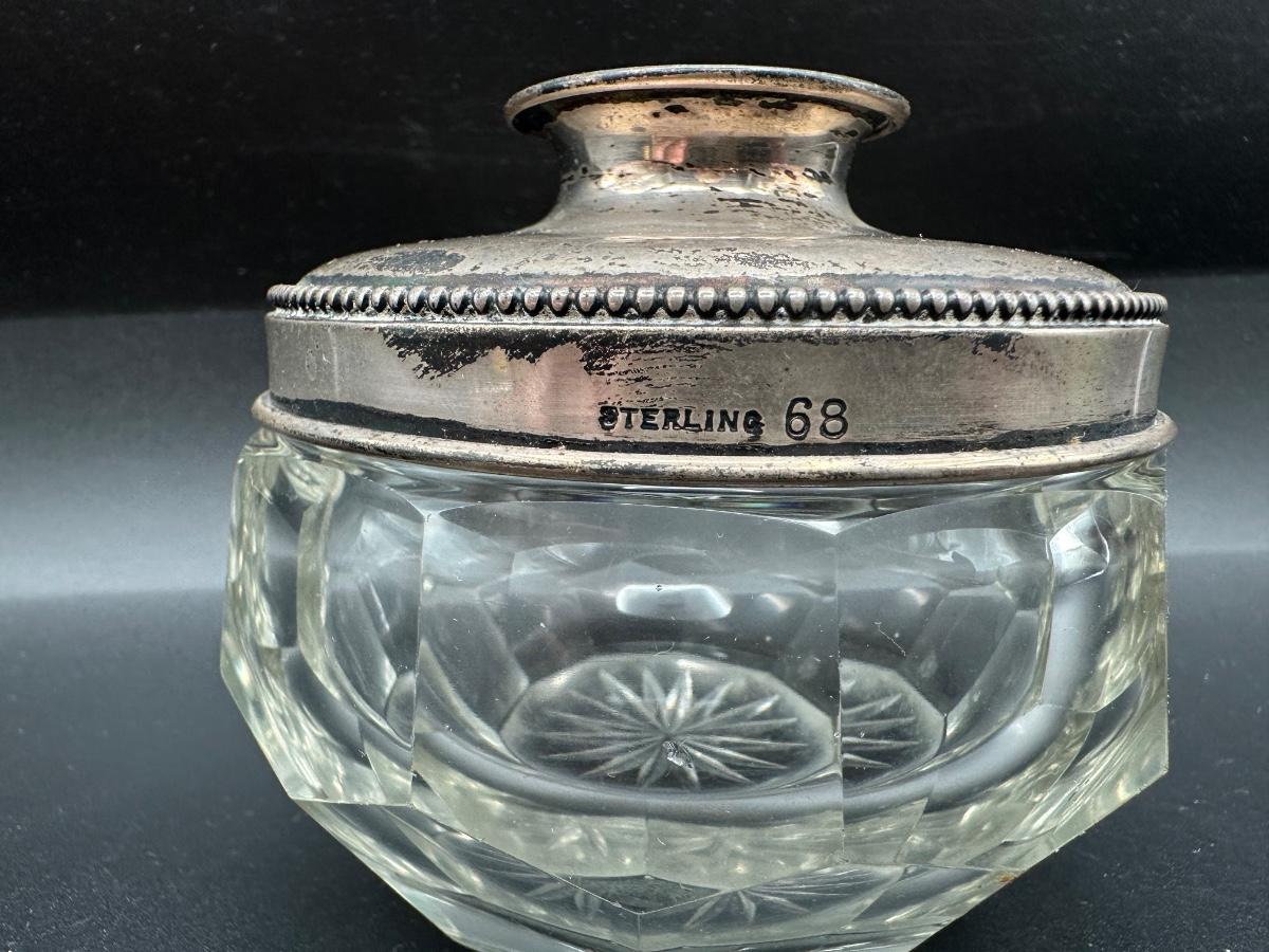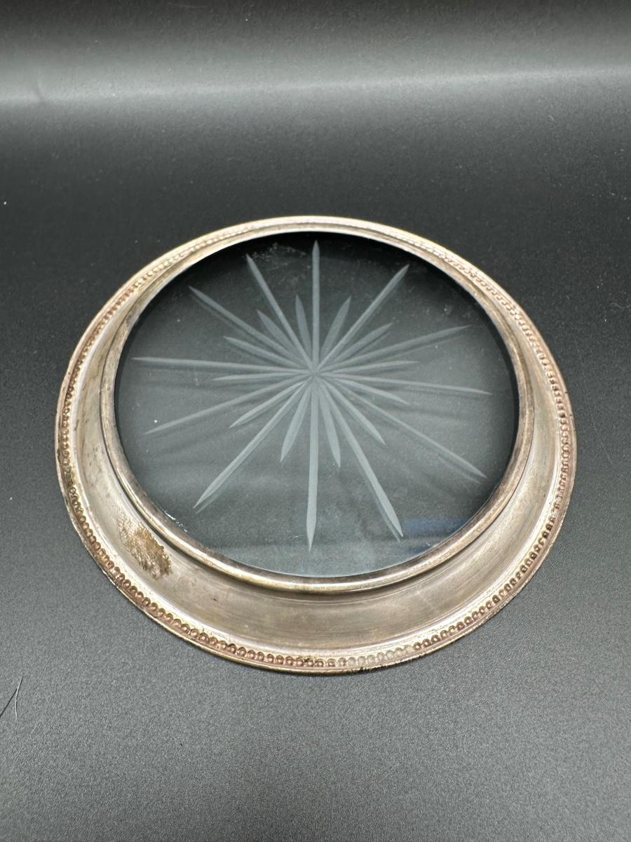 Sterling Silver & Cut Glass Vanity Jar with Sterling Rim Glass Coaster