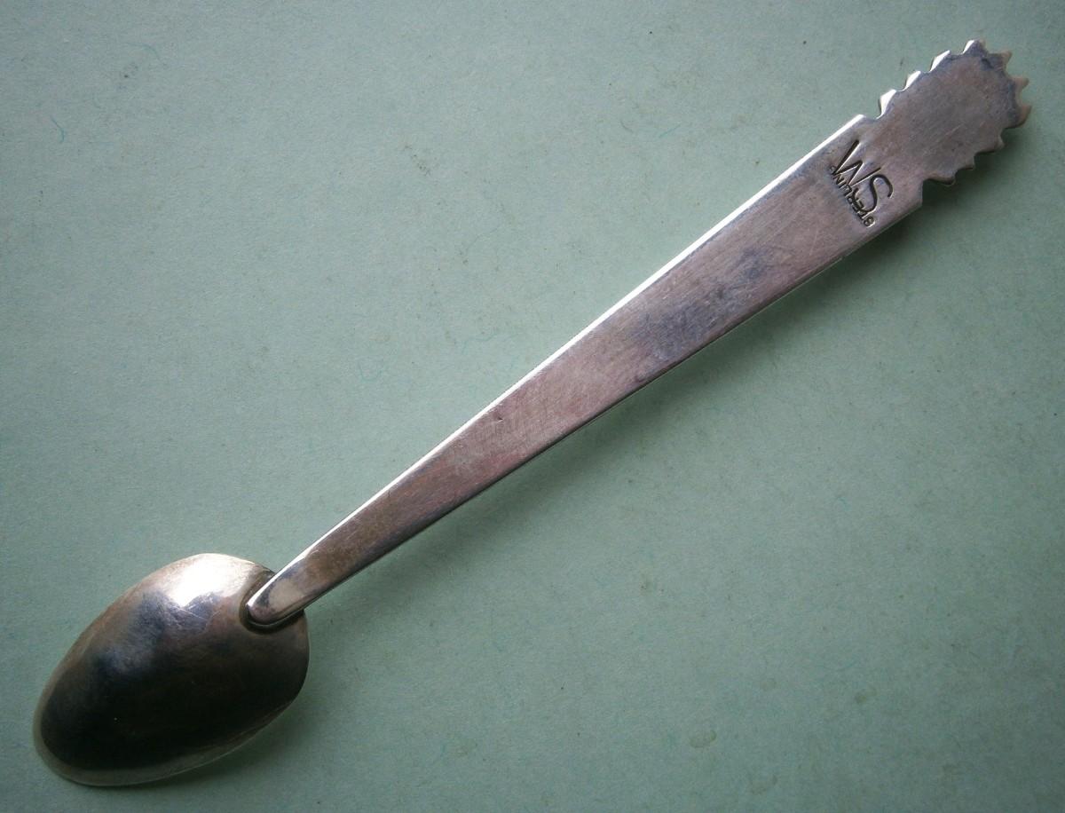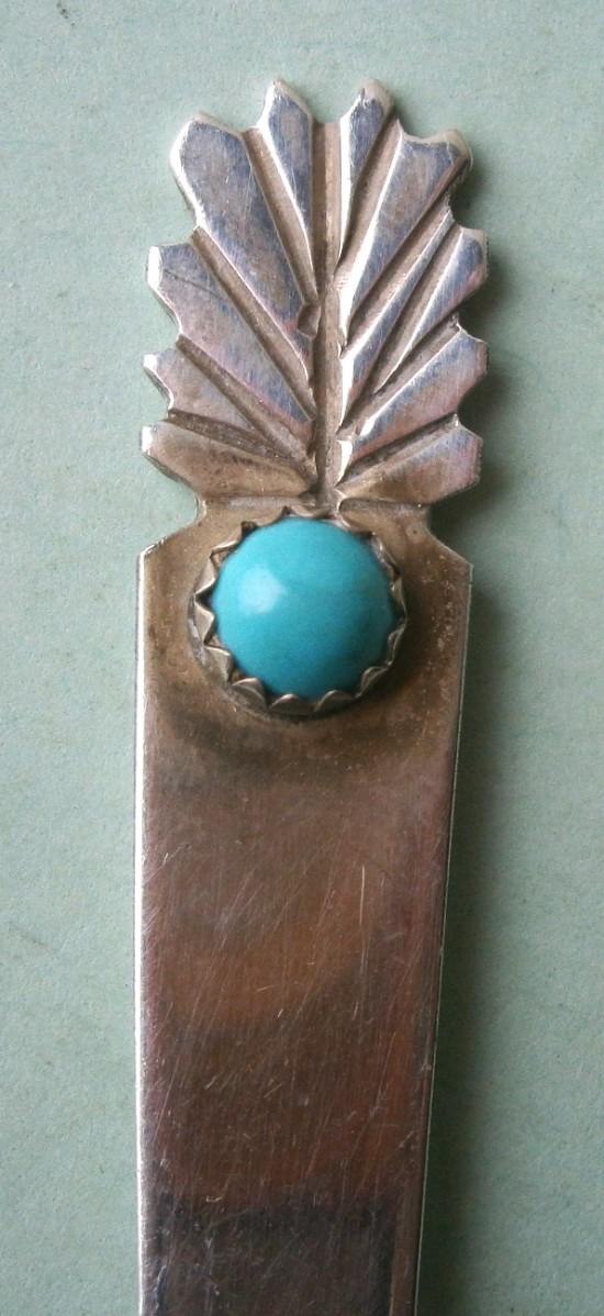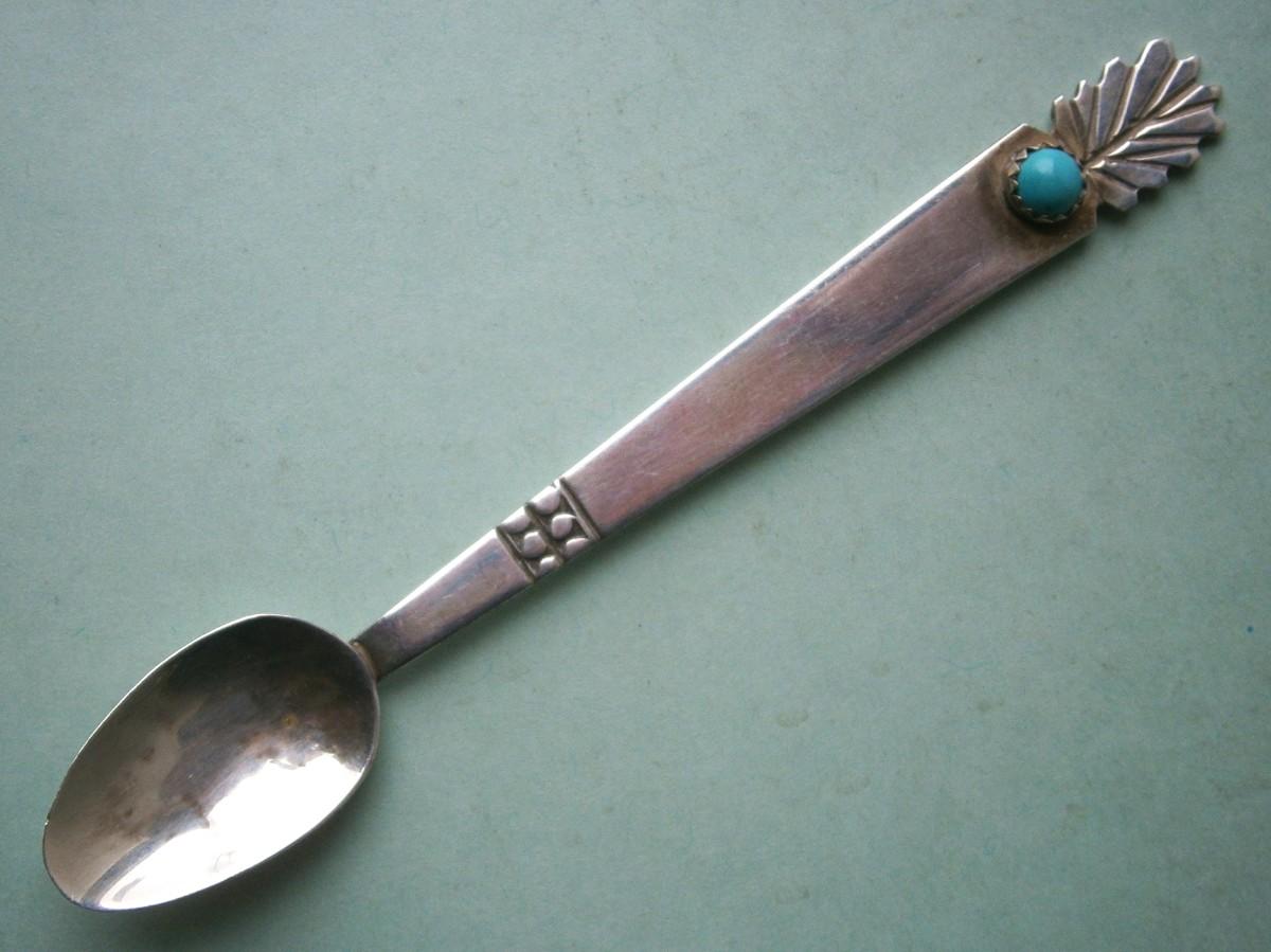 Sterling Silver Demitasse Spoon with Turquoise Stone, 3 3/4 in. long, appears to be hand crafted.