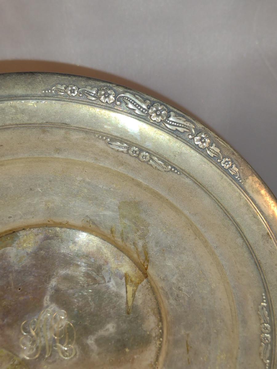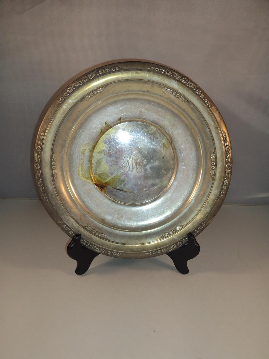Sterling Silver Dish- Approx Total Weight 233 Grams. Approx 10" in diameter. Item has been monogrammed.