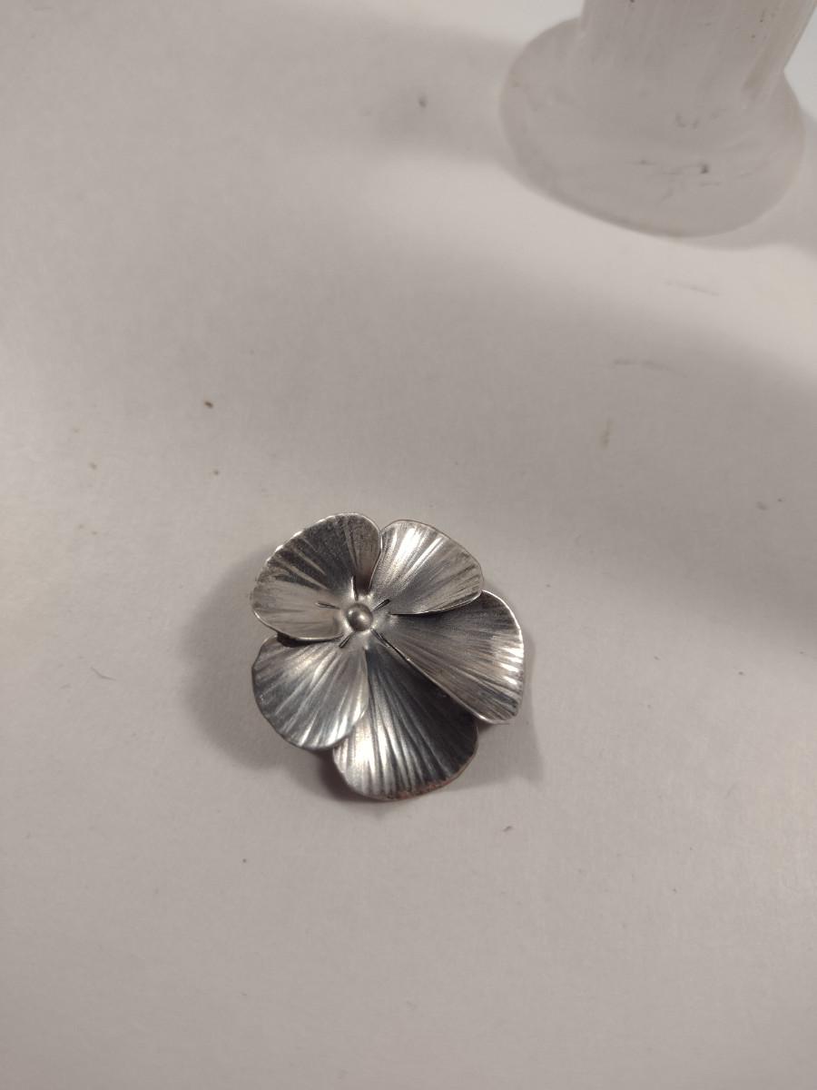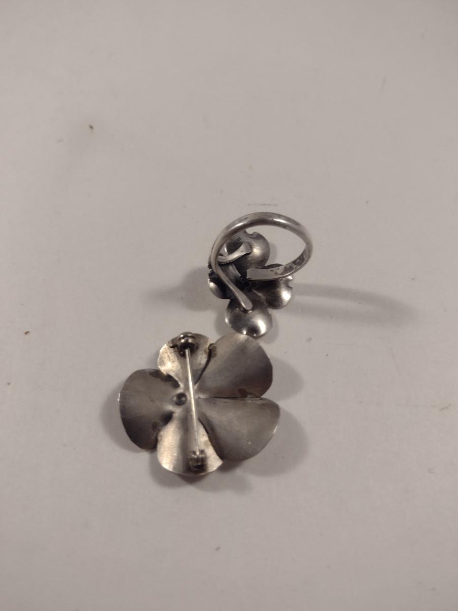 Sterling Silver Dogwood Design Ring and Brooch Set- Total Approx Weight 7 Grams (#276)