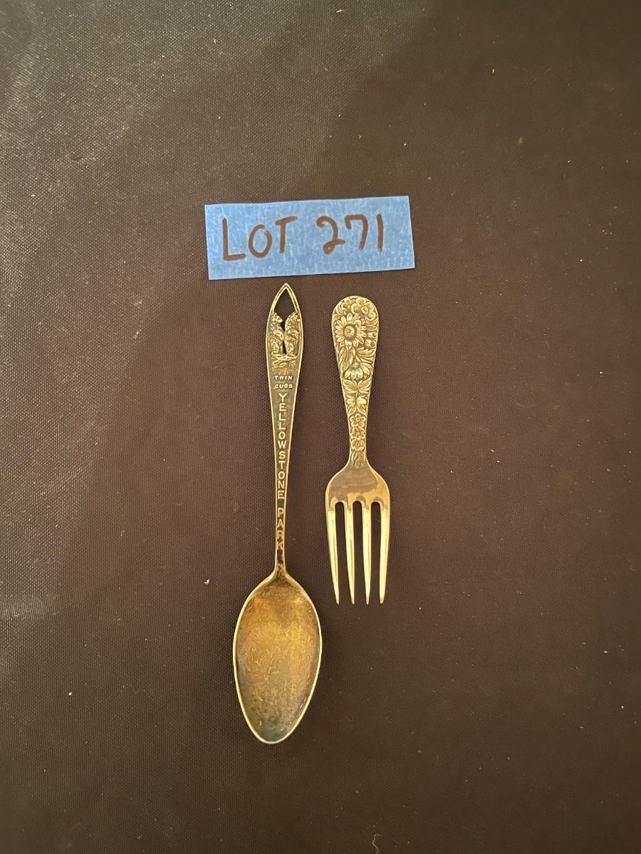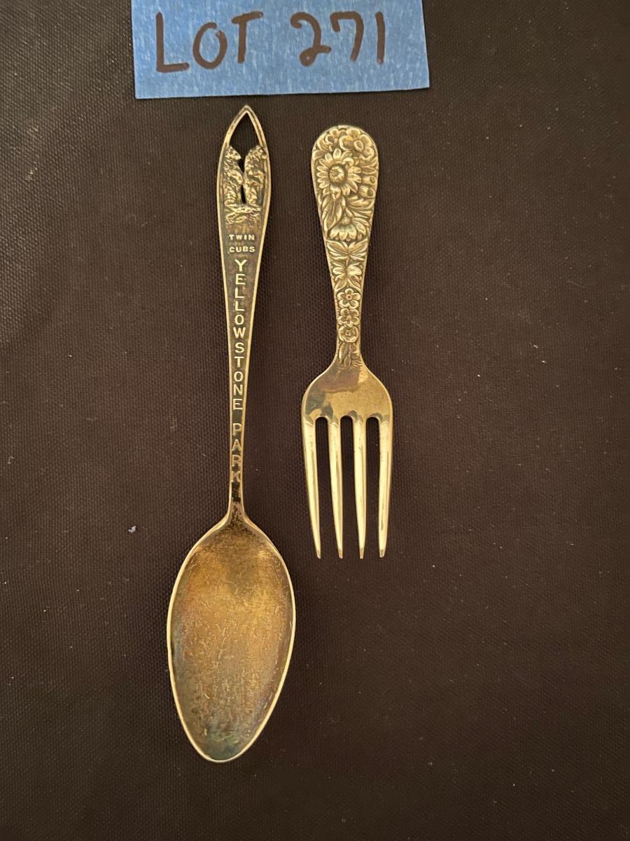 Sterling silver fork, sterling silver "Twin Cubs Yellow Stone Park!"