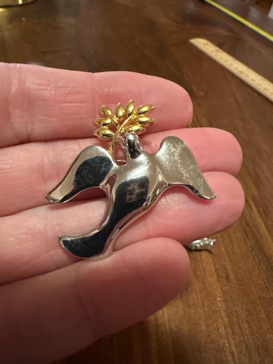 Sterling Silver Dove with Olive Branch Pin
