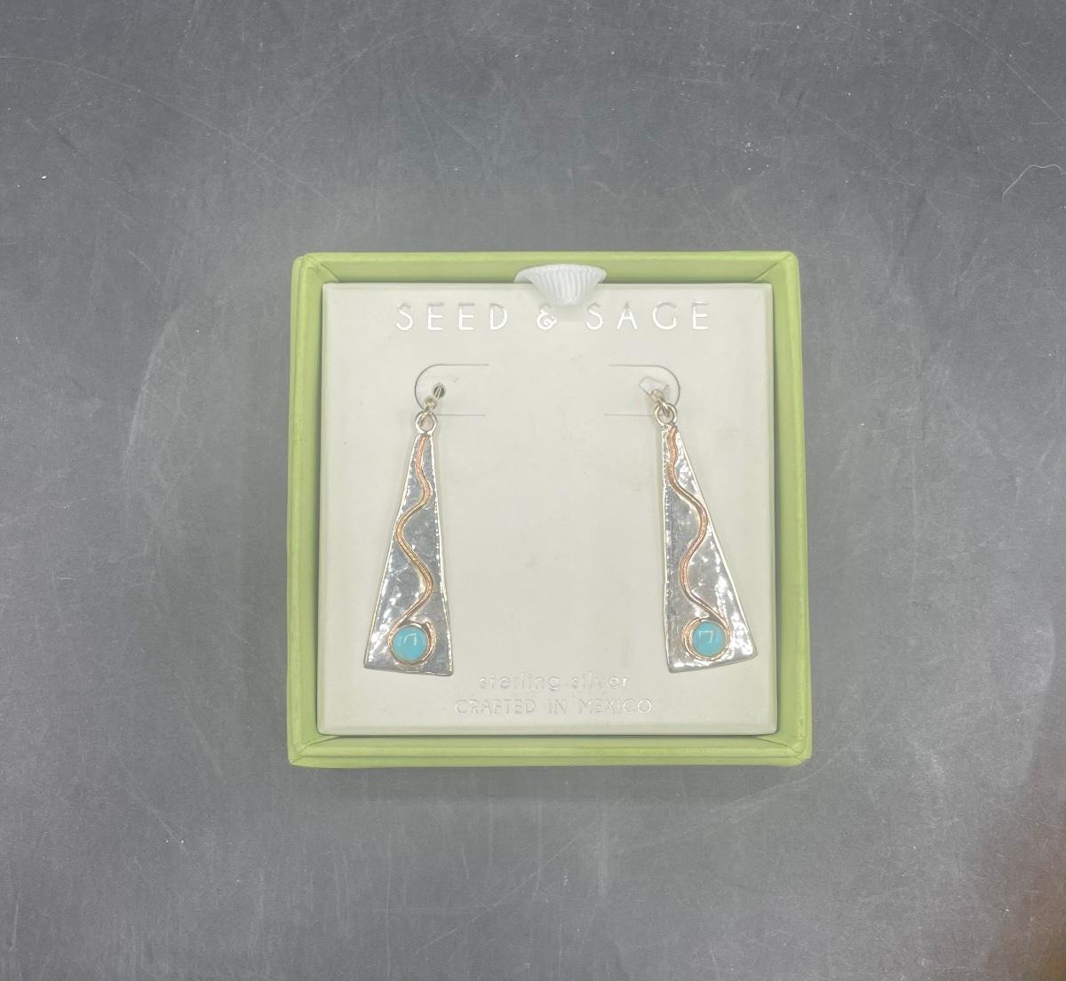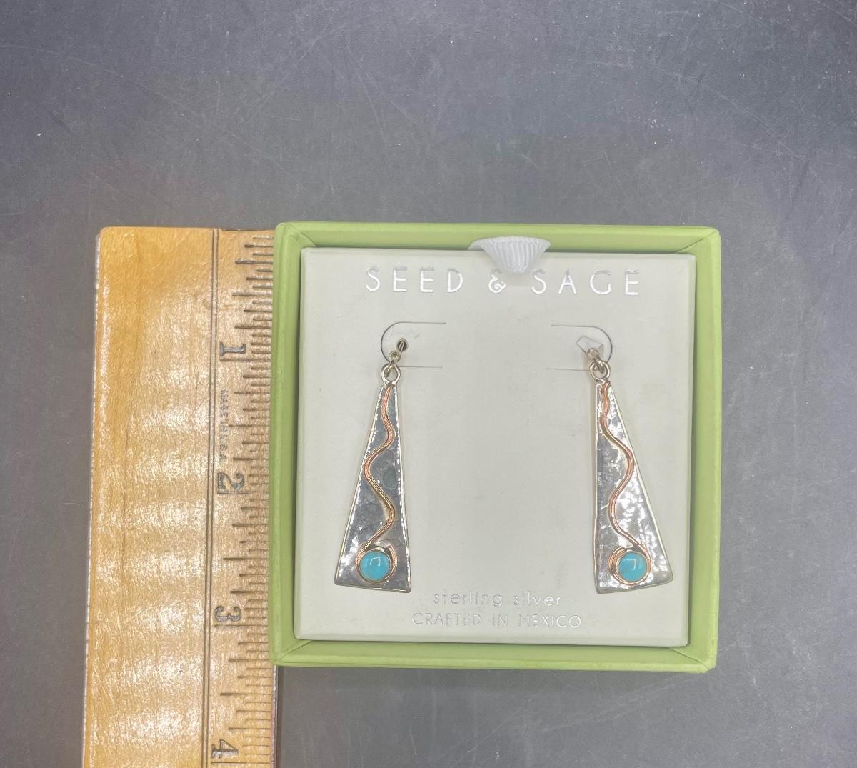 Made in Mexico, 925 sterling silver with round turquoise stone. For pierced ears. New in original box.