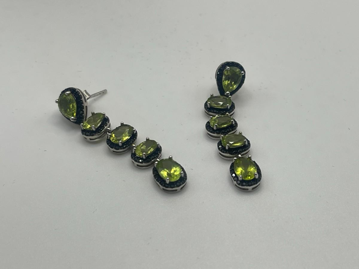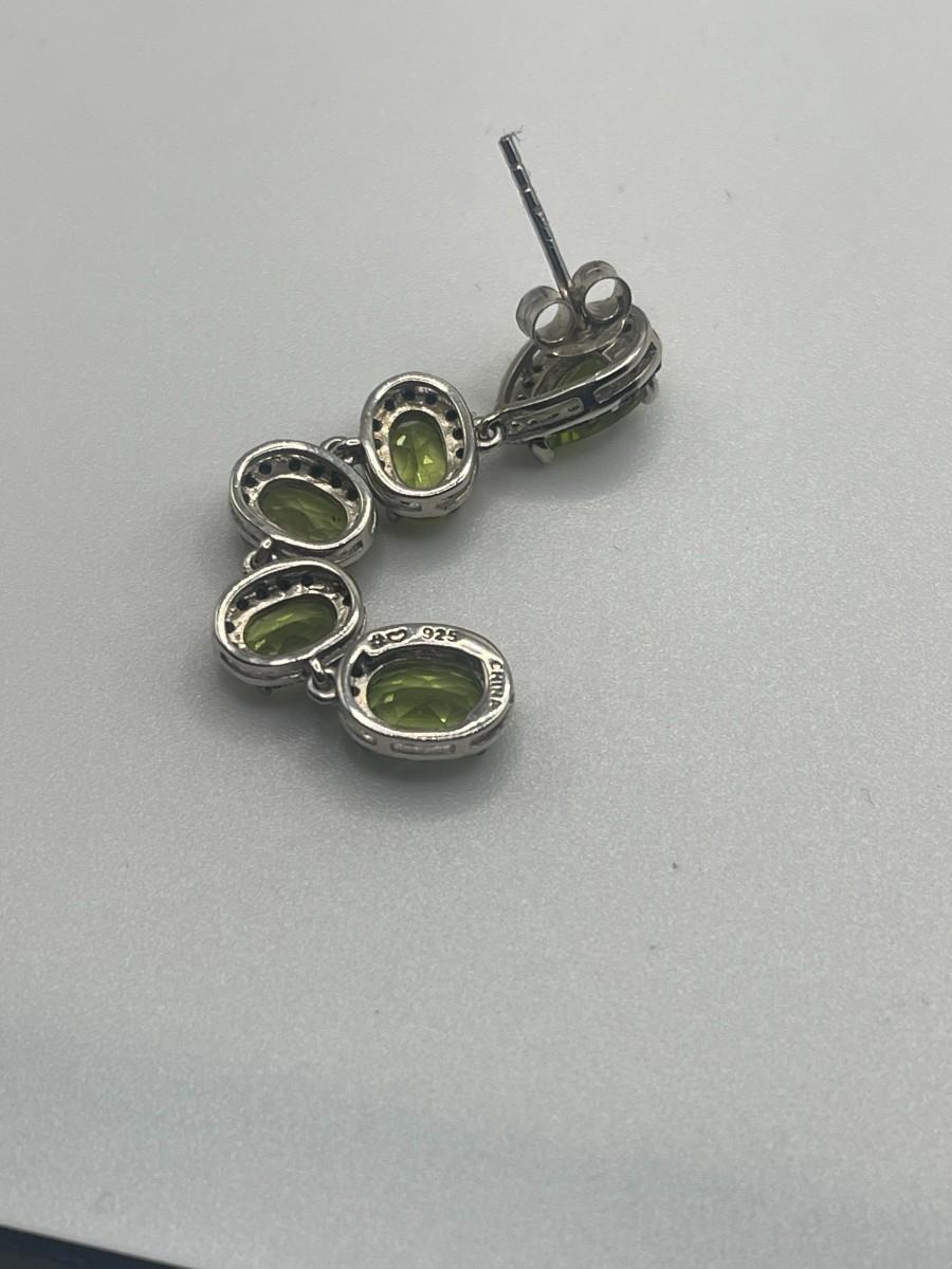 Sterling Silver Earrings with Faux Black Diamonds and Peridot Like Stones. Marked China 925. Approx 1 3/4 long.