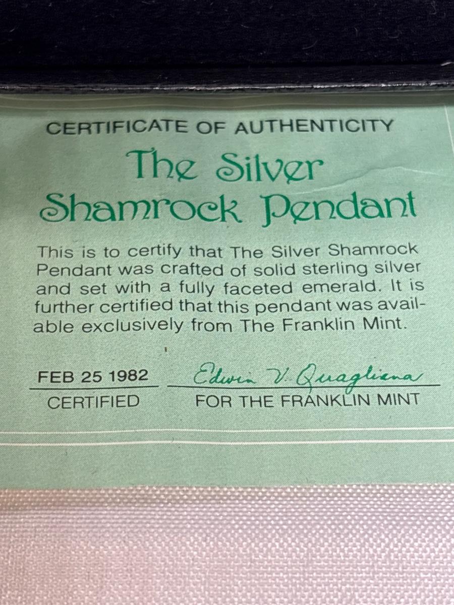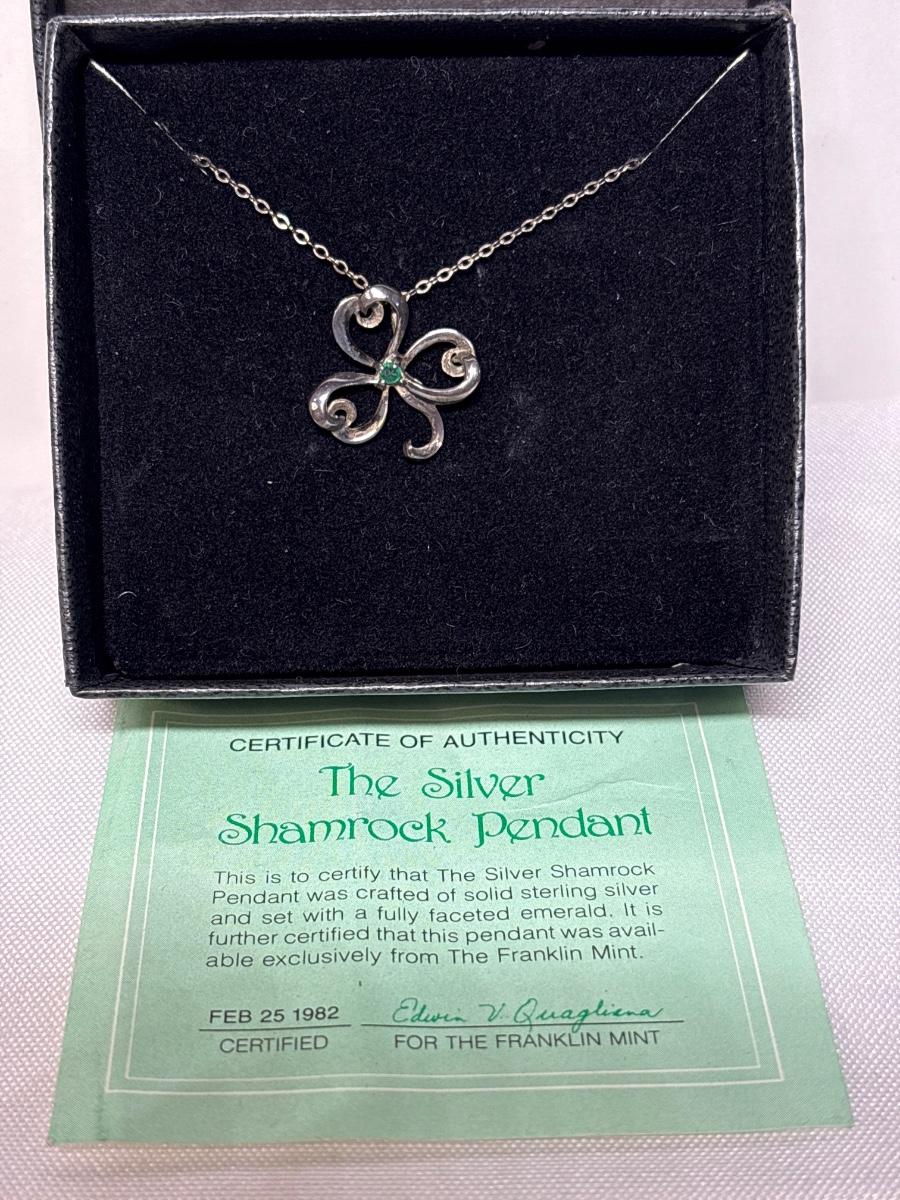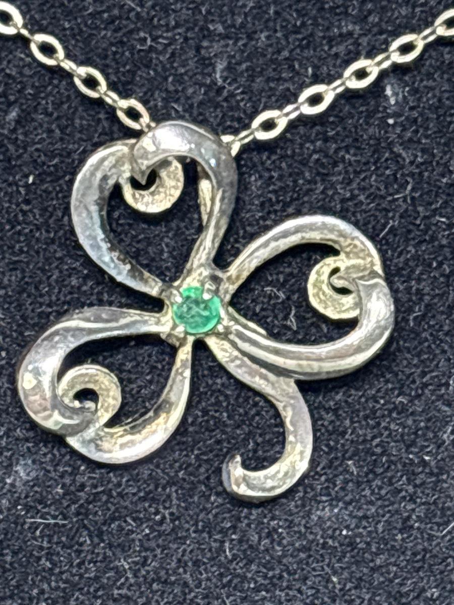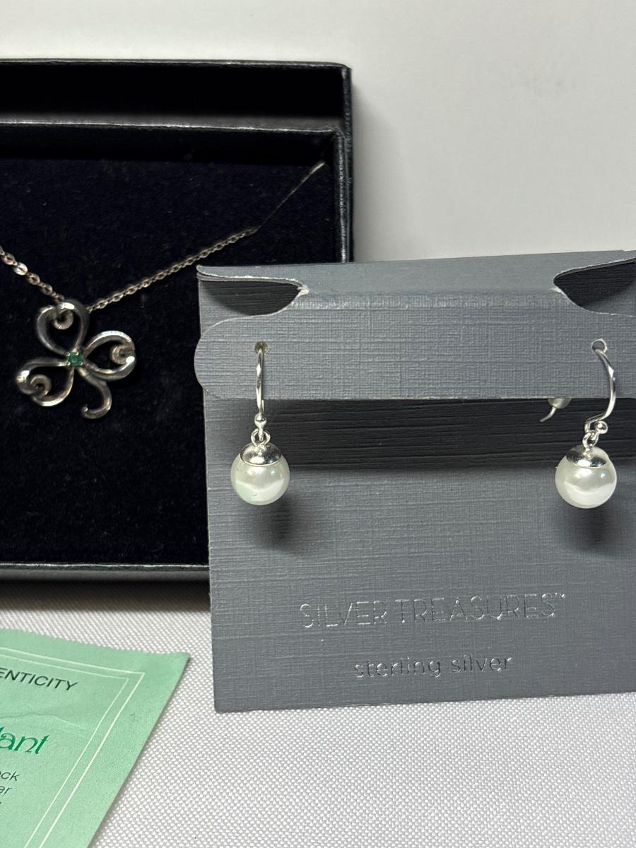 Sterling Silver & Emerald Shamrock Pendant & Pearl Earrings