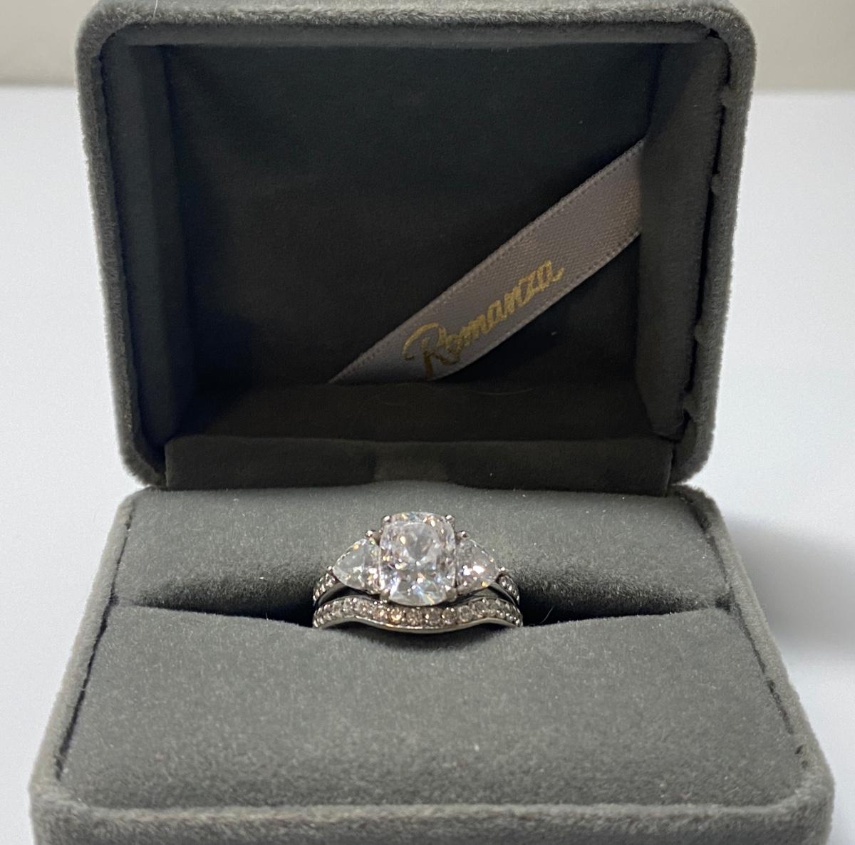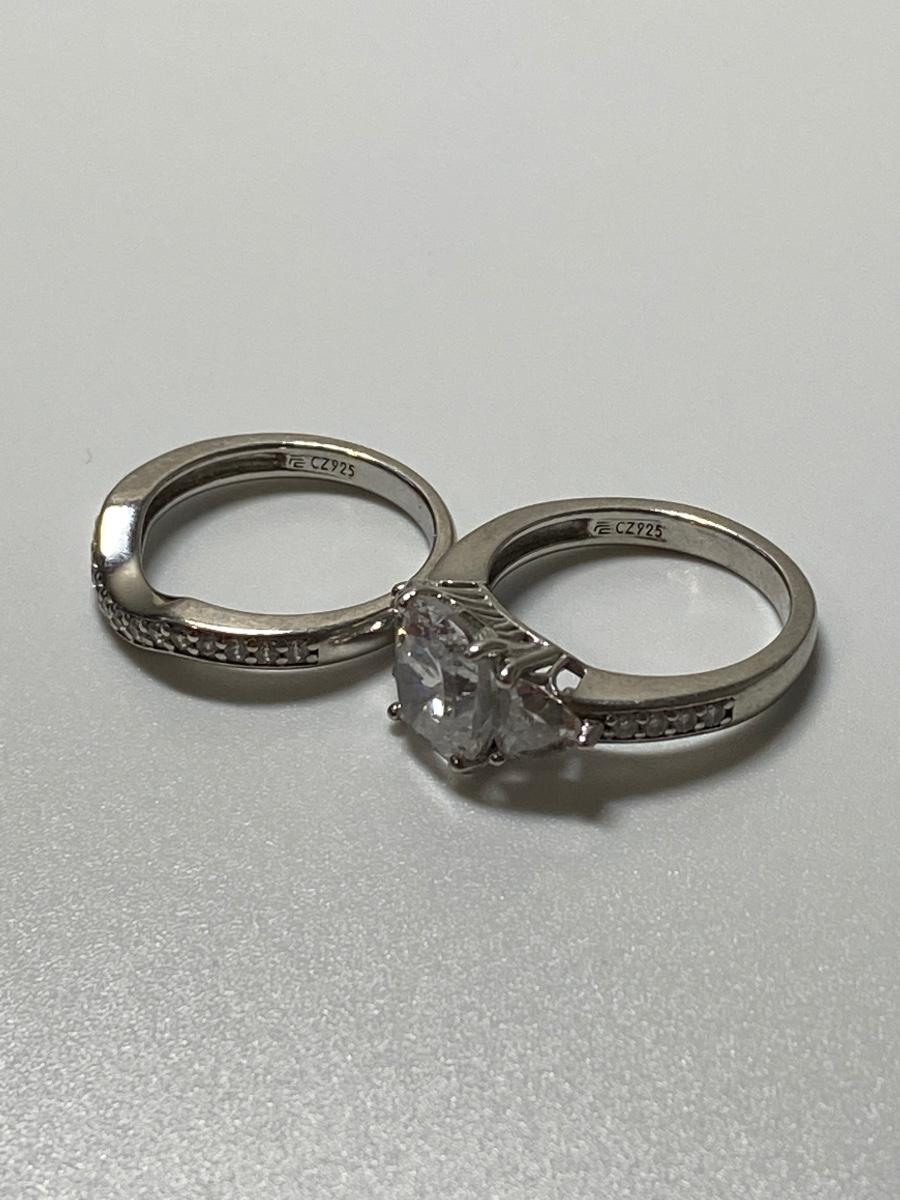 Sterling Silver Engagement Ring Set with Cubic Zirconia Stones. (Size 6) Marked CZ925