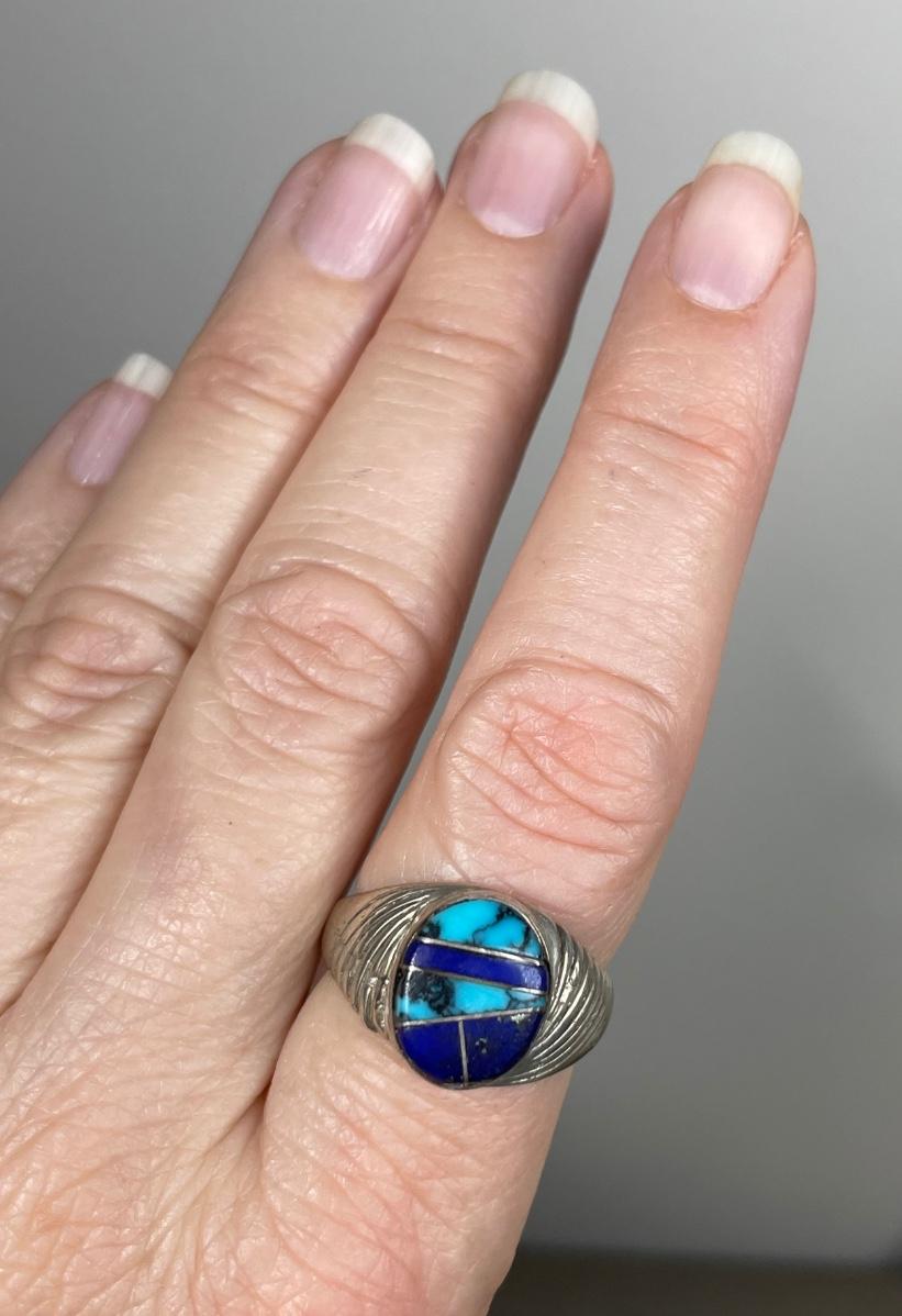 Inlay lapis and turquoise. Size 10