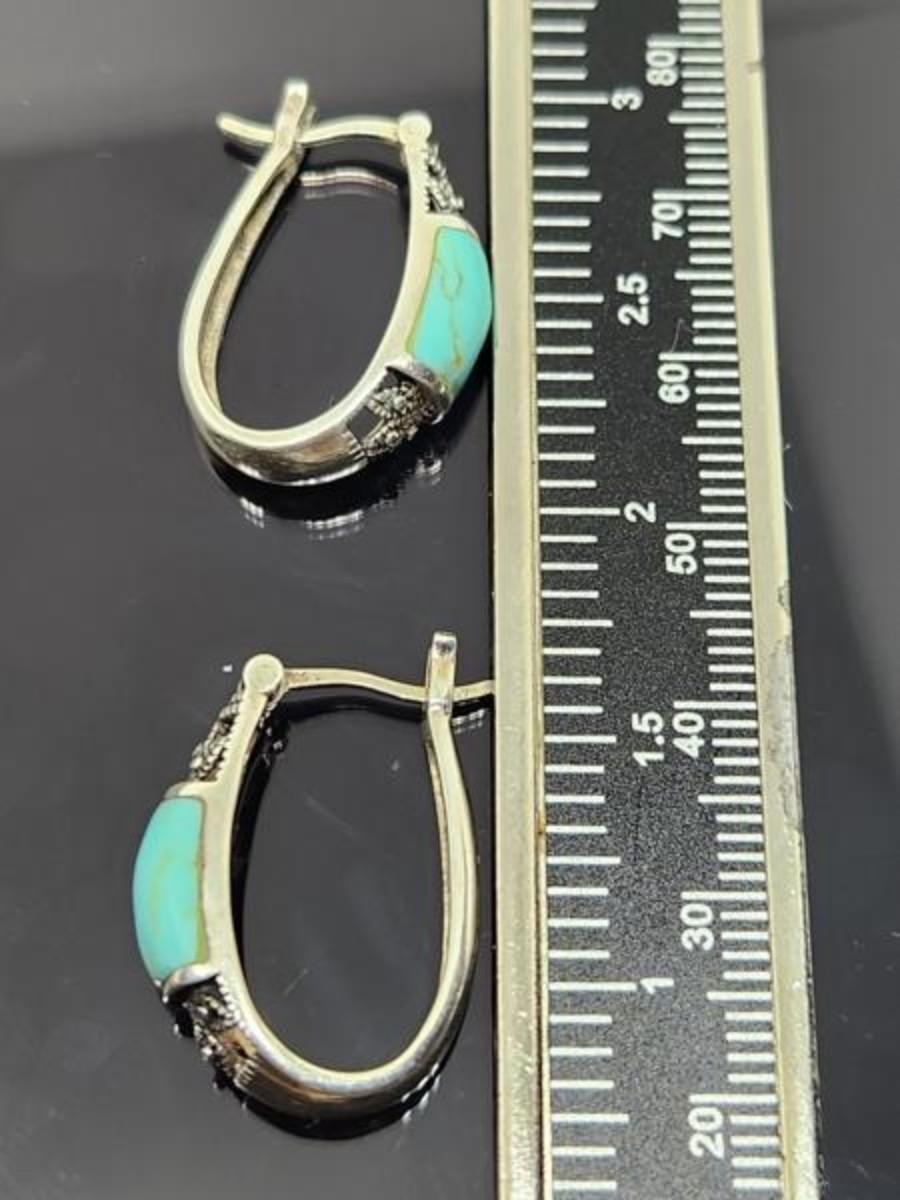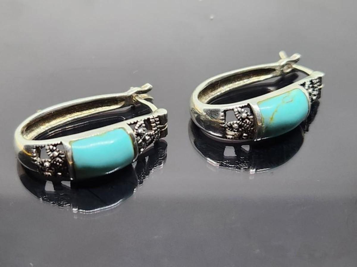 Sterling Silver Faux Turquoise Hoop Earrings 1 Inch