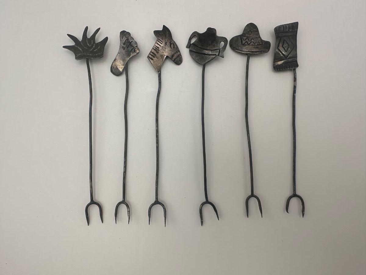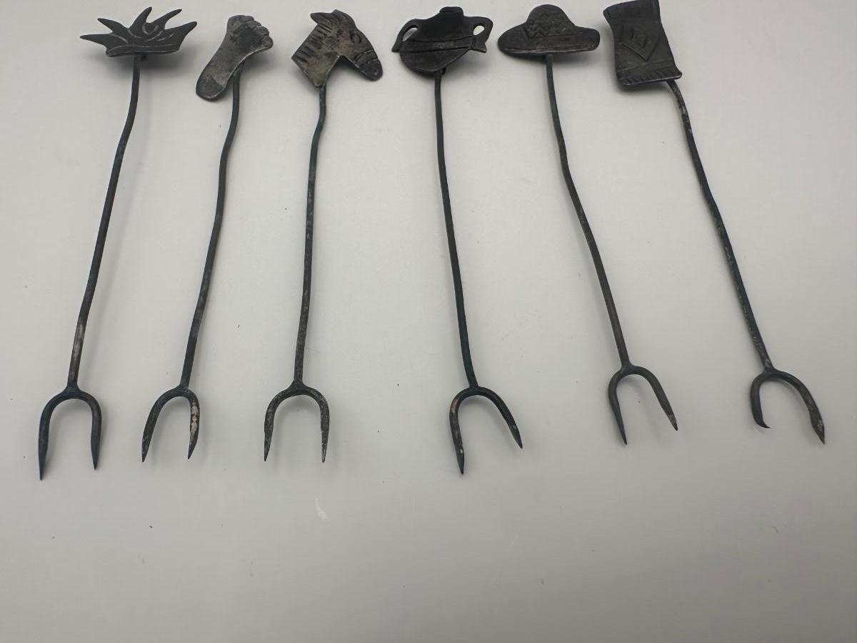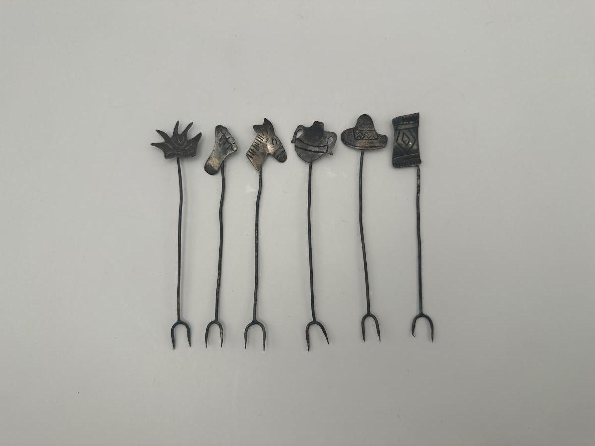 Sterling Silver Figural Cocktail Picks / Appetizer Forks – Set of 6