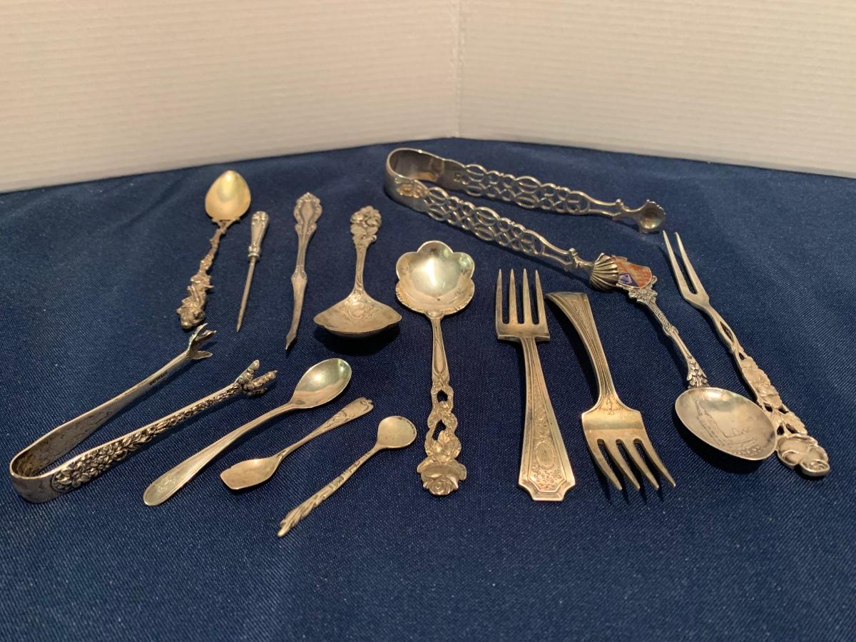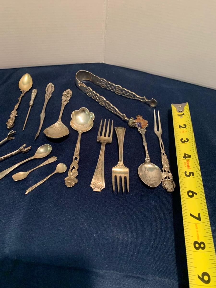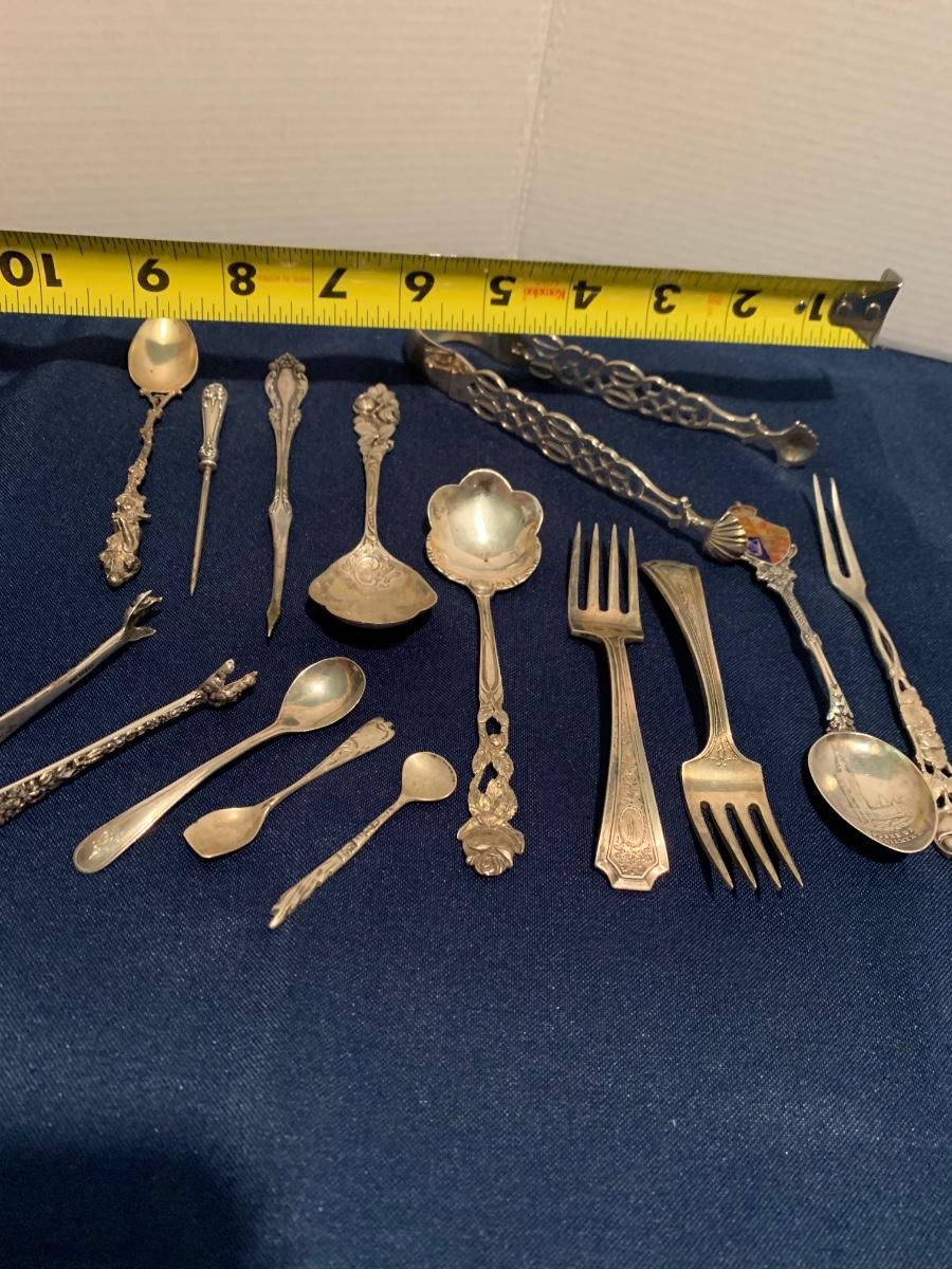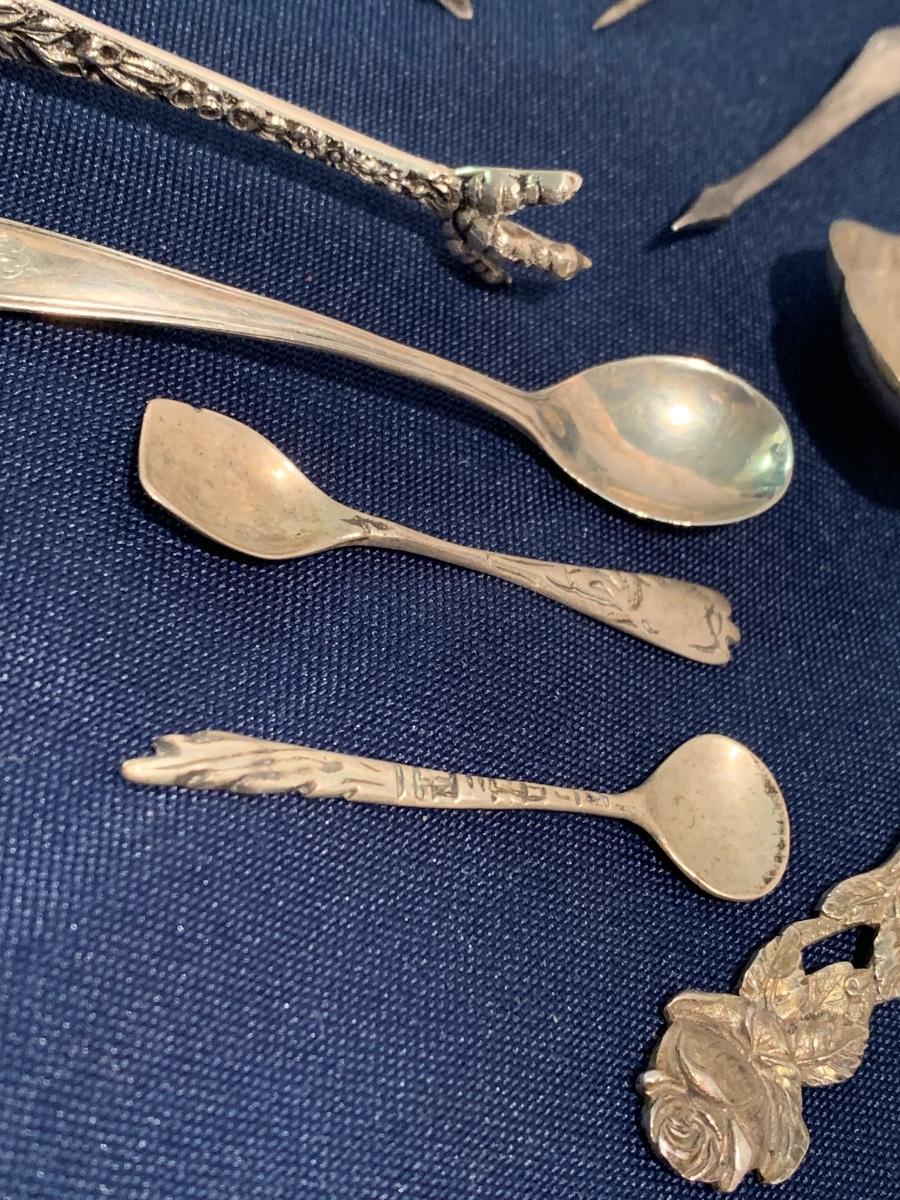 Sterling Silver Flatware Miniatures Lot Salt Spoons Tongs Children’s Flatware