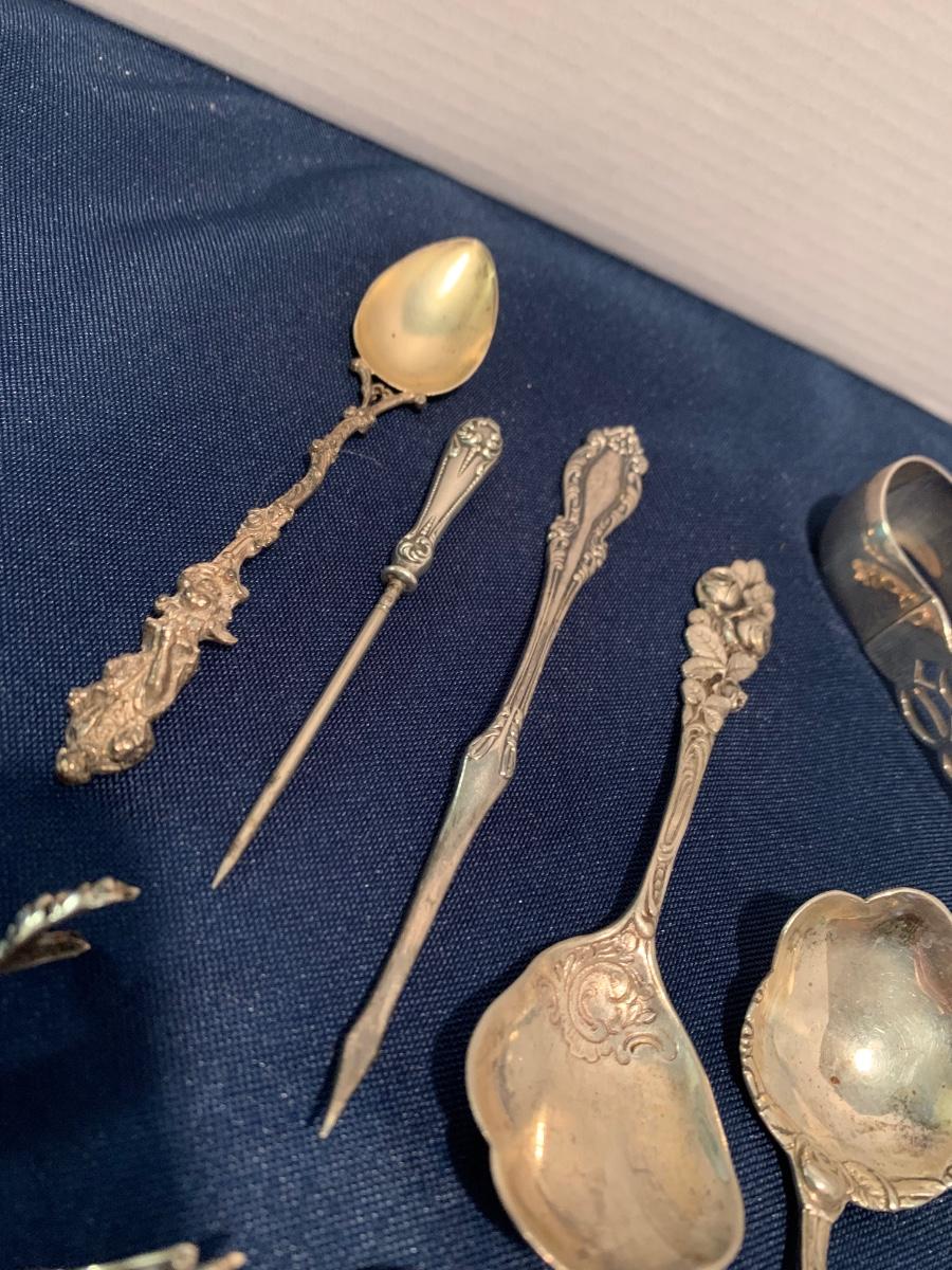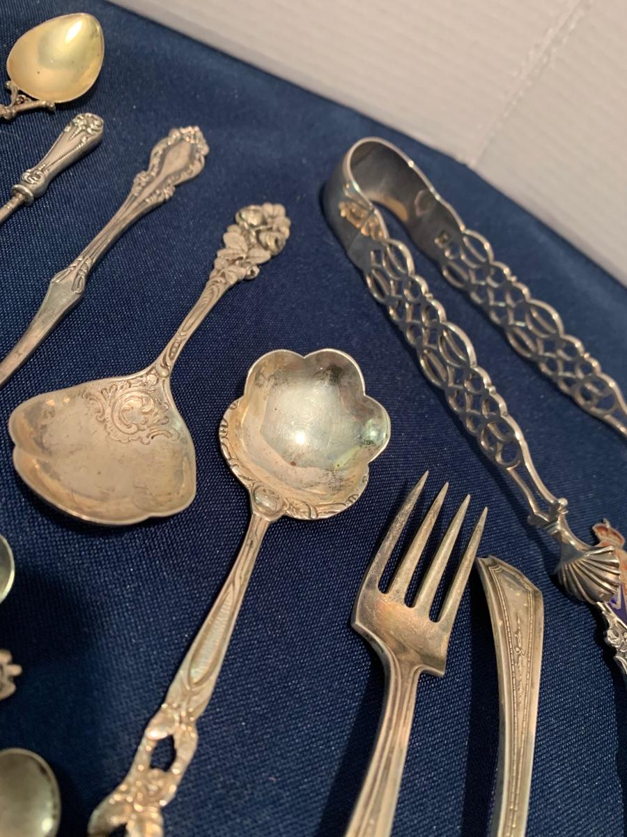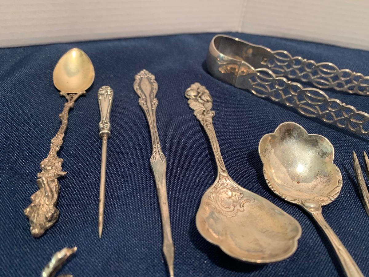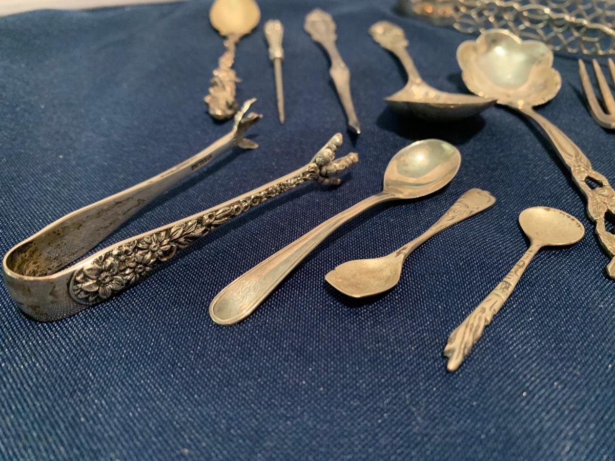 Sterling Silver Flatware Miniatures Lot Salt Spoons Tongs Children’s Flatware