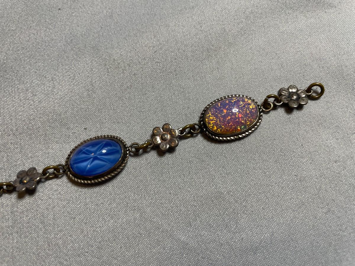 The clasp is marked sterling and this pretty, every day wear bracelet is about 7.25 inches long.