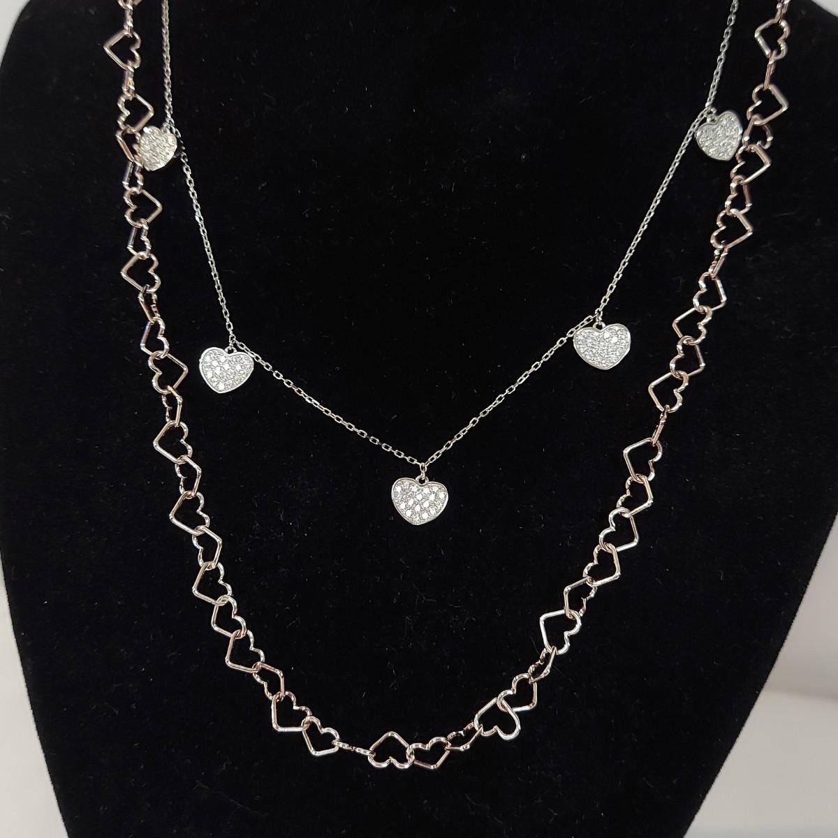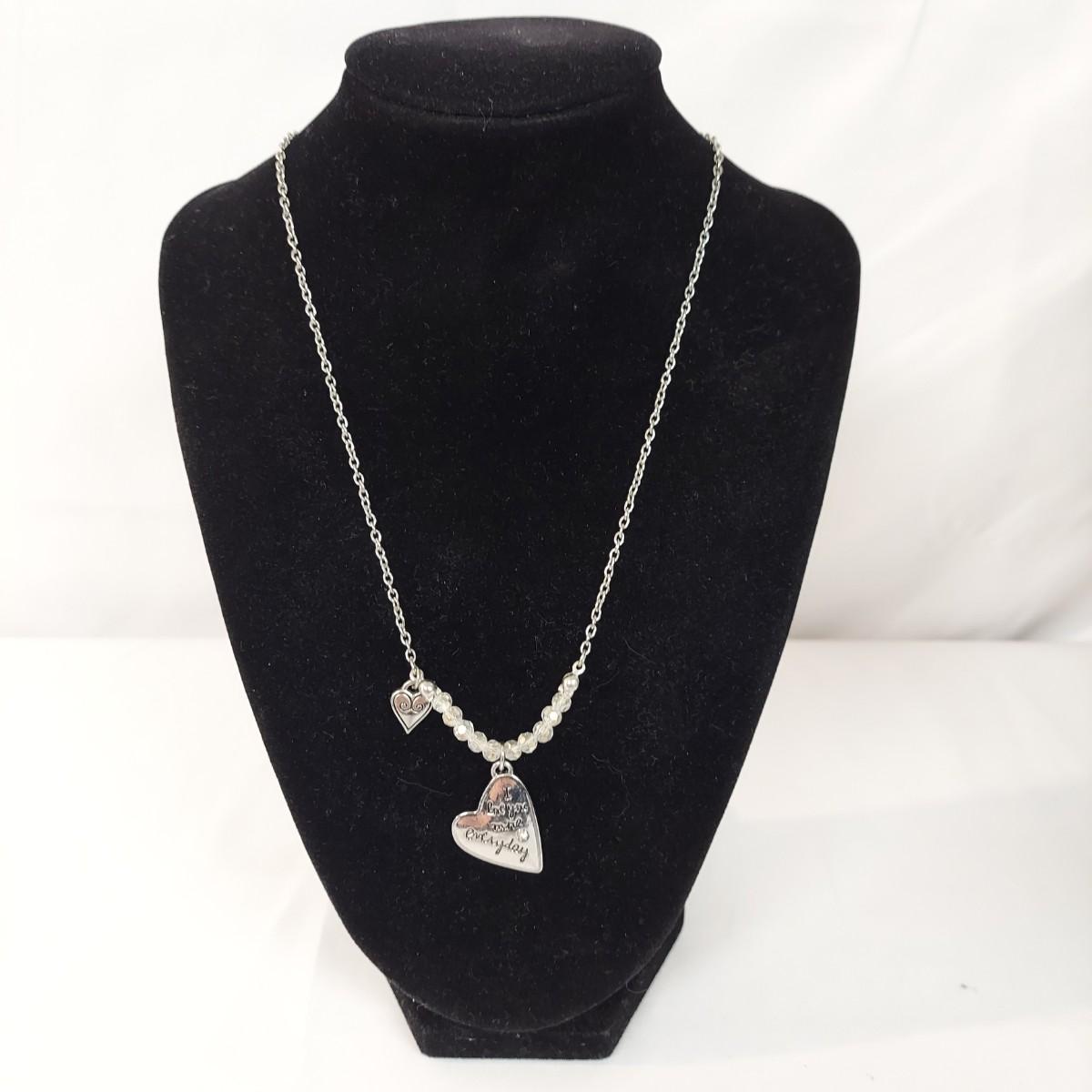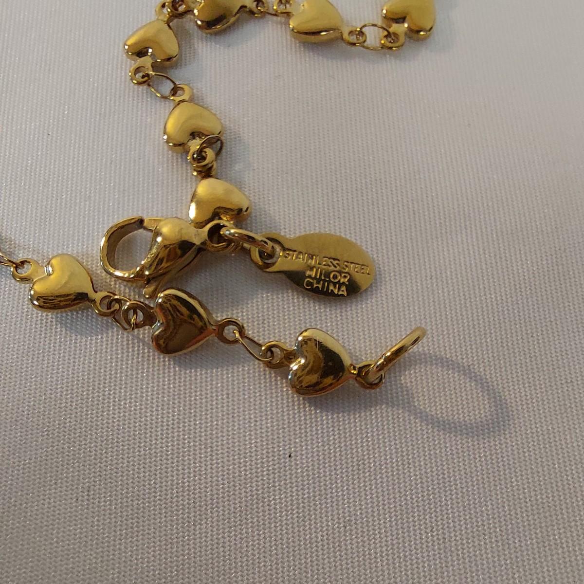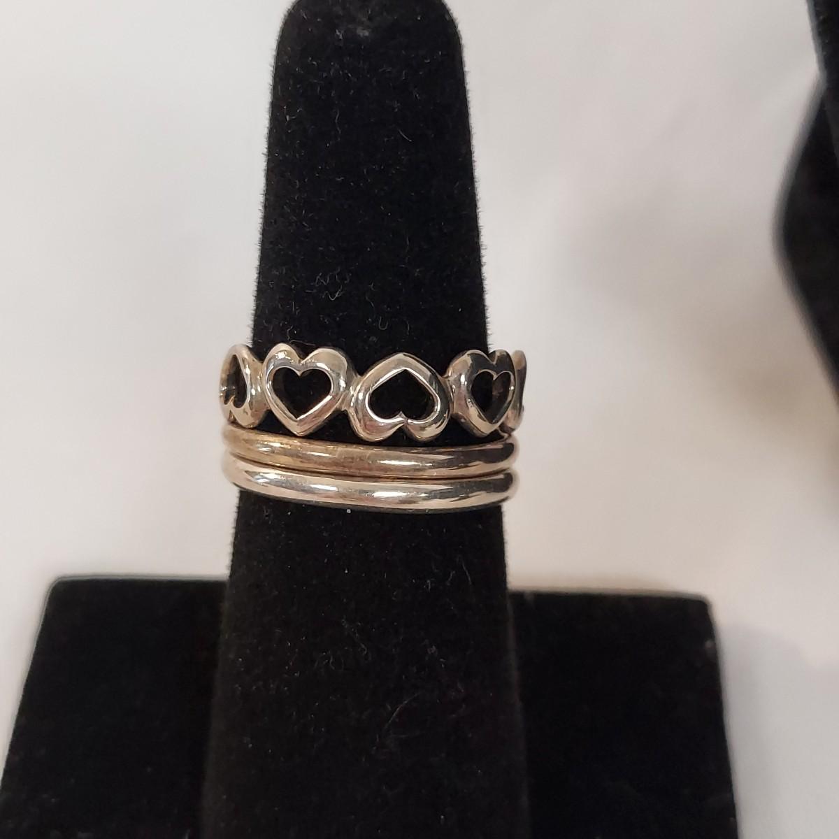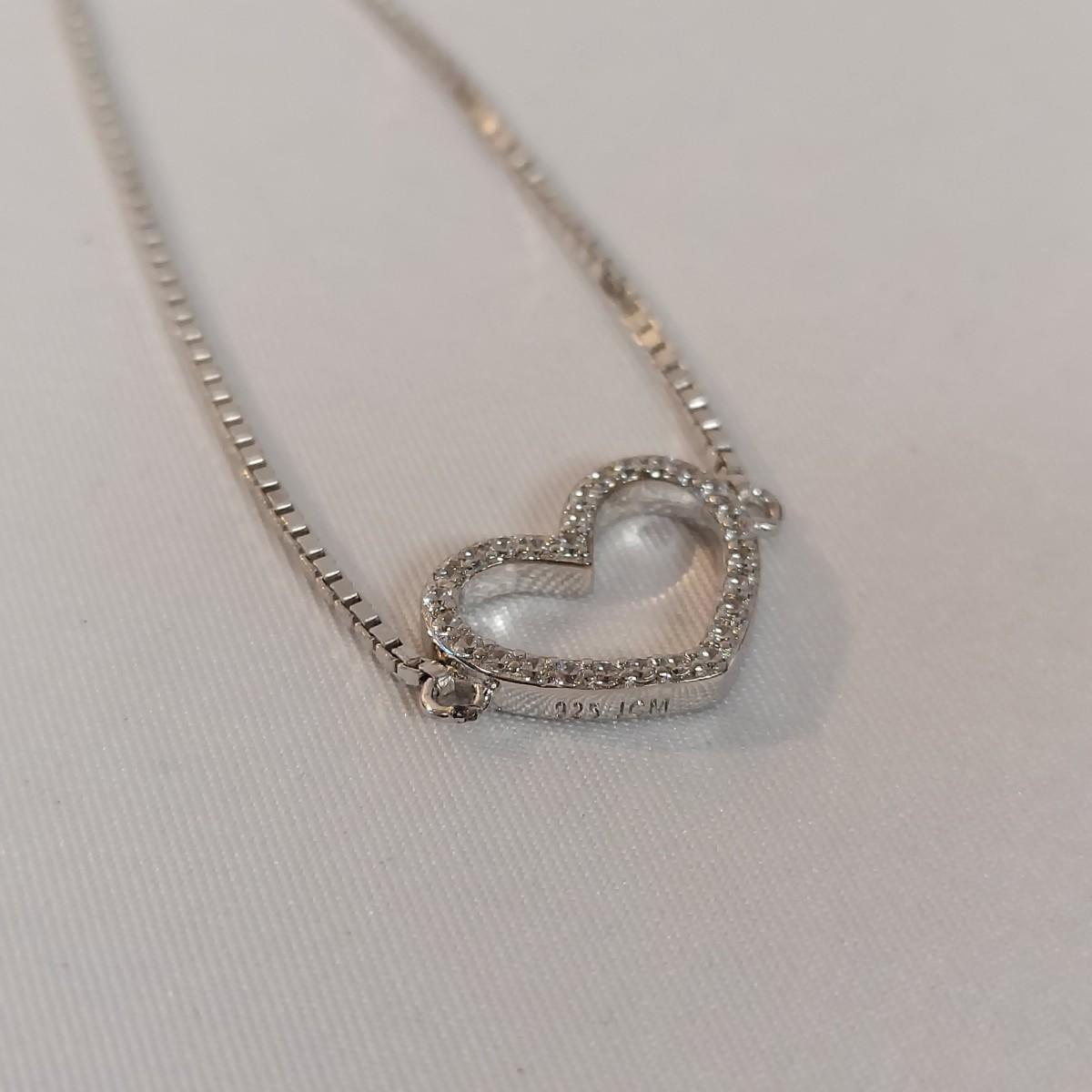 Several pieces of heart design jewelry. Lot includes four necklaces, nine bracelets, four rings, two brooches and six pendants. The majority of items are stamped .925. Last group photo shows these items. The shortest necklace is 17". The longest necklace is 36". Please see photos for all markings found. All sales are final. No returns or refunds. Please bid accordingly.