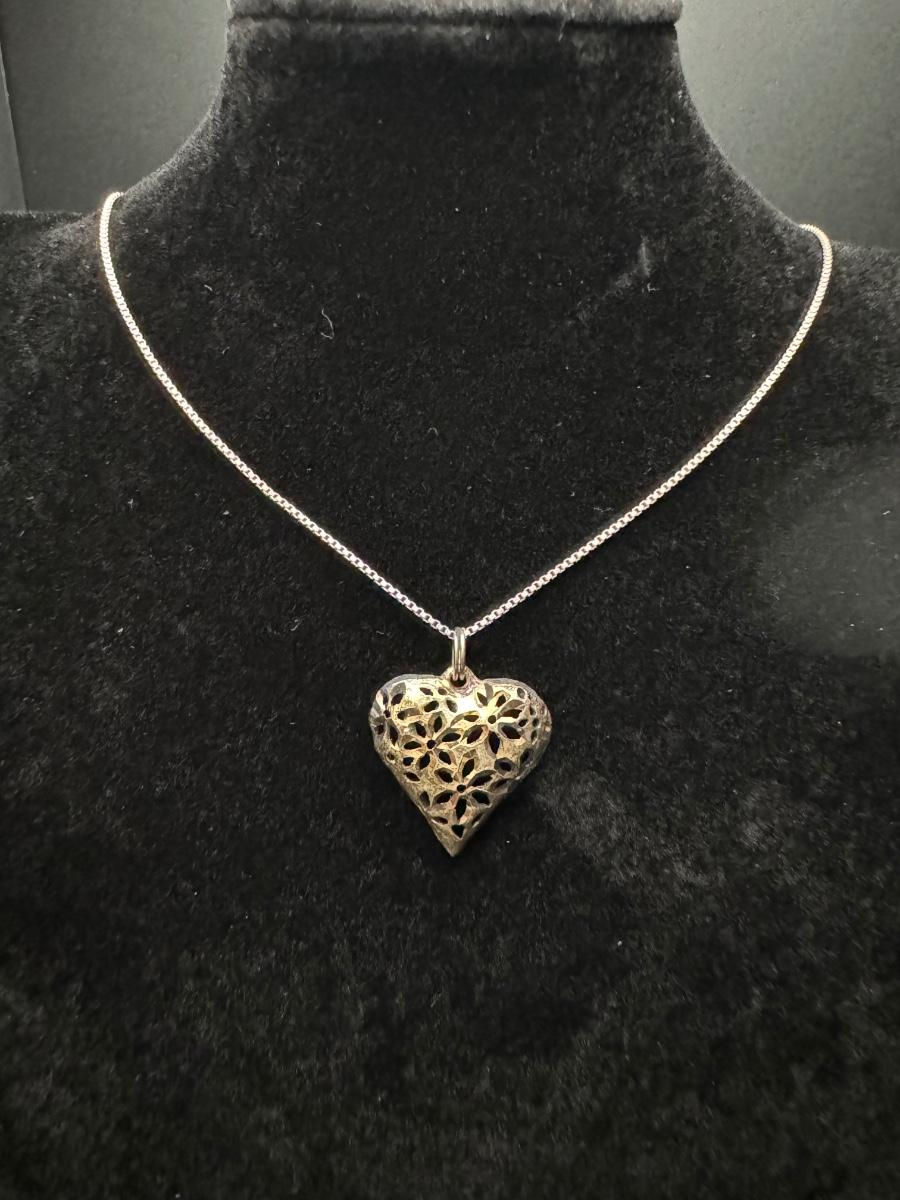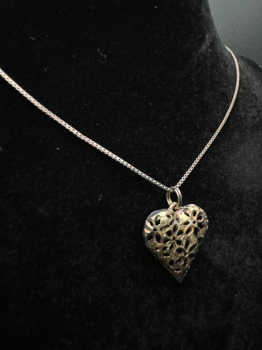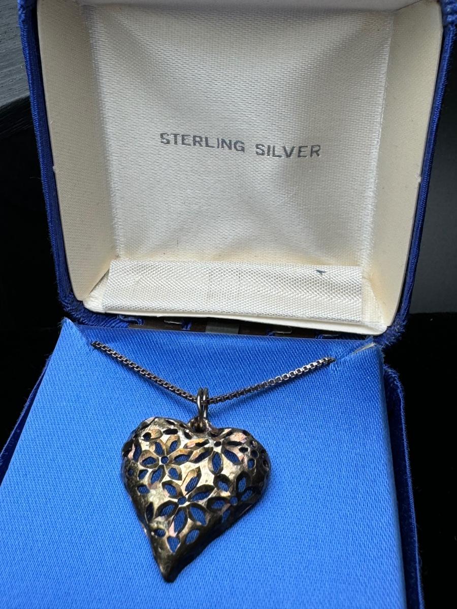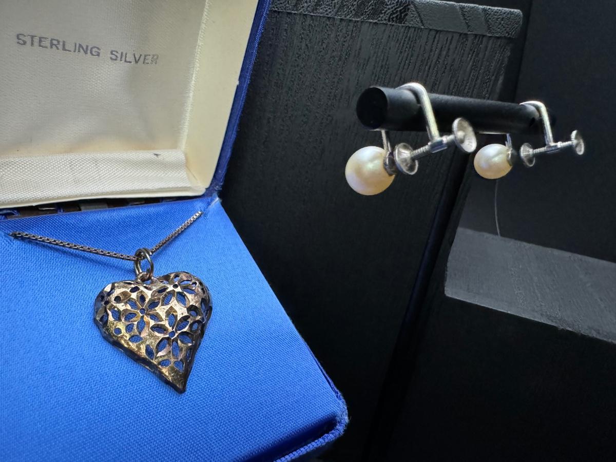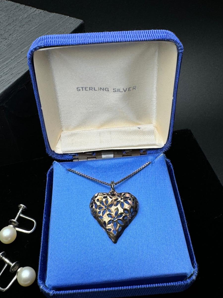 Sterling Silver Heart Necklace and Sterling Pearl Earrings