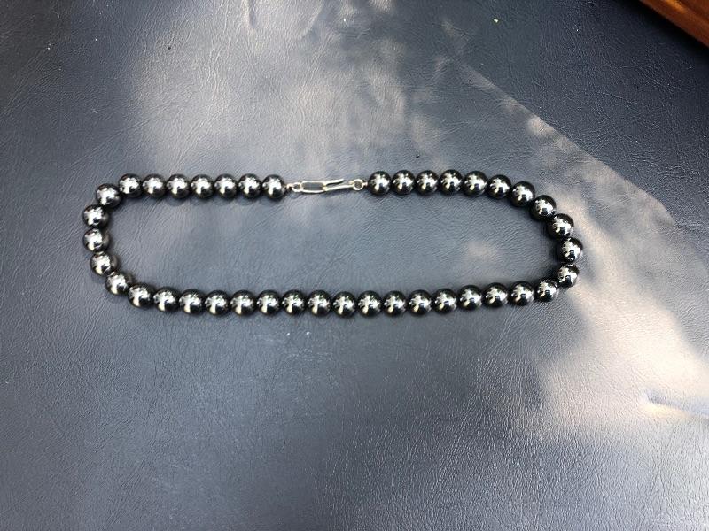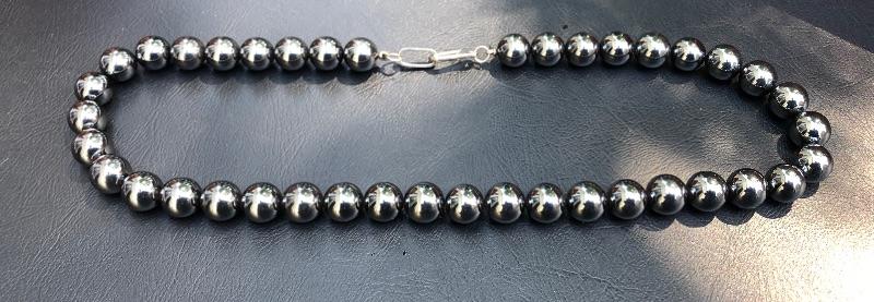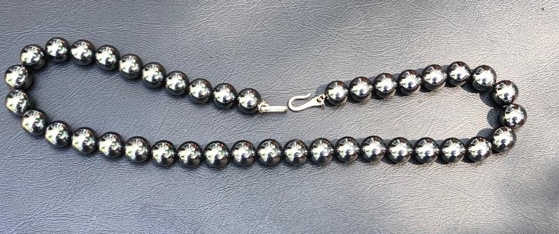 Pretty Hematite Heavy Beaded Necklace With Sterling Silver Clasp