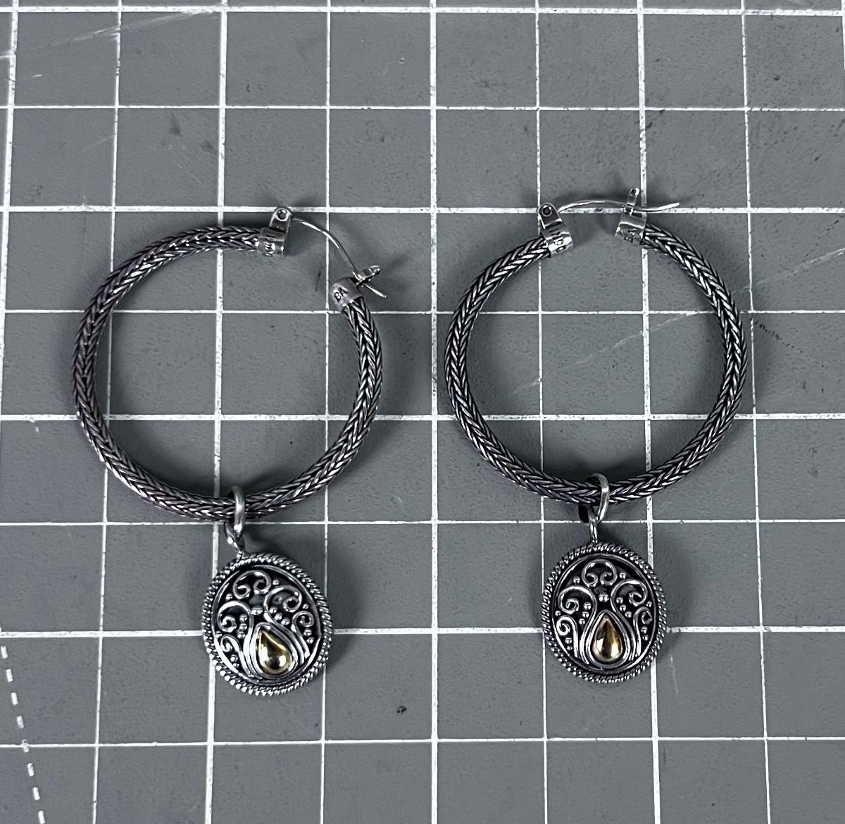 Sterling Silver Hoop and 18K Tear Drop in lay
