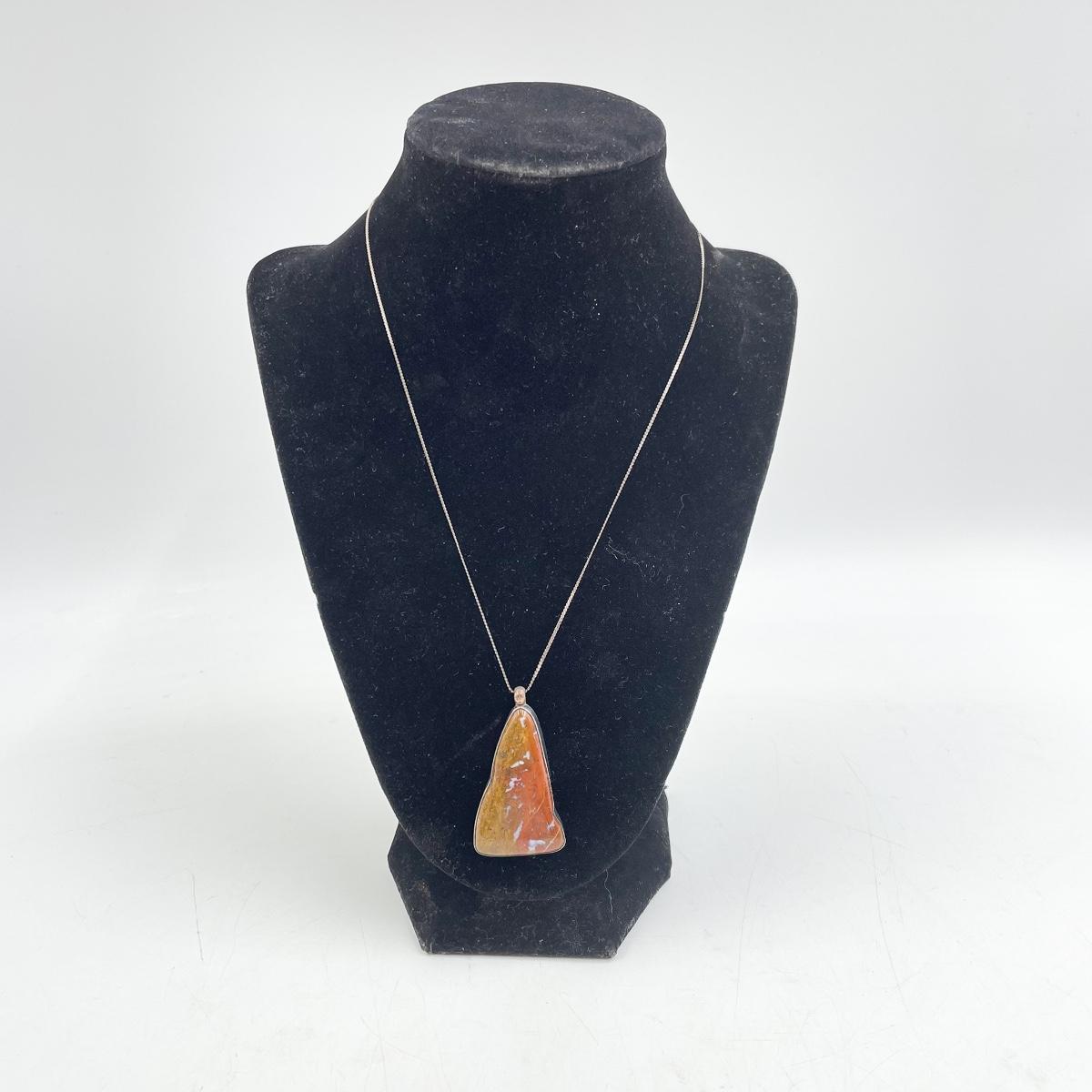 In Good condition. Clasp of chain is marked 925 (please see photos). Stone appears but not confirmed to be jasper.