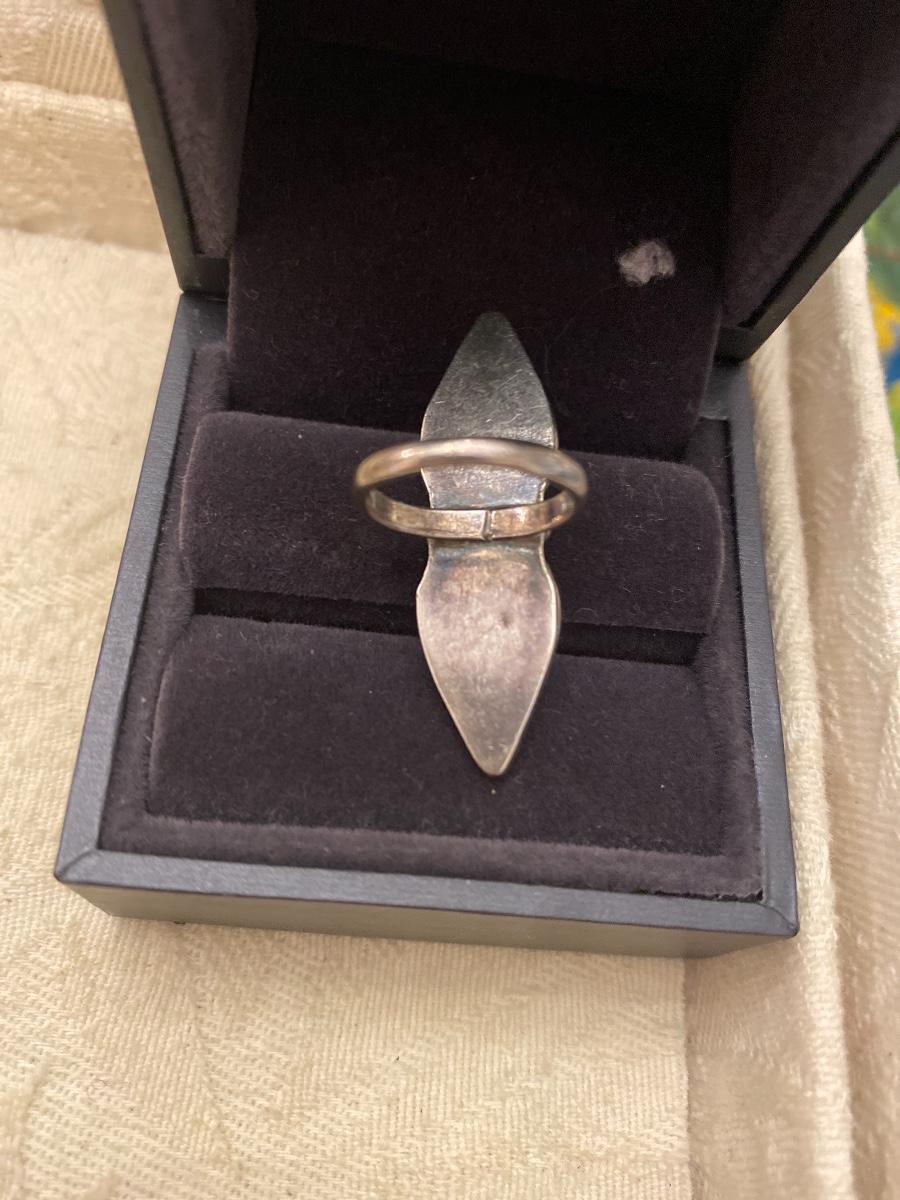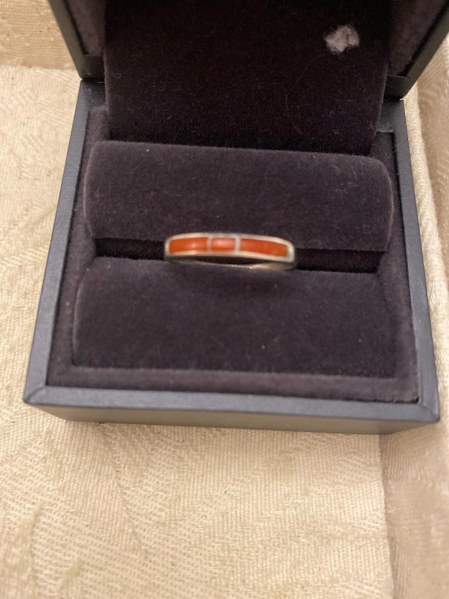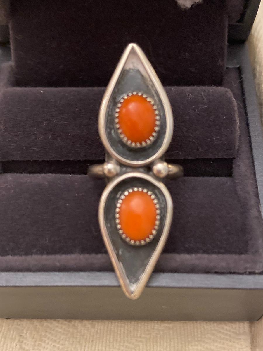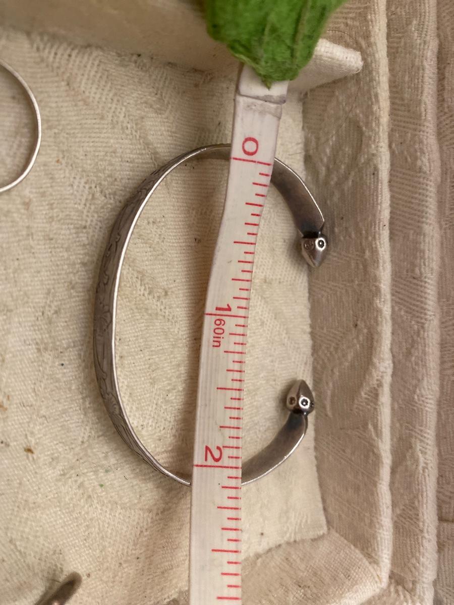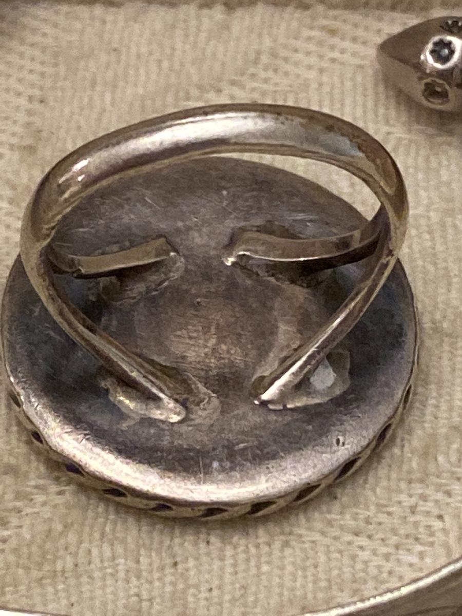 Including an amber and silver mouse brooch, a sterling cuff bracelet, a coral ring, a Buffalo nickel ring, a sterling silver brooch/pendant with a green stone, a pair of sterling silver and amethyst earrings. See all photos to see the ring sizes because ring were photo'd on ring sizer. The total weight for all jewelry is 30.3 dwt or 47.1 grams. Some of the pieces are stamped sterling and some are not.