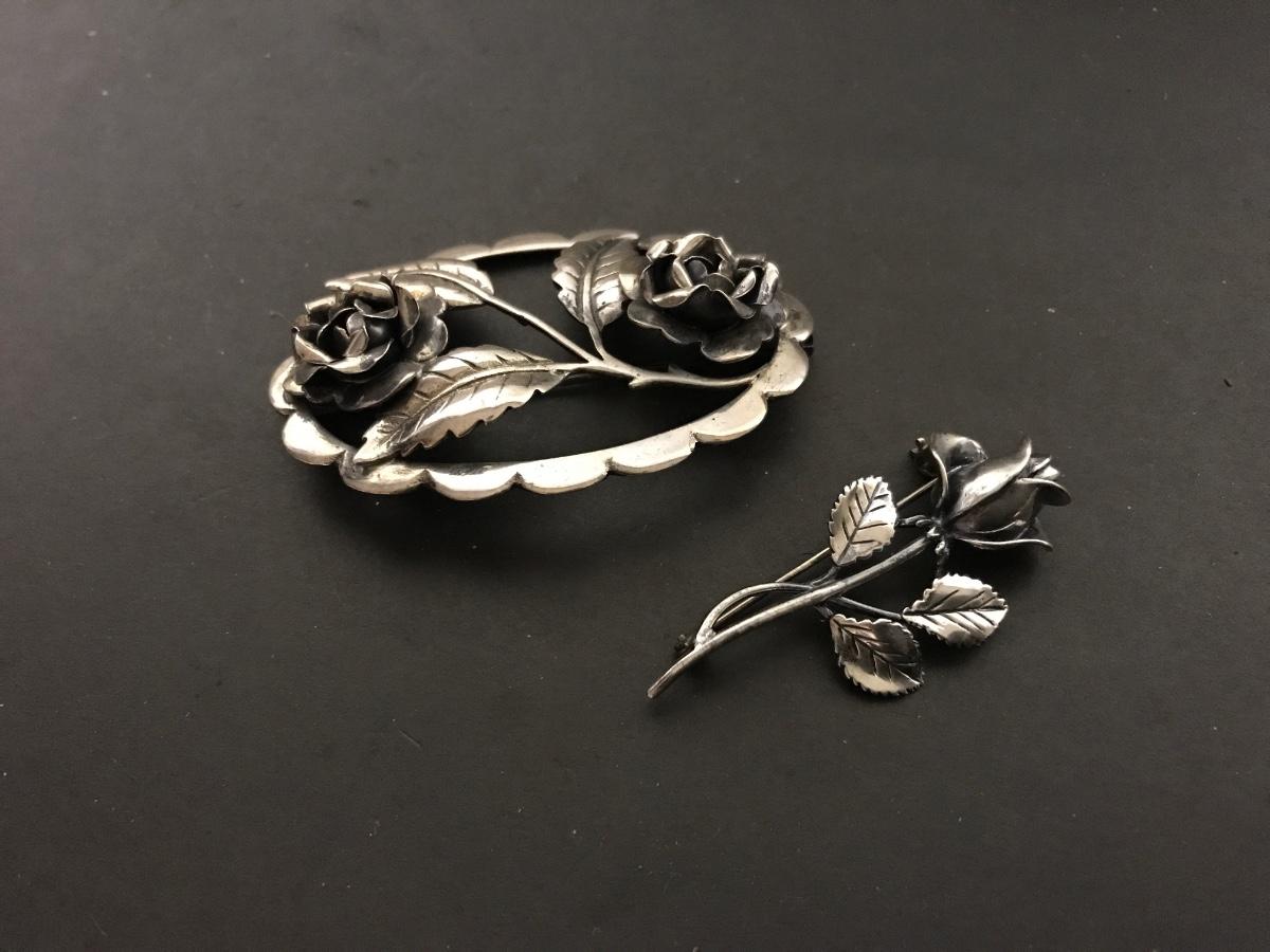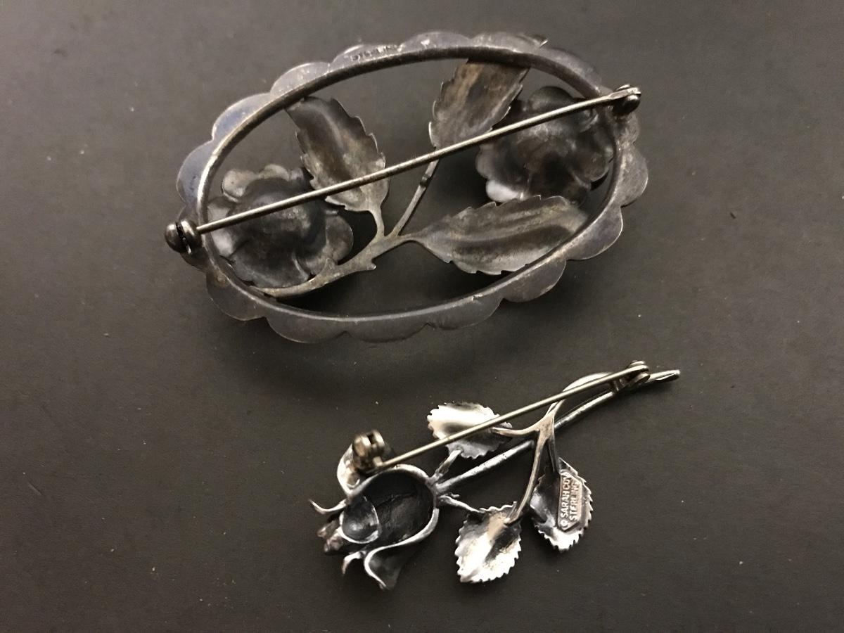 Pair of sterling brooches