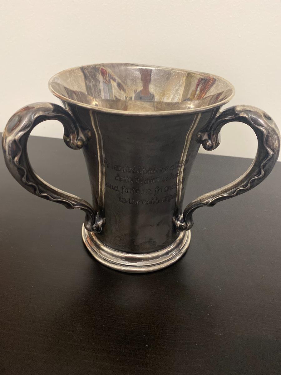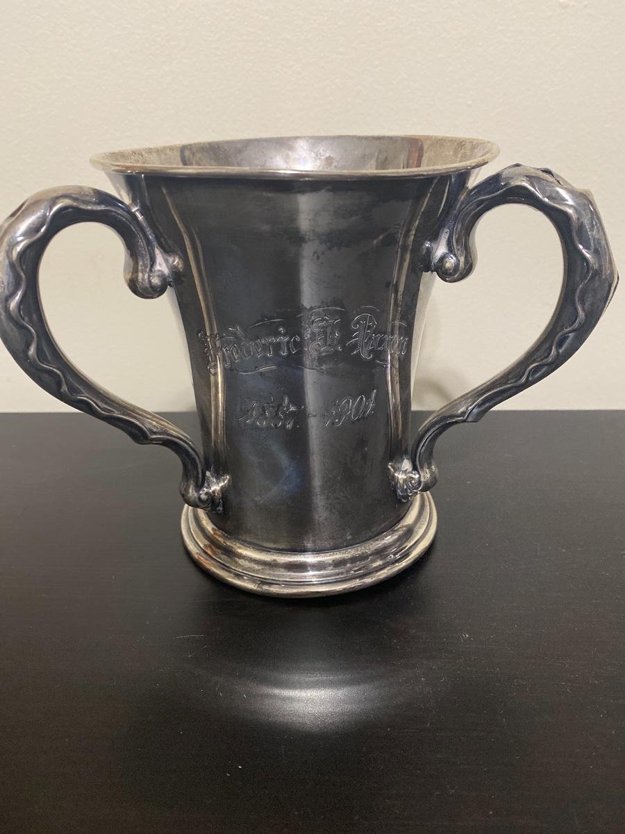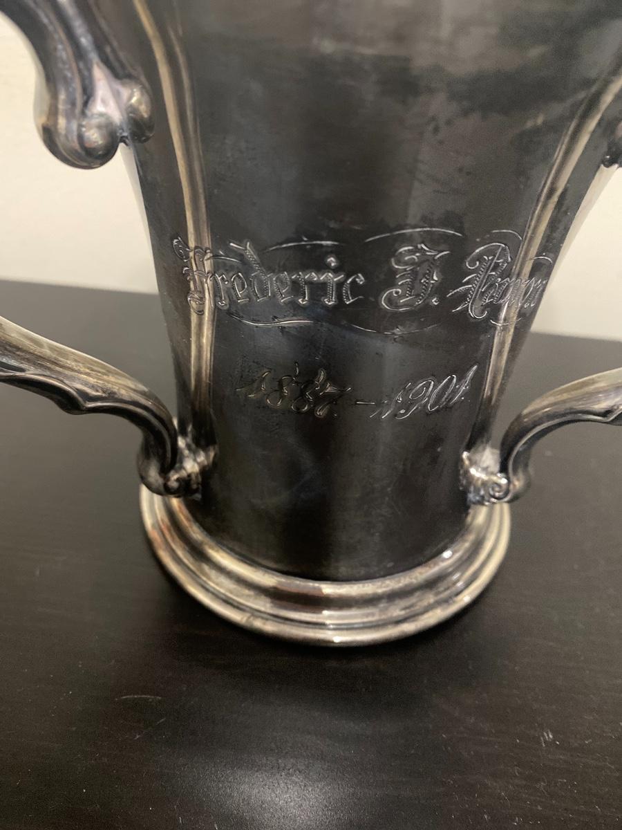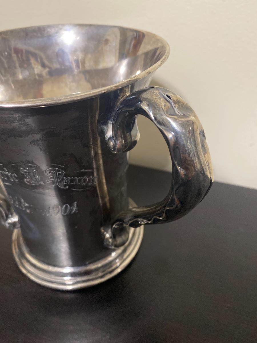 380.7 grams. 244.8 dwt. 12.24 ozt. 5 1/2 “ high. Inscription on side says “friendship above all ties doth bind the heart and faith in friendship is the Nobelist part”. Other side is inscribed Frederick J Paxon 1887 Dash 1901. Underneath is stamped STERLING 1810. Some dents to silver. As is. THIS ITEM HAS A RESERVE OF $300. Pick Up of Purchased Items will be on Saturday the 16th at Morningstar Storage in Bluffton, SC. 1110 Fording Island Rd, Bluffton, SC 29910. At the end of the sale todayI will send out a SignUpGenius link to the winning bidder to schedule your your pick up time along with a contact phone number.