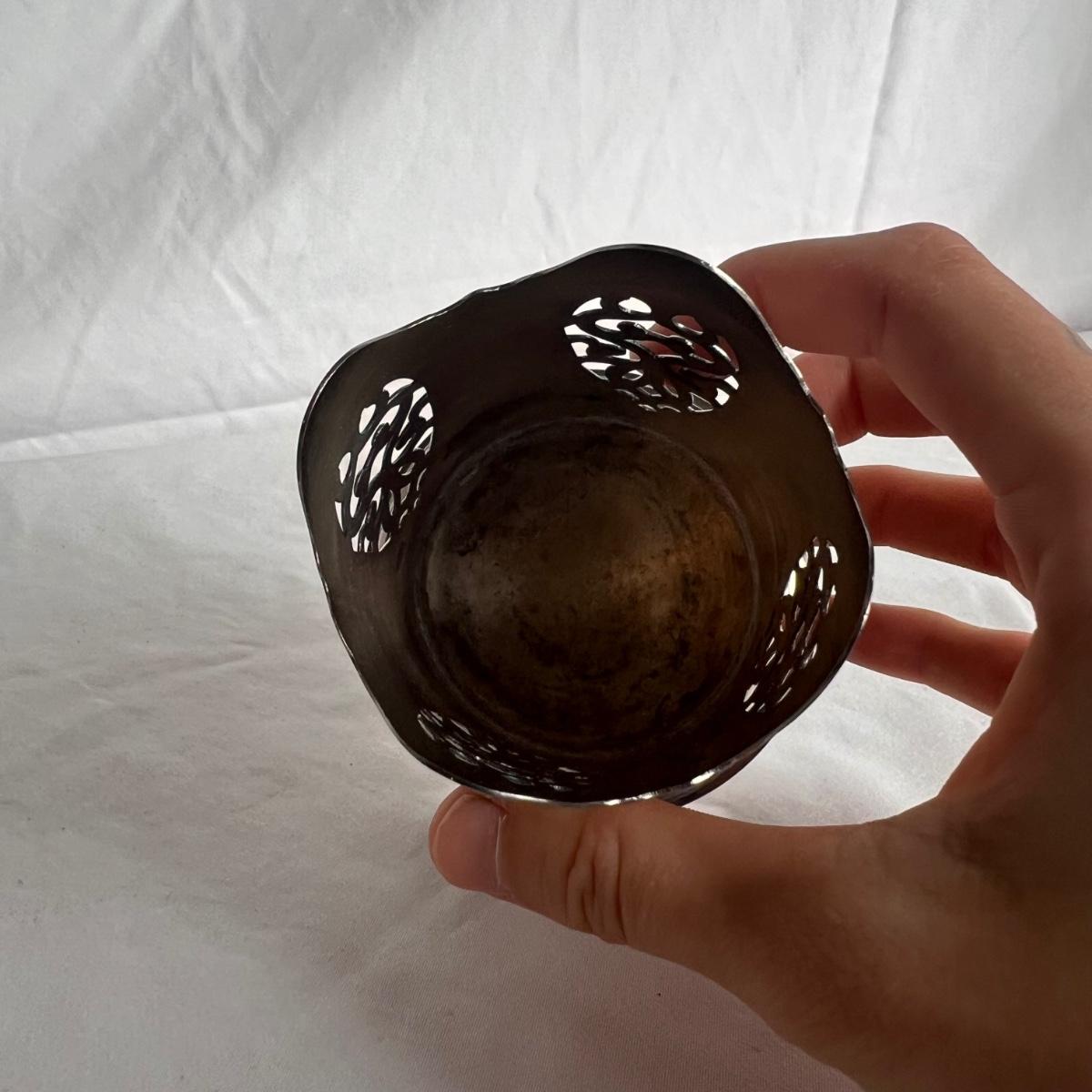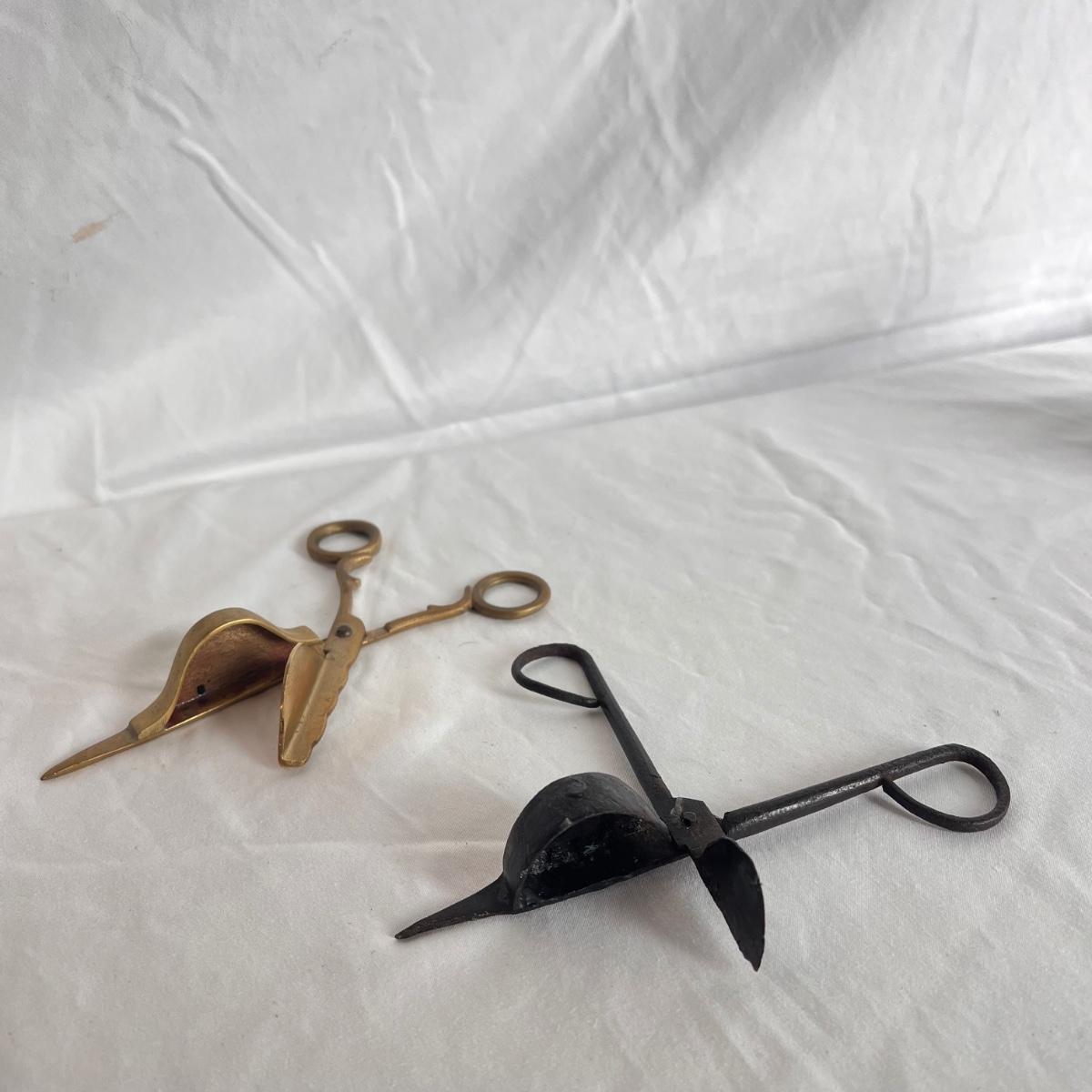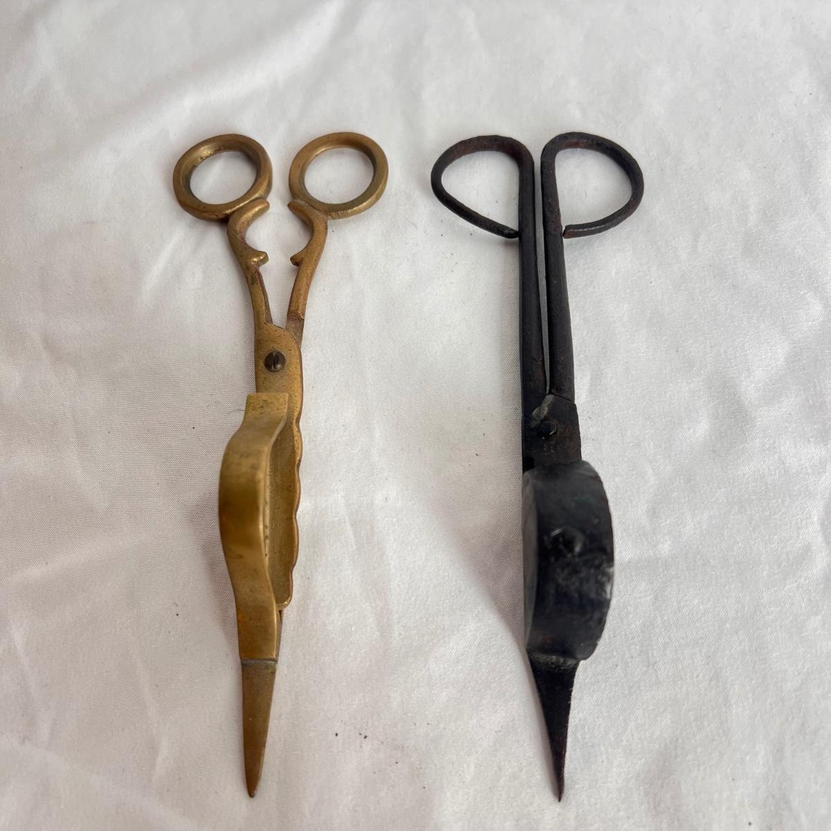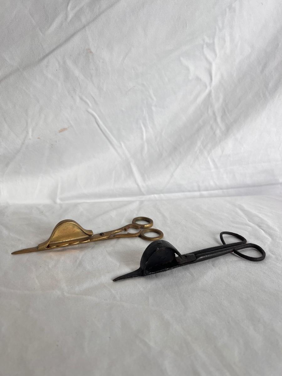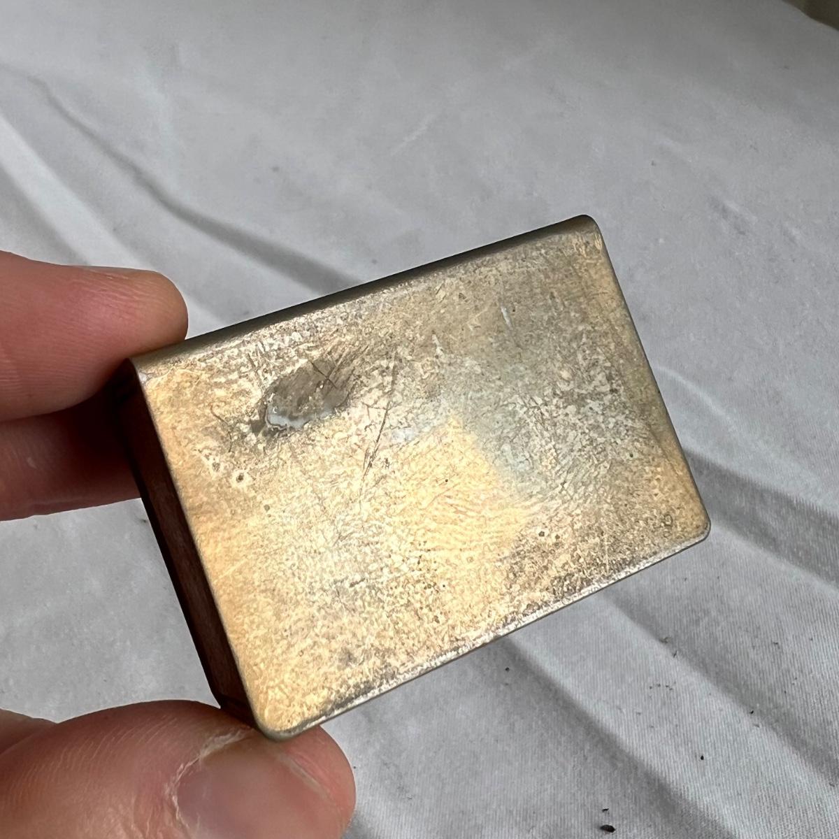 This lot includes one silver plated condiment holder with cutouts, one sterling silver lighter, one candle holder and snuffer, two wick scissors, and two matchbox holders that appear to be silver plated. The candle holder measures 6” x 2”H and appears to be stamped with James Dixon & Sons, EPBM. The lighter is stamped with sterling silver on the bottom. The matchbox holders came in a J.E. Caldwell Co. box, but aren’t stamped. Shipping available.