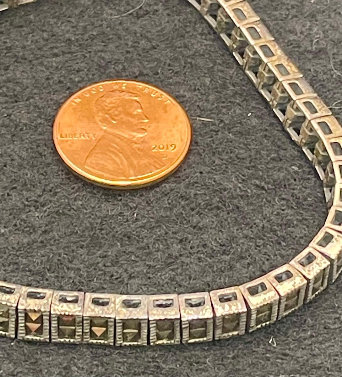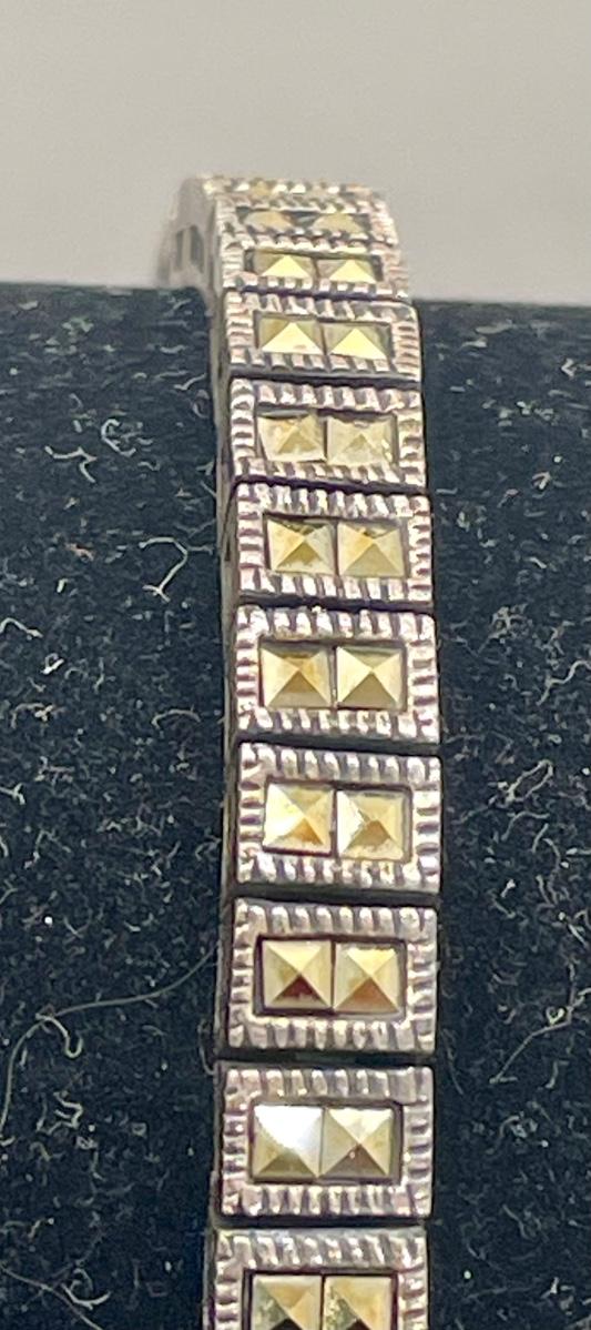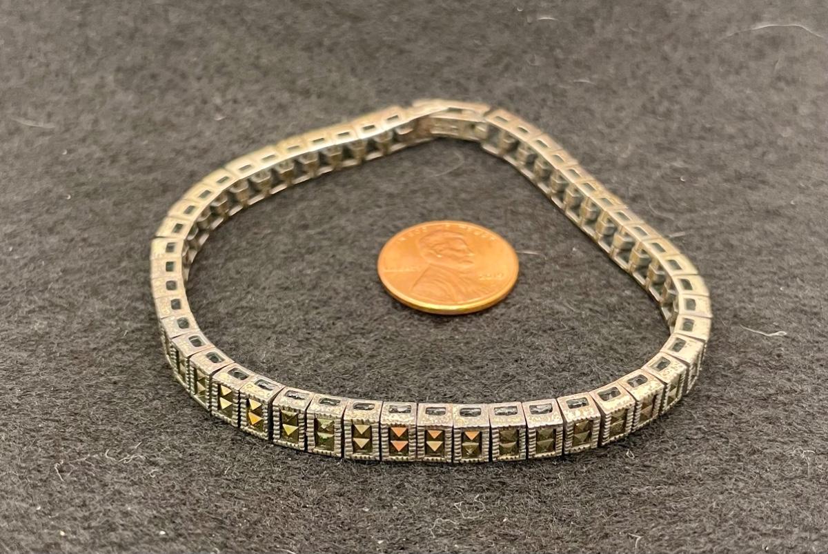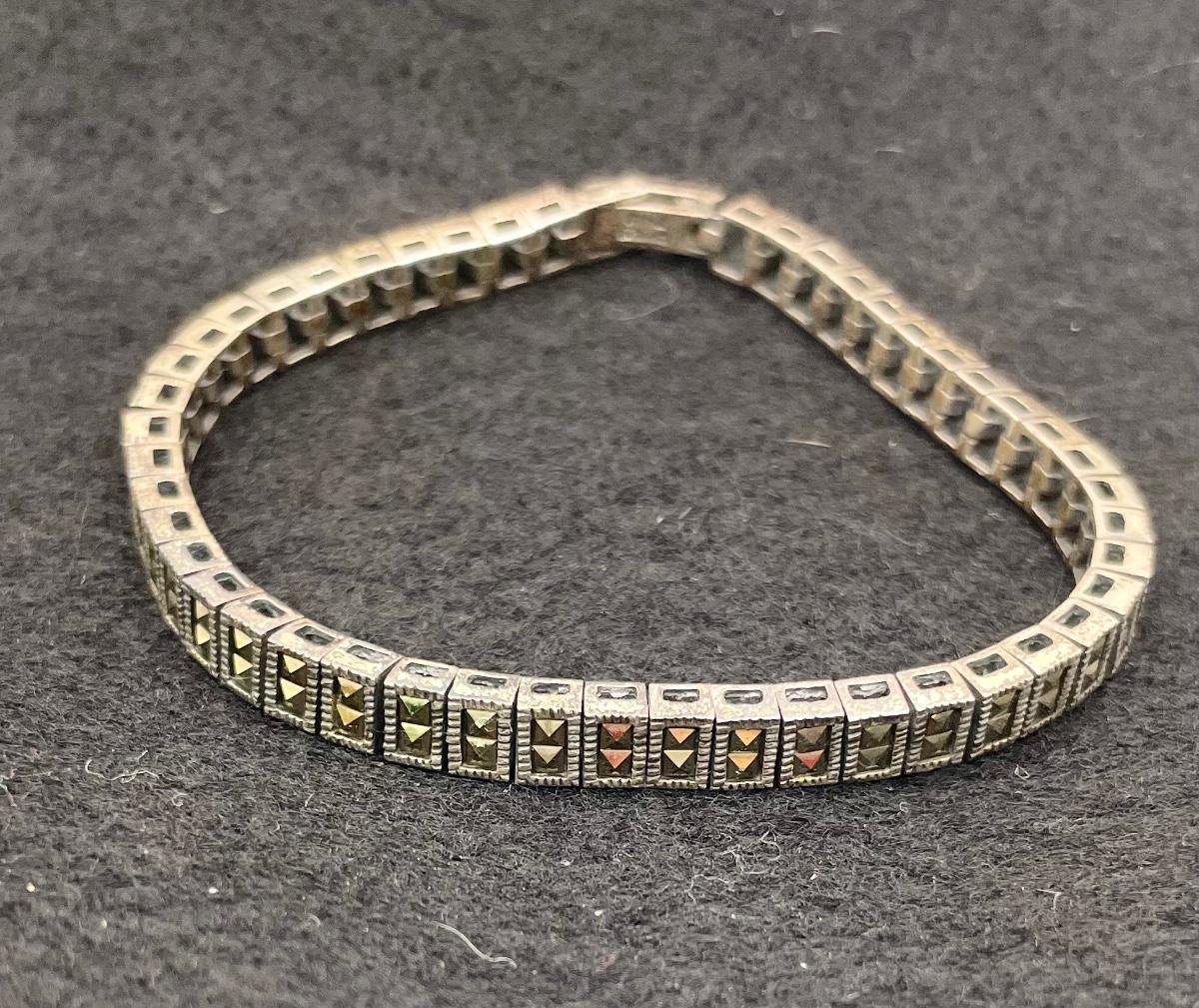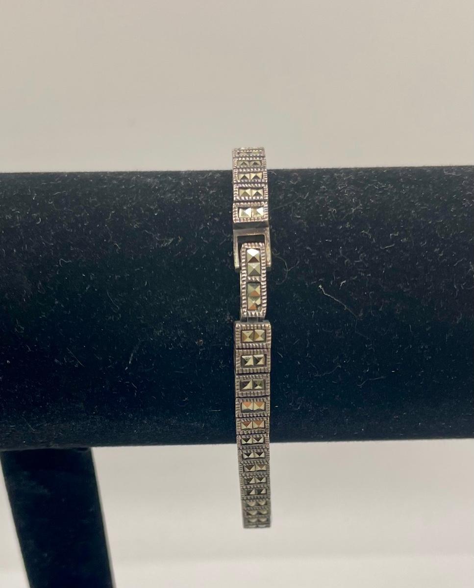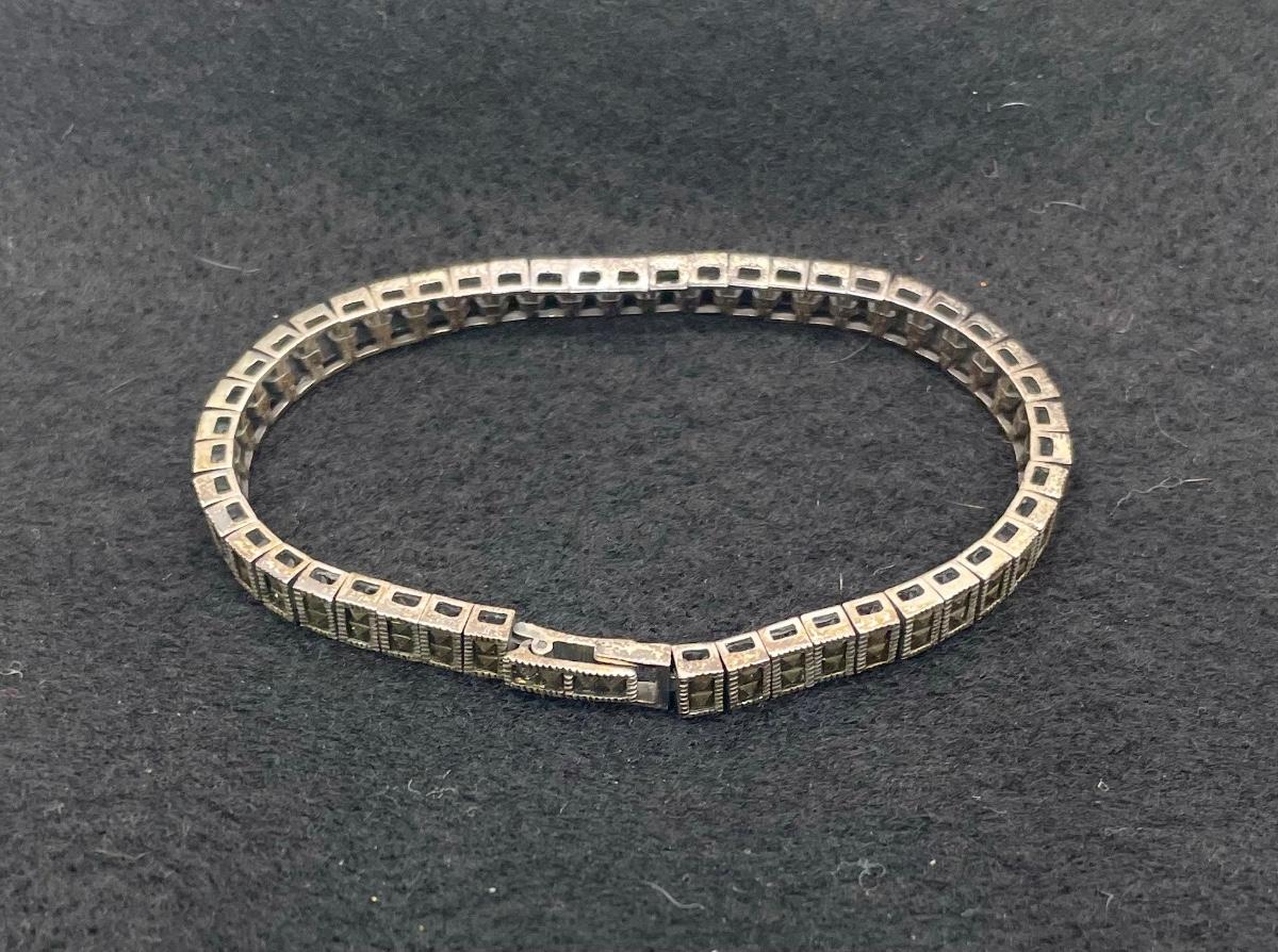 Sterling silver bracelet has the mark “GH 925 THAI” on the clasp. Good used condition, weight is 25.7g.