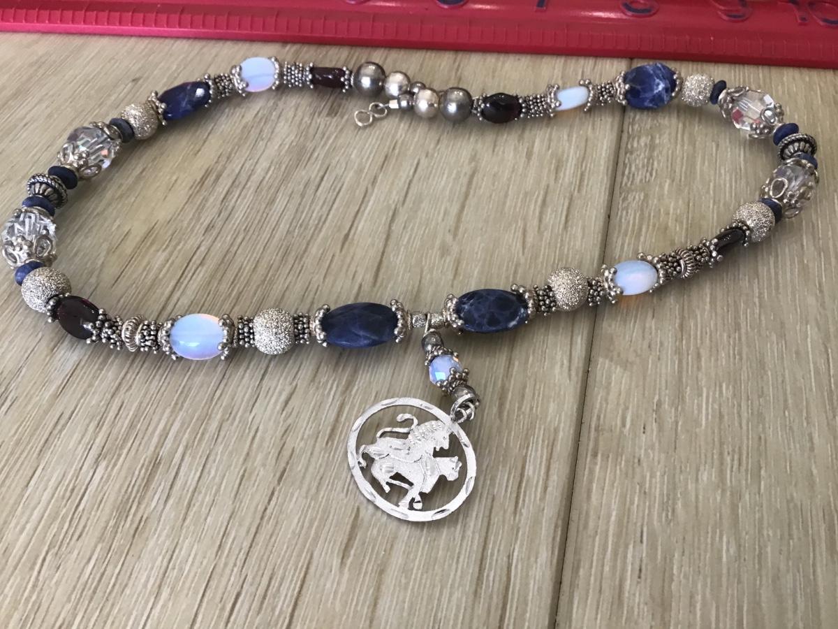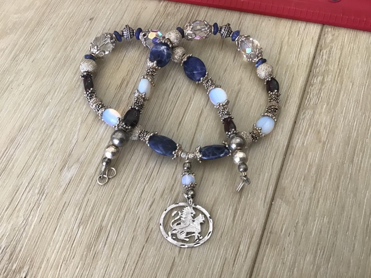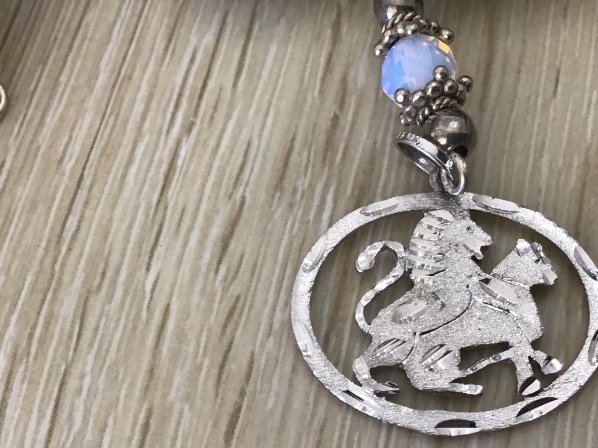 Sterling silver Lion Pendant with glass And Stone Beads. Pretty