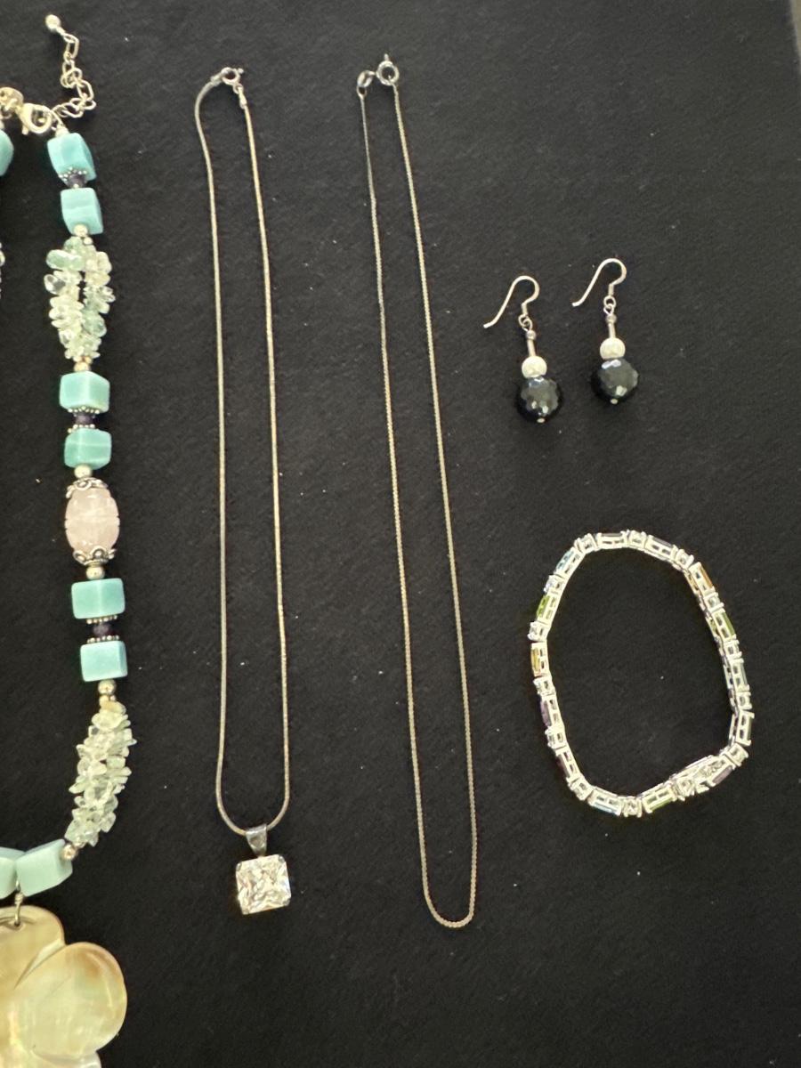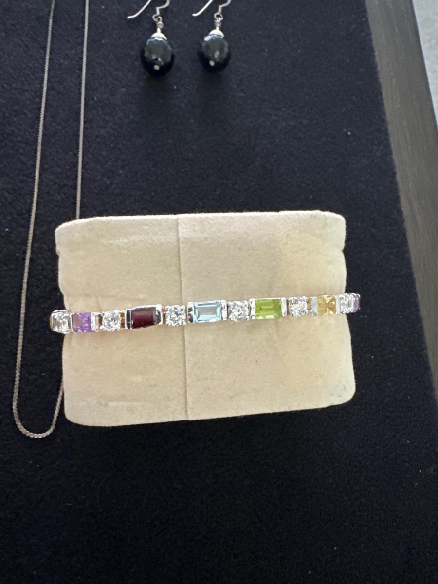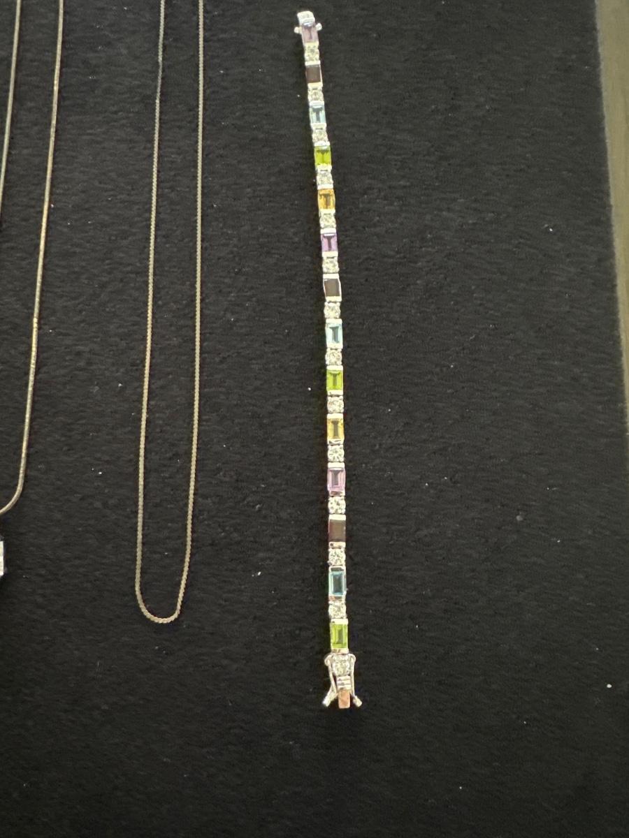 Sterling silver tennis bracelet with colorful stones approximately 7.5”