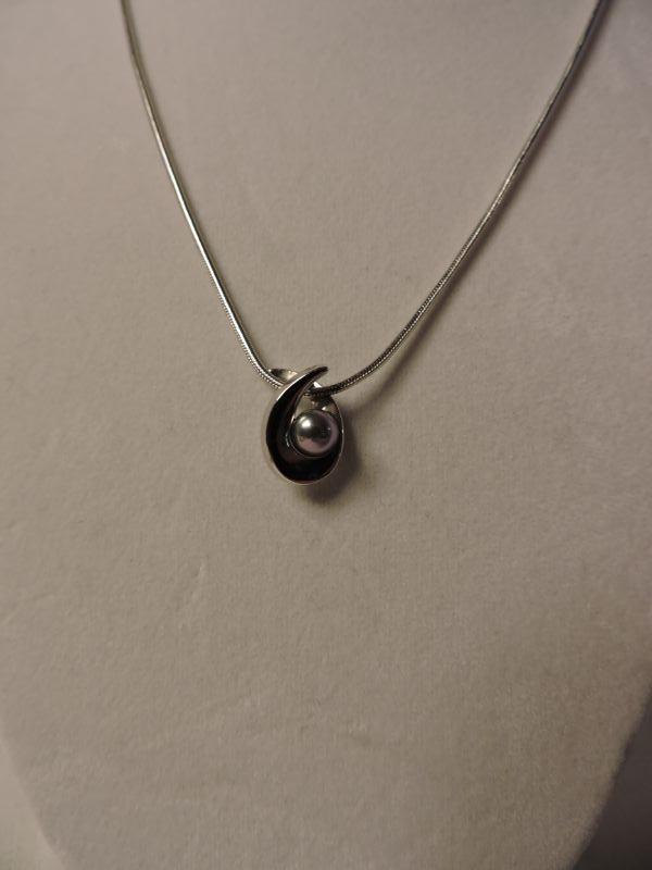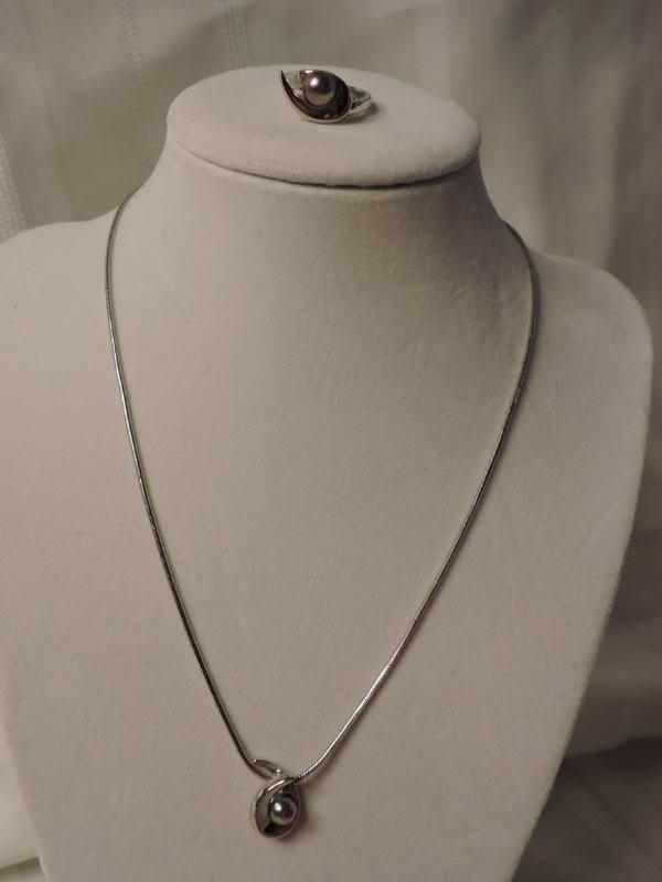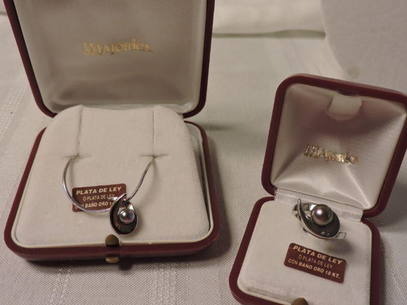 Sterling Silver Majorica Slide Necklace and matching Ring