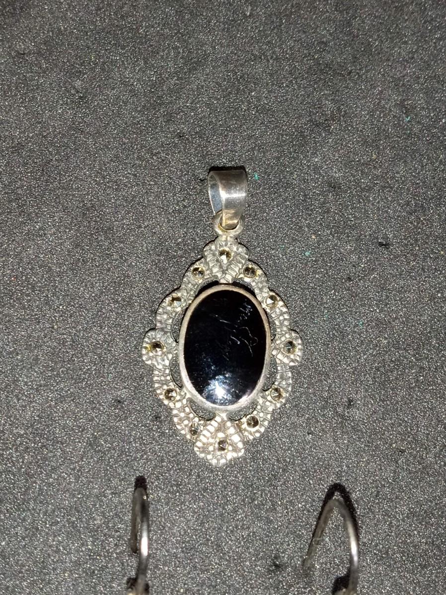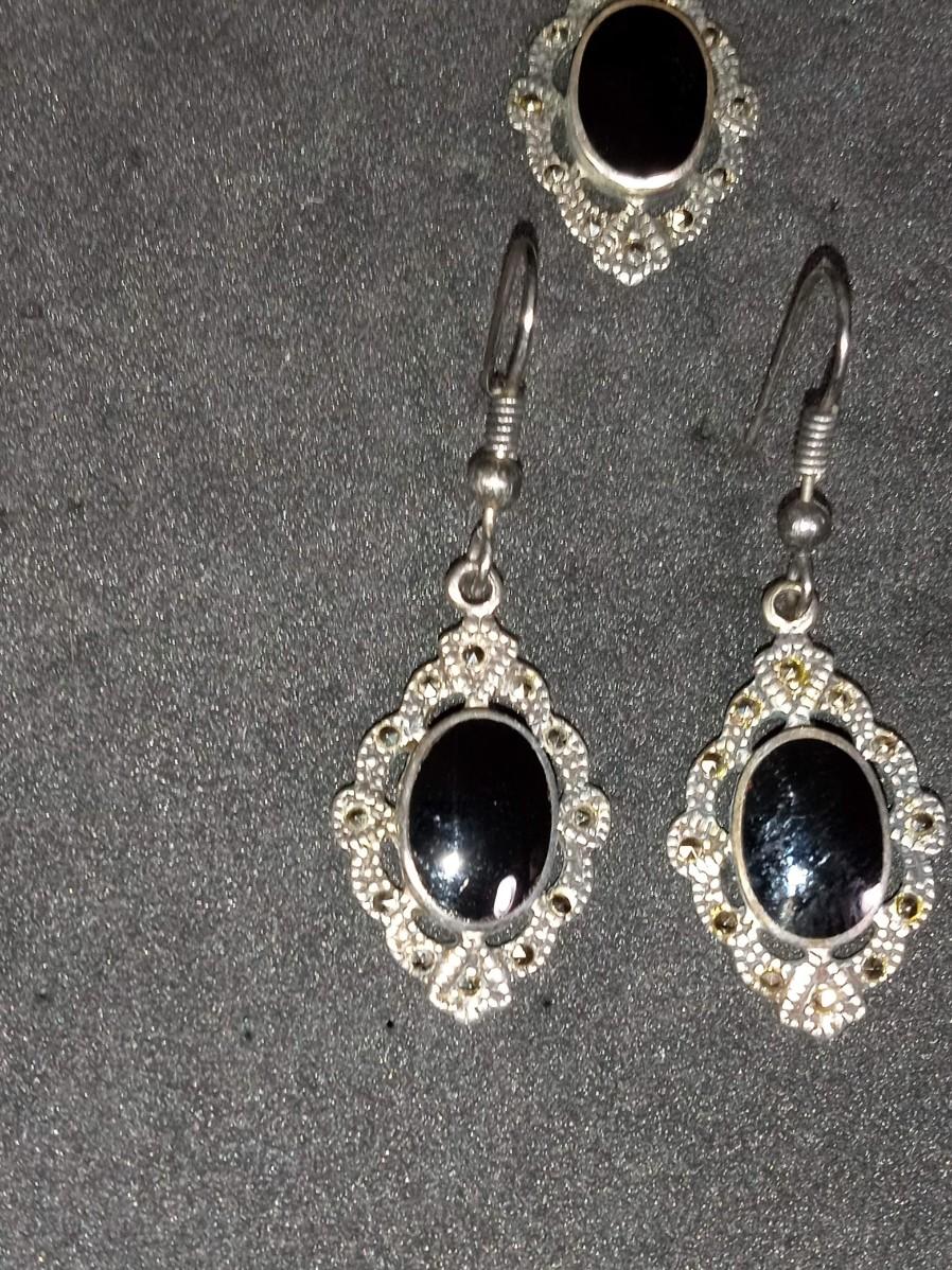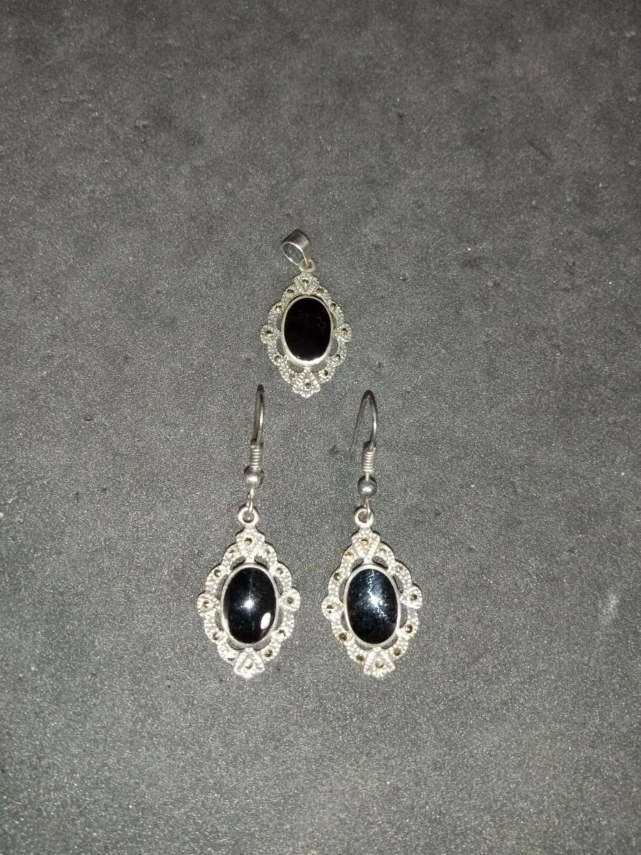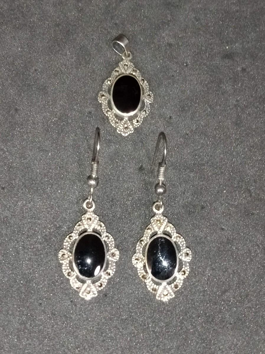 STERLING SILVER MARCASITE EARRINGS AND PENDANT