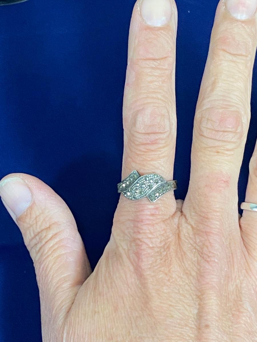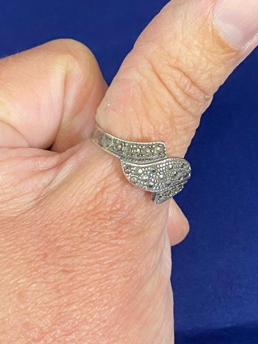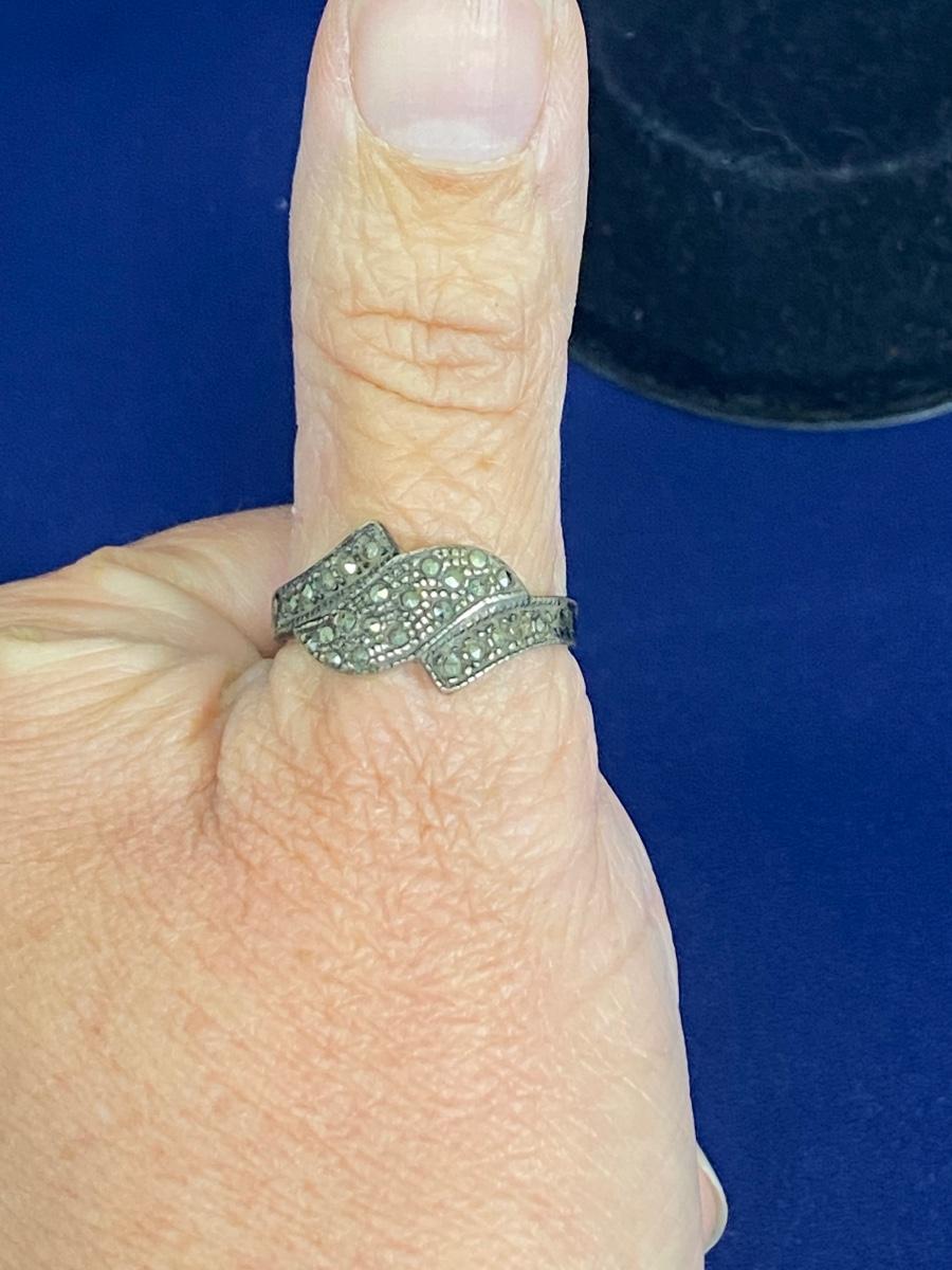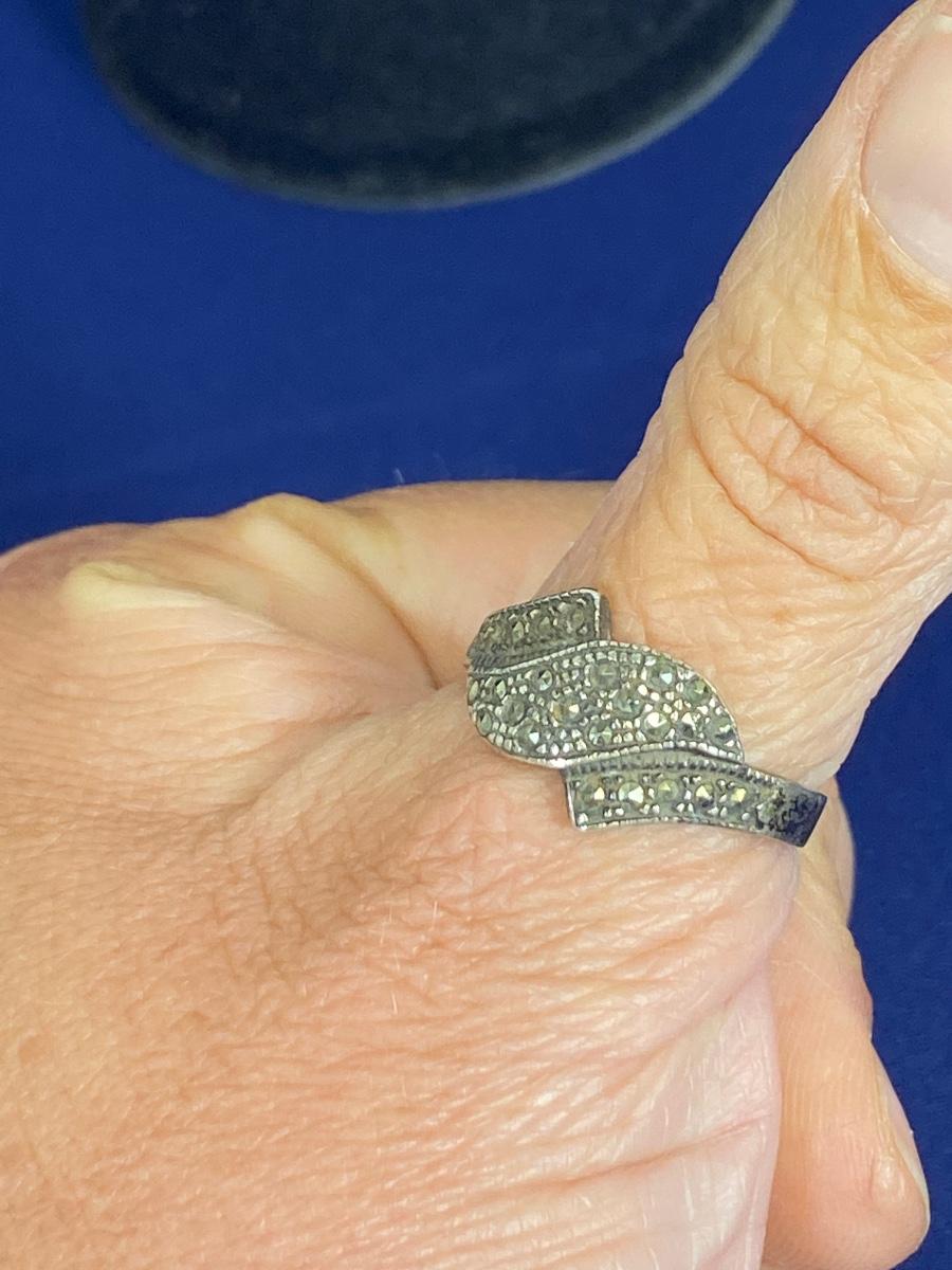 Sterling Silver Marcasite Ring. Good condition, stamped 925 inside. Larger size maybe a 9 or 10.