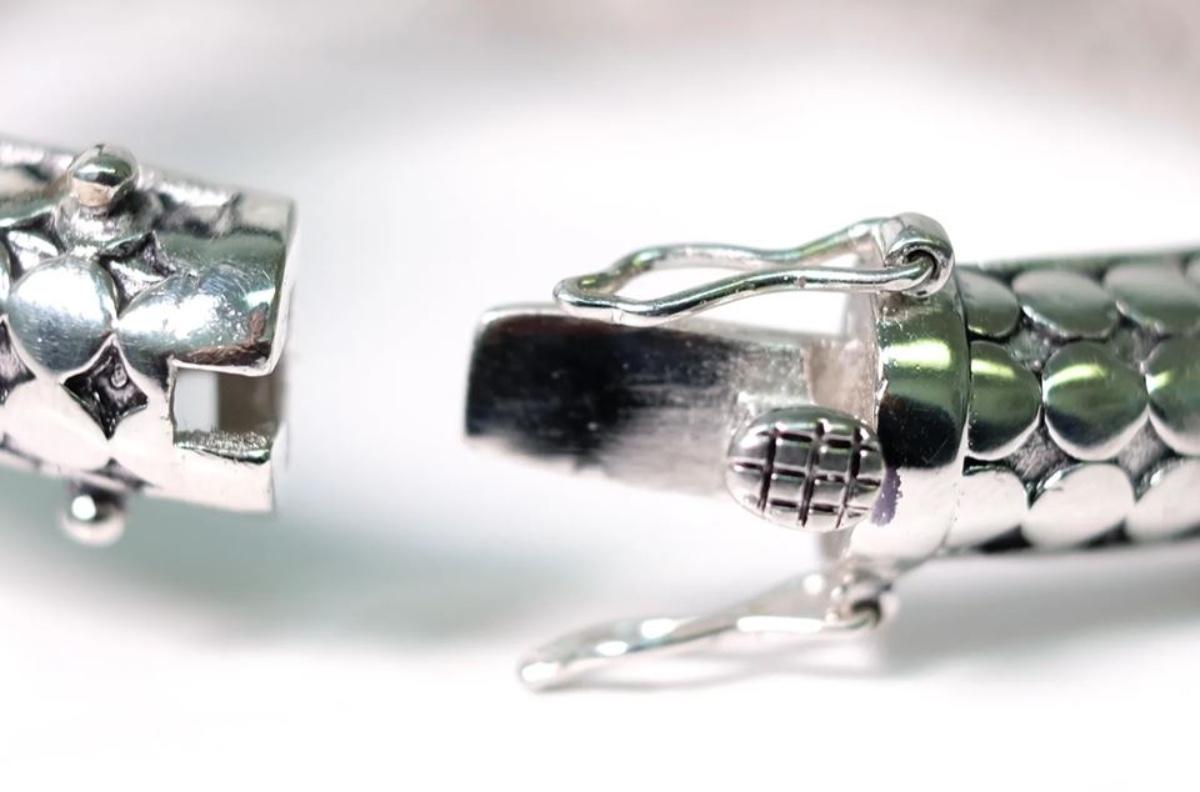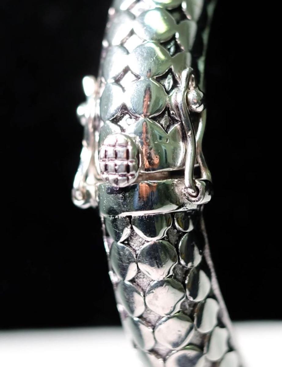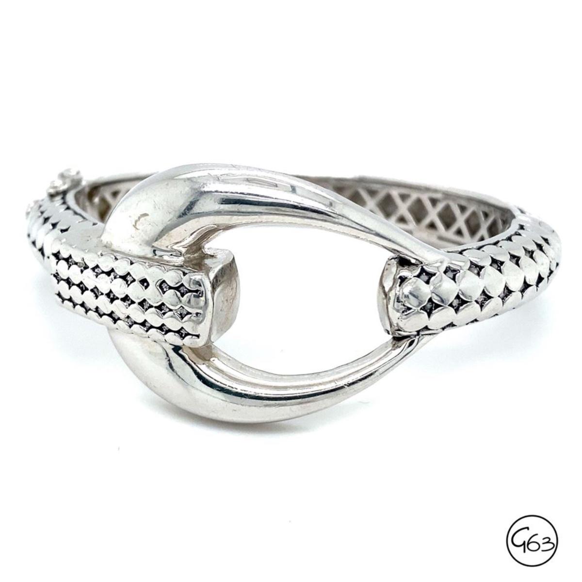 Sterling silver modernist bracelet. Stamped 925 THAILAND. Approx. interior length 2.37 inches, overall weight 60 grams.